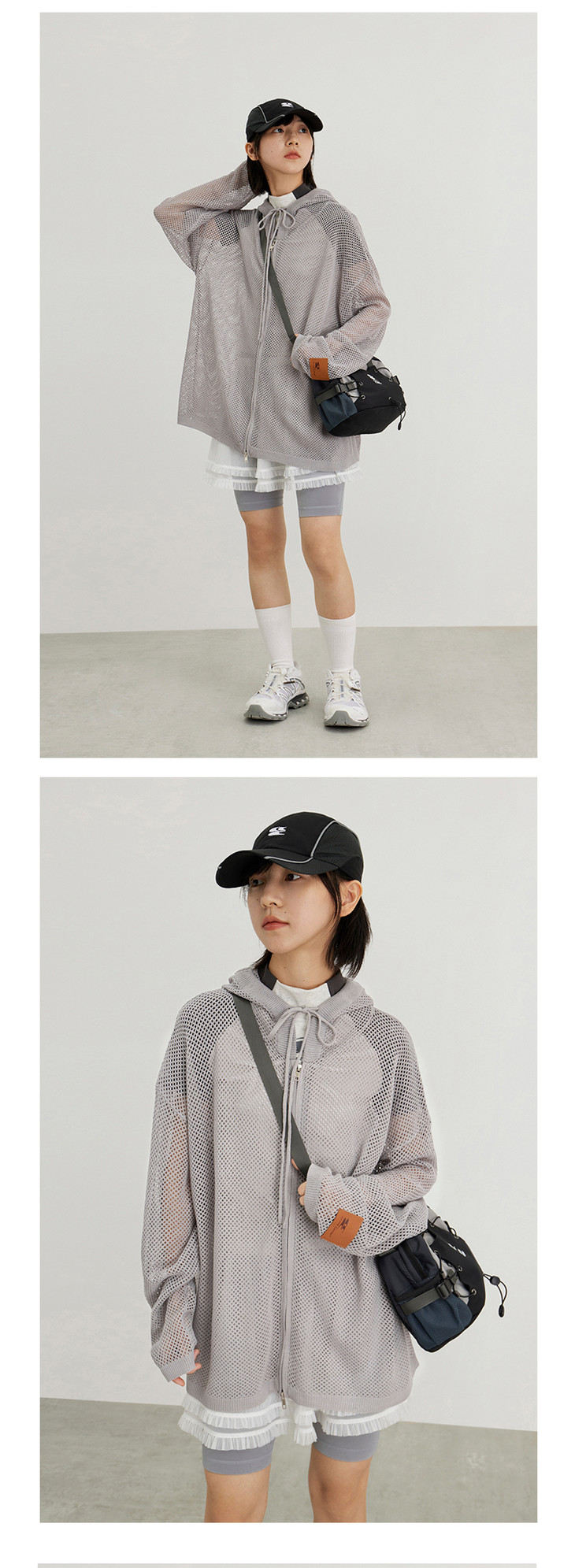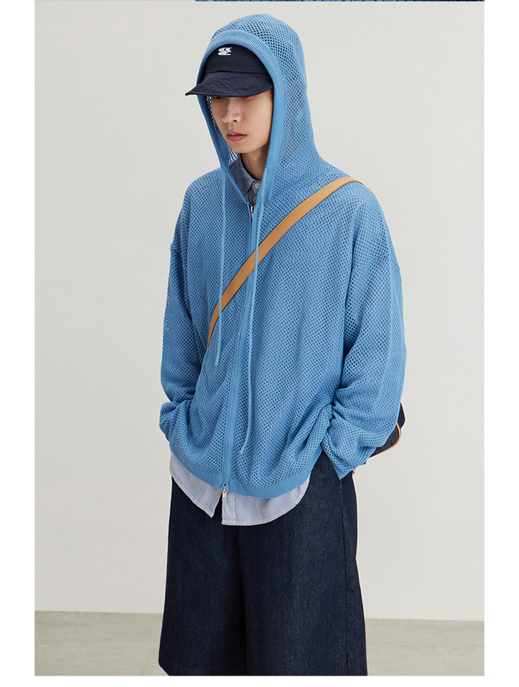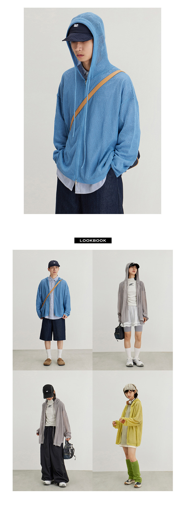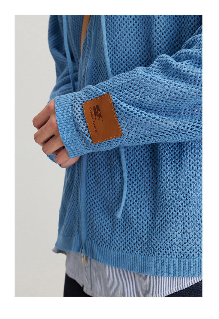 CryingCenter三色网眼镂空针织透气凉感连帽卫衣防晒外套哭喊中心