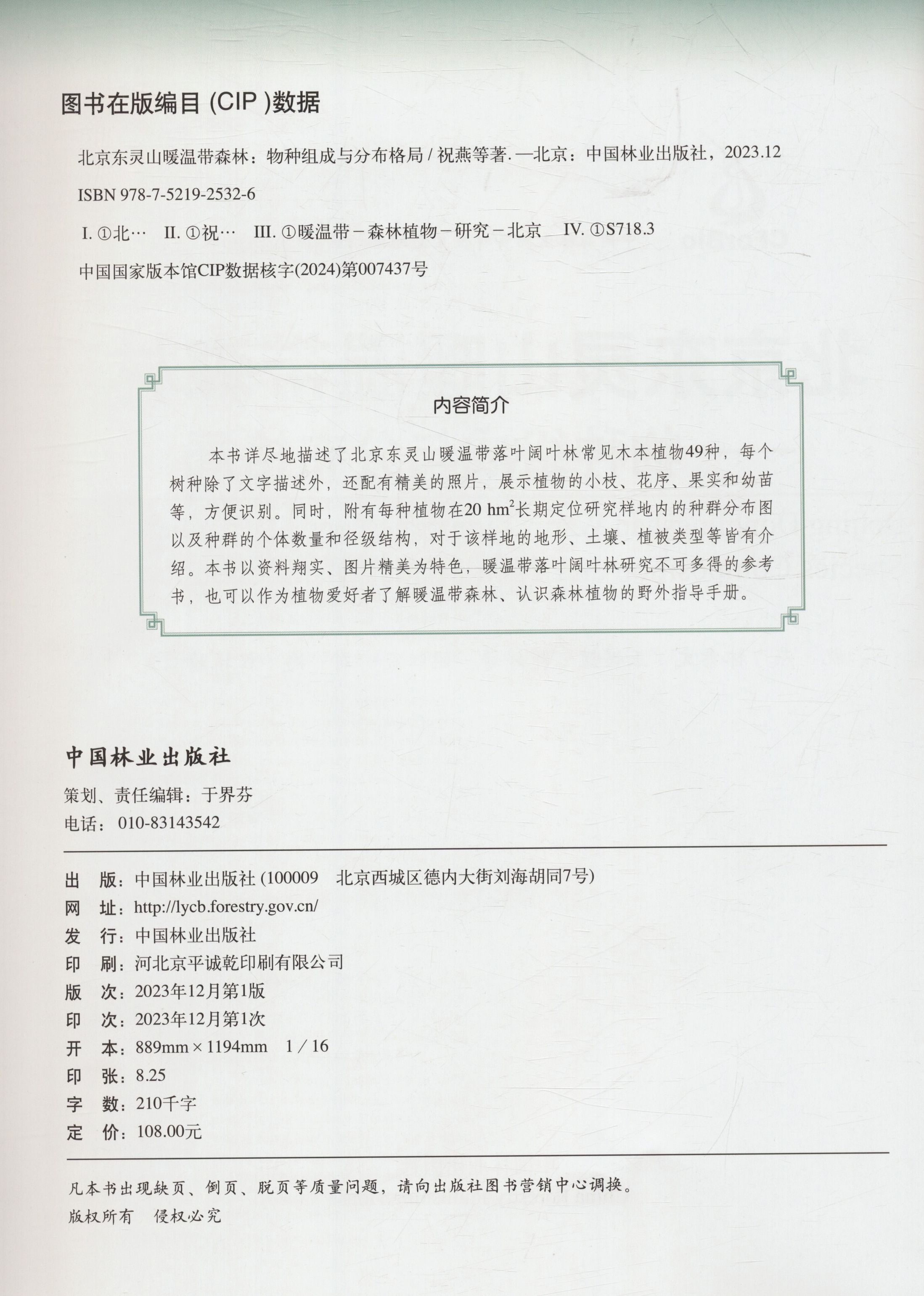 北京东灵山暖温带森林--物种组成与分布格局/中国森林生物多样性监测网络丛书 &2532