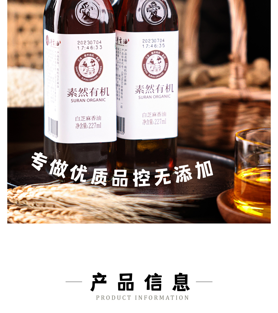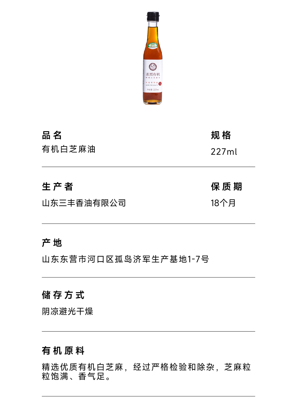 有机白芝麻油 227ml/瓶 | 合作农友生产,产自山东东营,生产者:三丰 &【公平贸易农人定价】