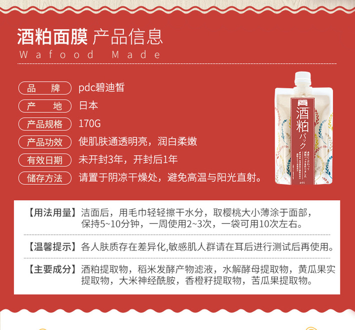 PDC 碧迪皙 酒粕面膜(二代)170g