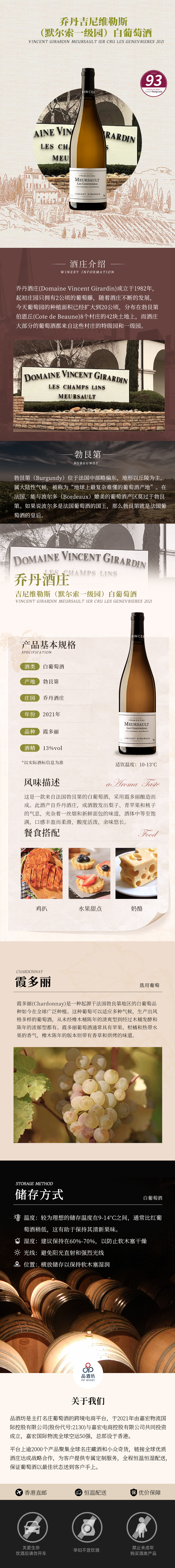 2021 Vincent Girardin Meursault 1er Cru Les Genevrieres 乔丹吉尼维勒斯(默尔索一级园)白葡萄酒
