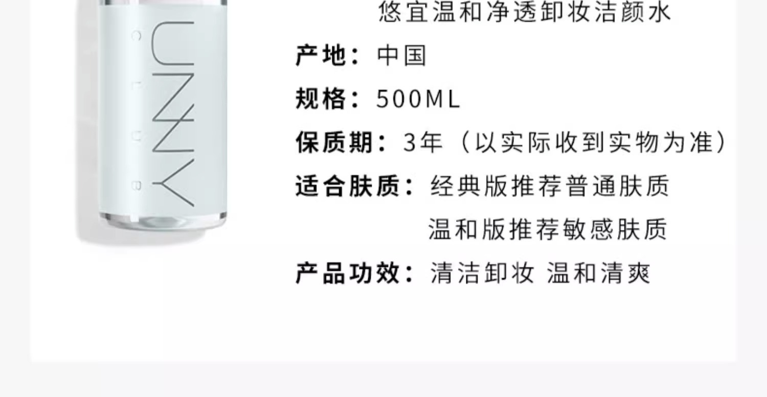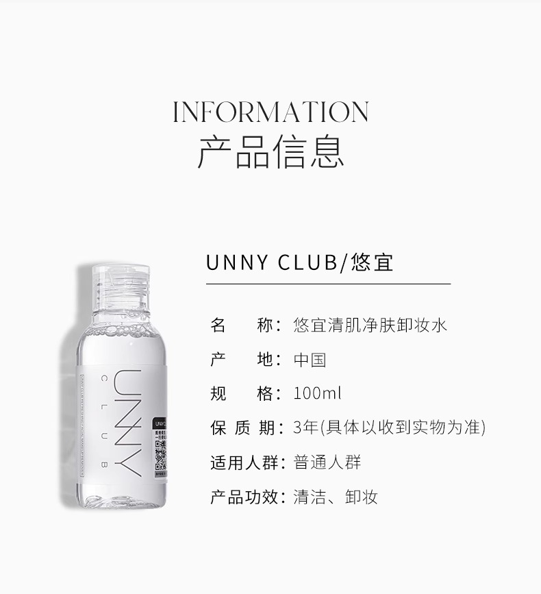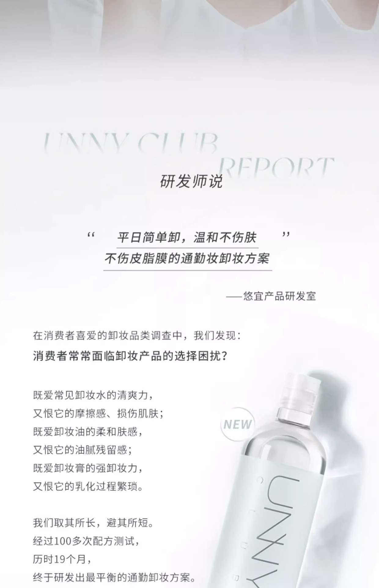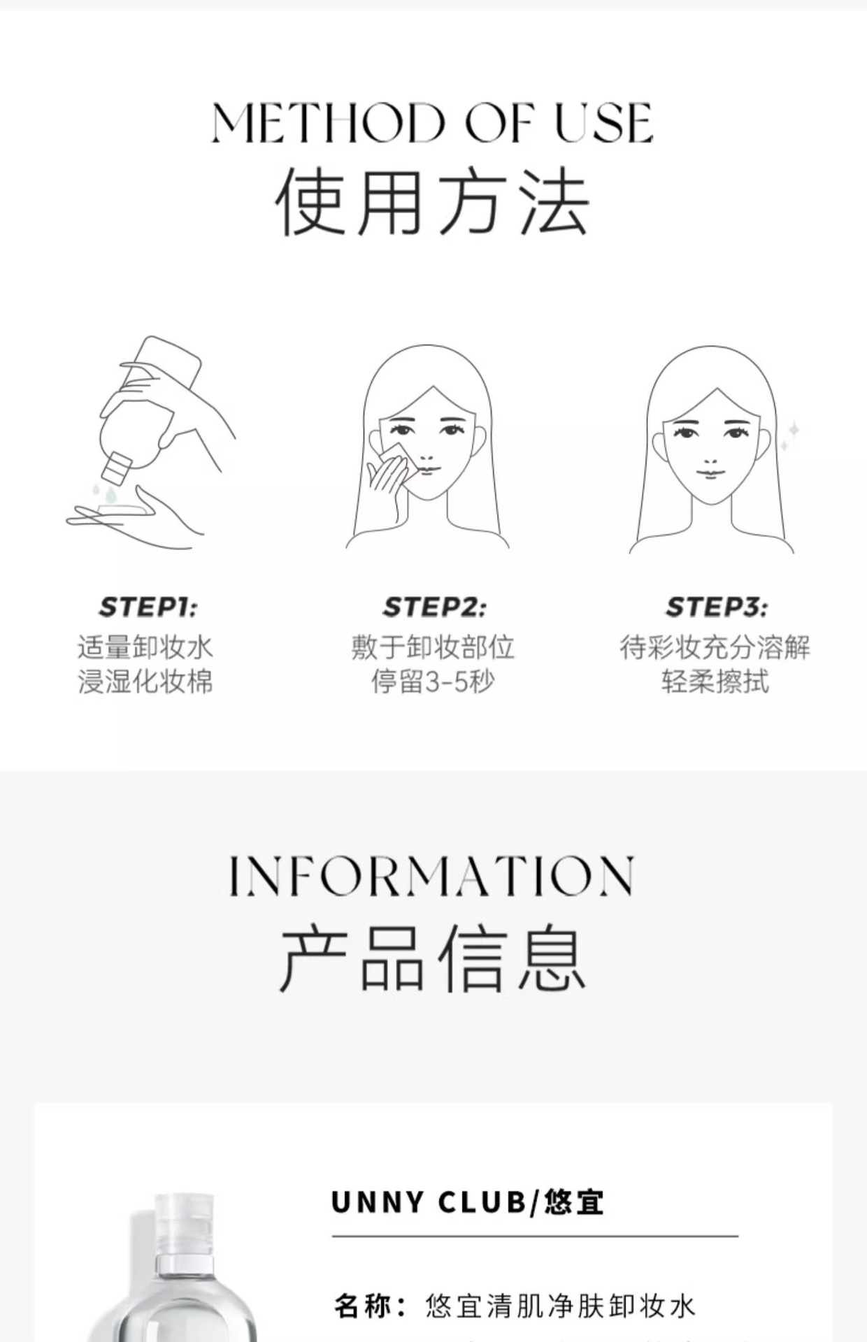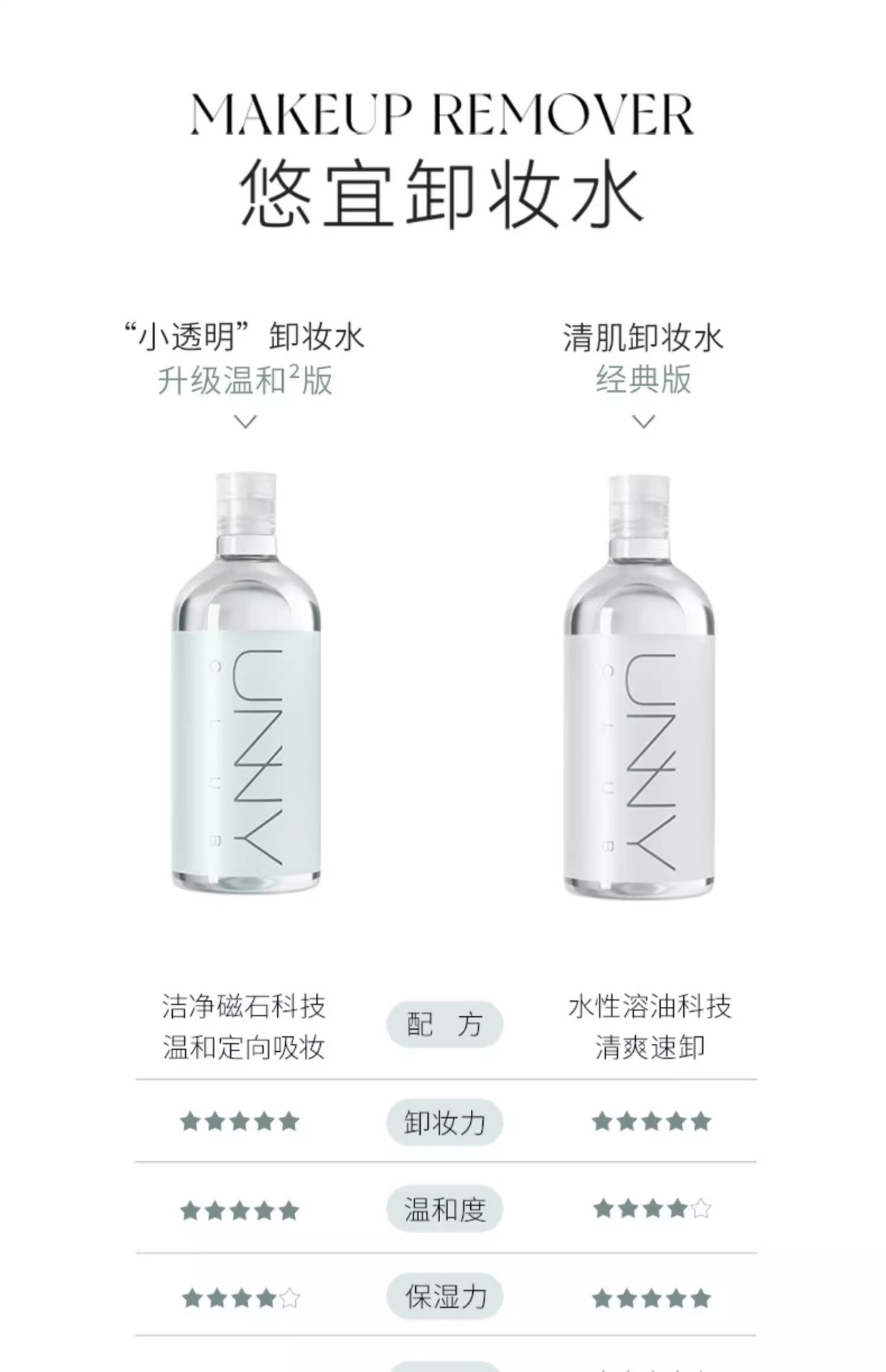 UNNY 清肌净肤卸妆水眼唇脸温和清洁三合一悠宜卸妆液油 心选到家