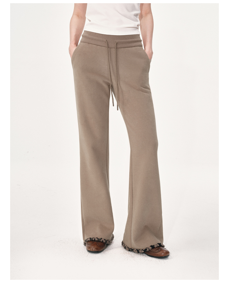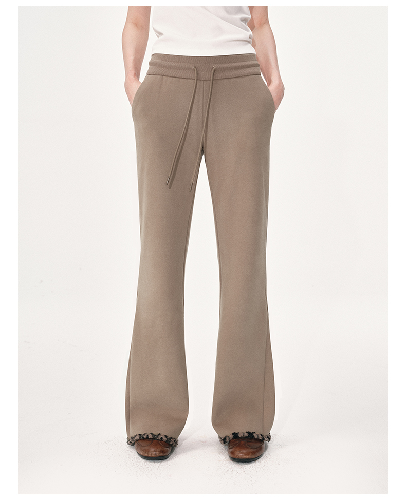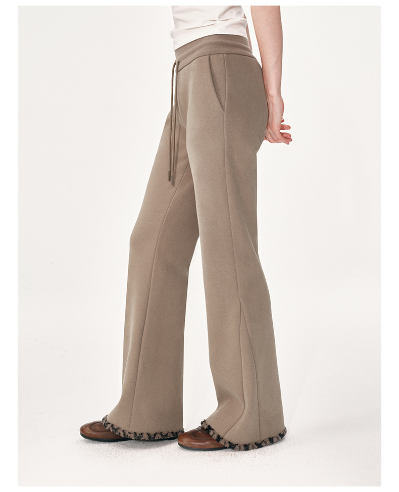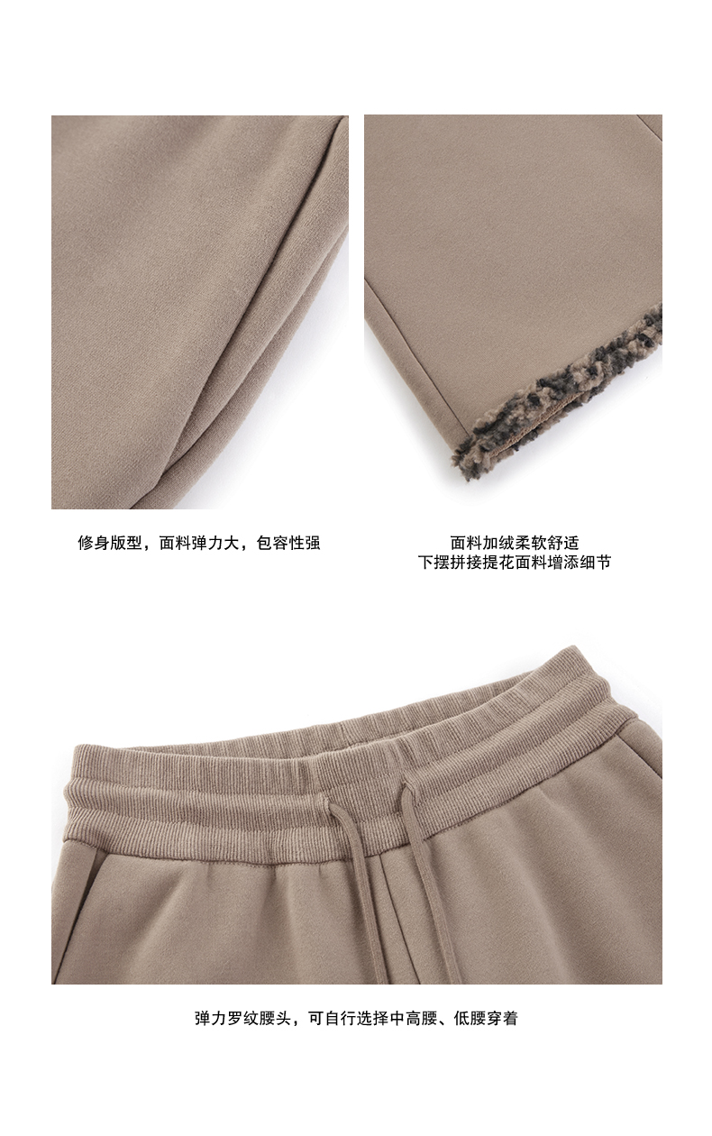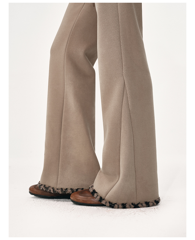 NUTH棕色摇粒绒弹力修身加绒微喇卫裤女(发货时间同步天猫)