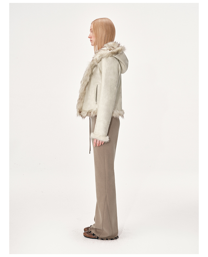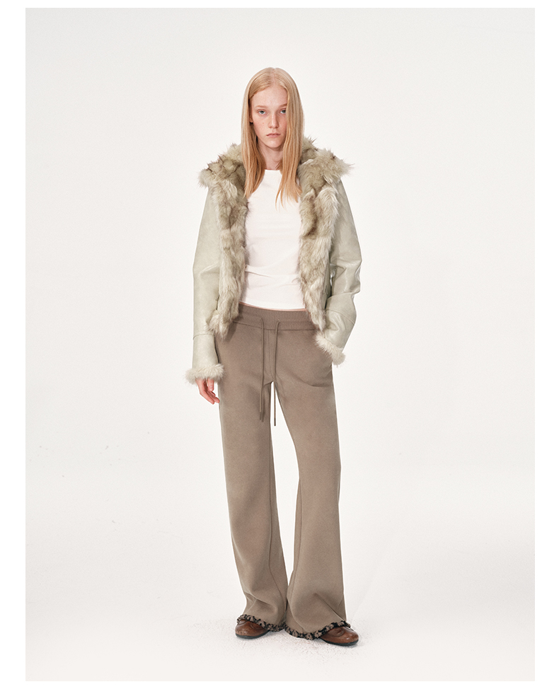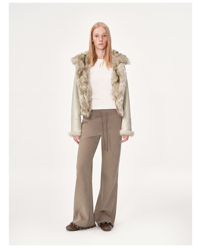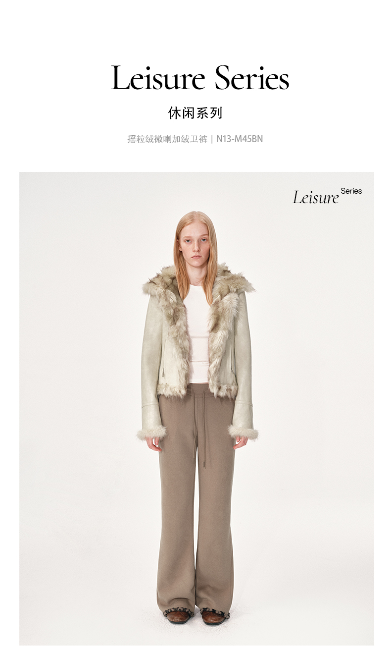 NUTH棕色摇粒绒弹力修身加绒微喇卫裤女(发货时间同步天猫)