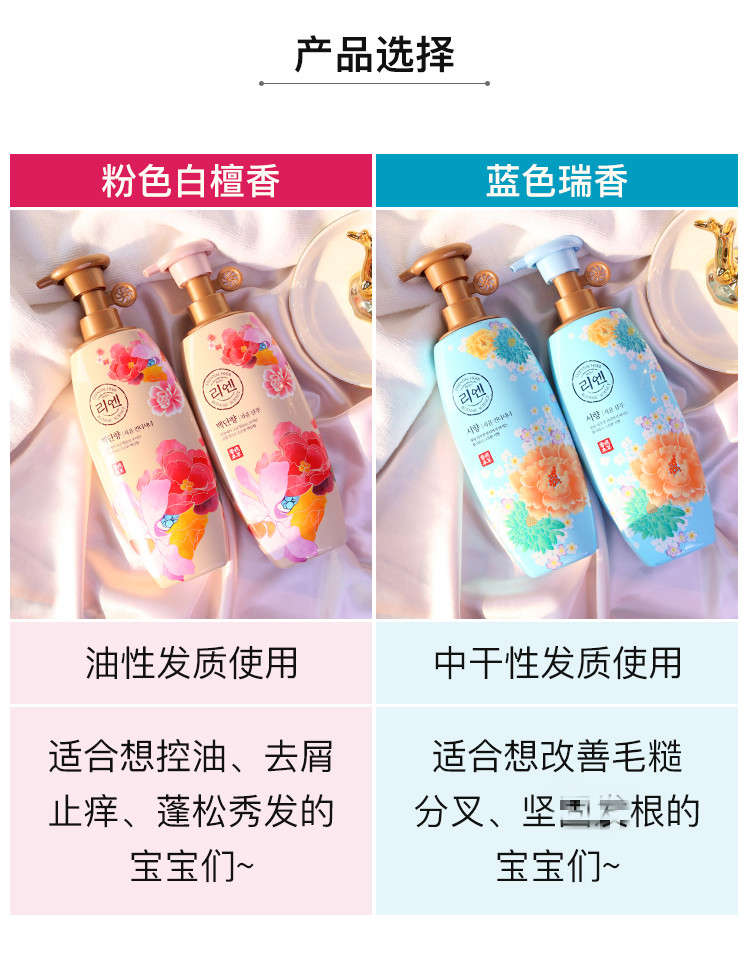 ReEn睿嫣 韩国进口控油去屑花香洗发水护发素组合装 500ml/瓶