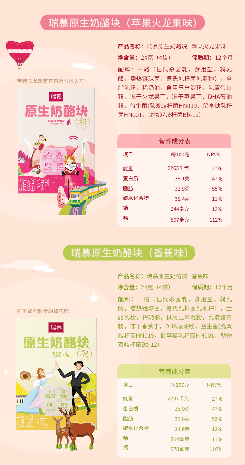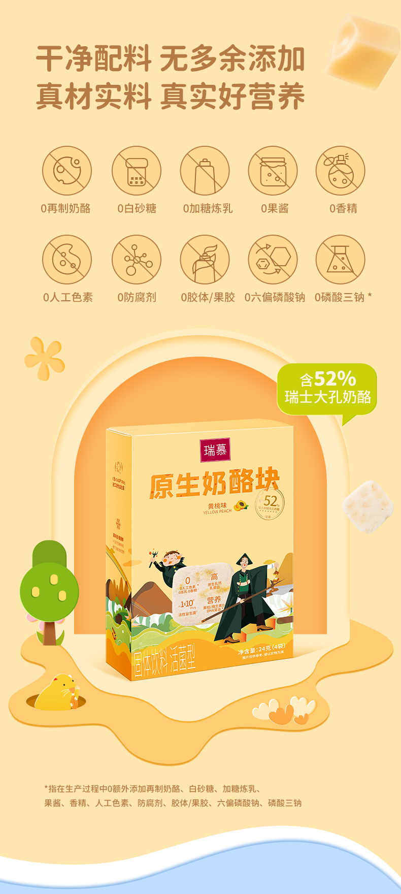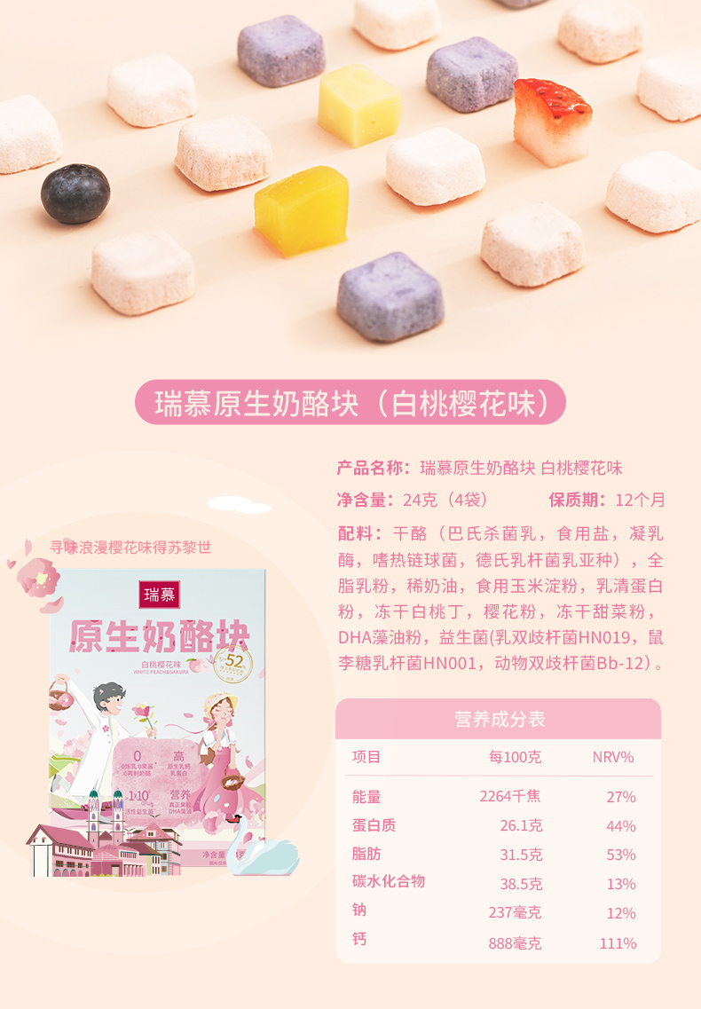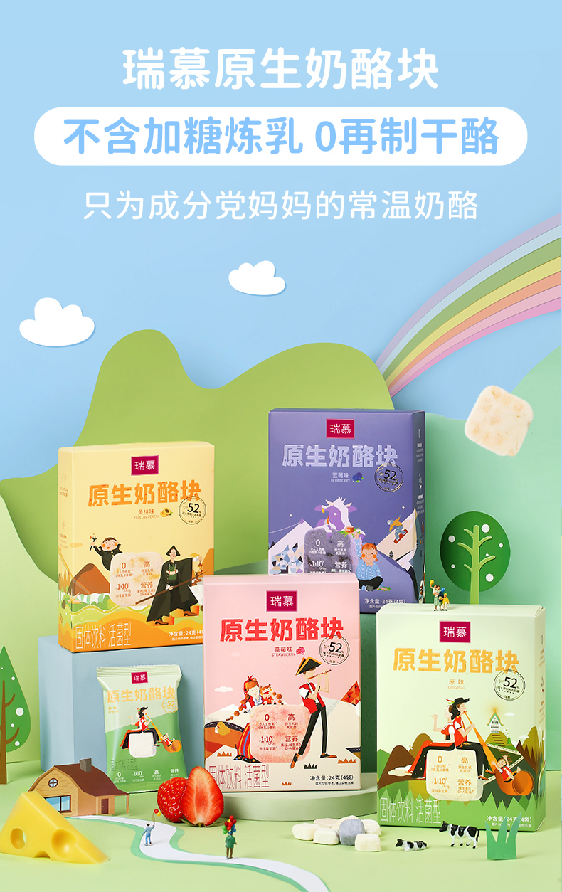 瑞慕原生奶酪块儿童宝宝零食芝士块常温奶酪独立包装24g