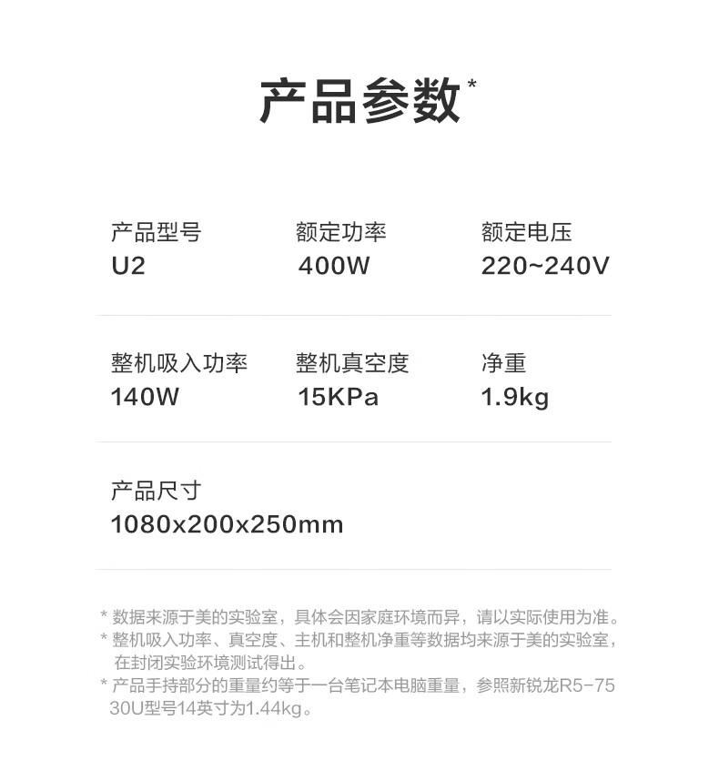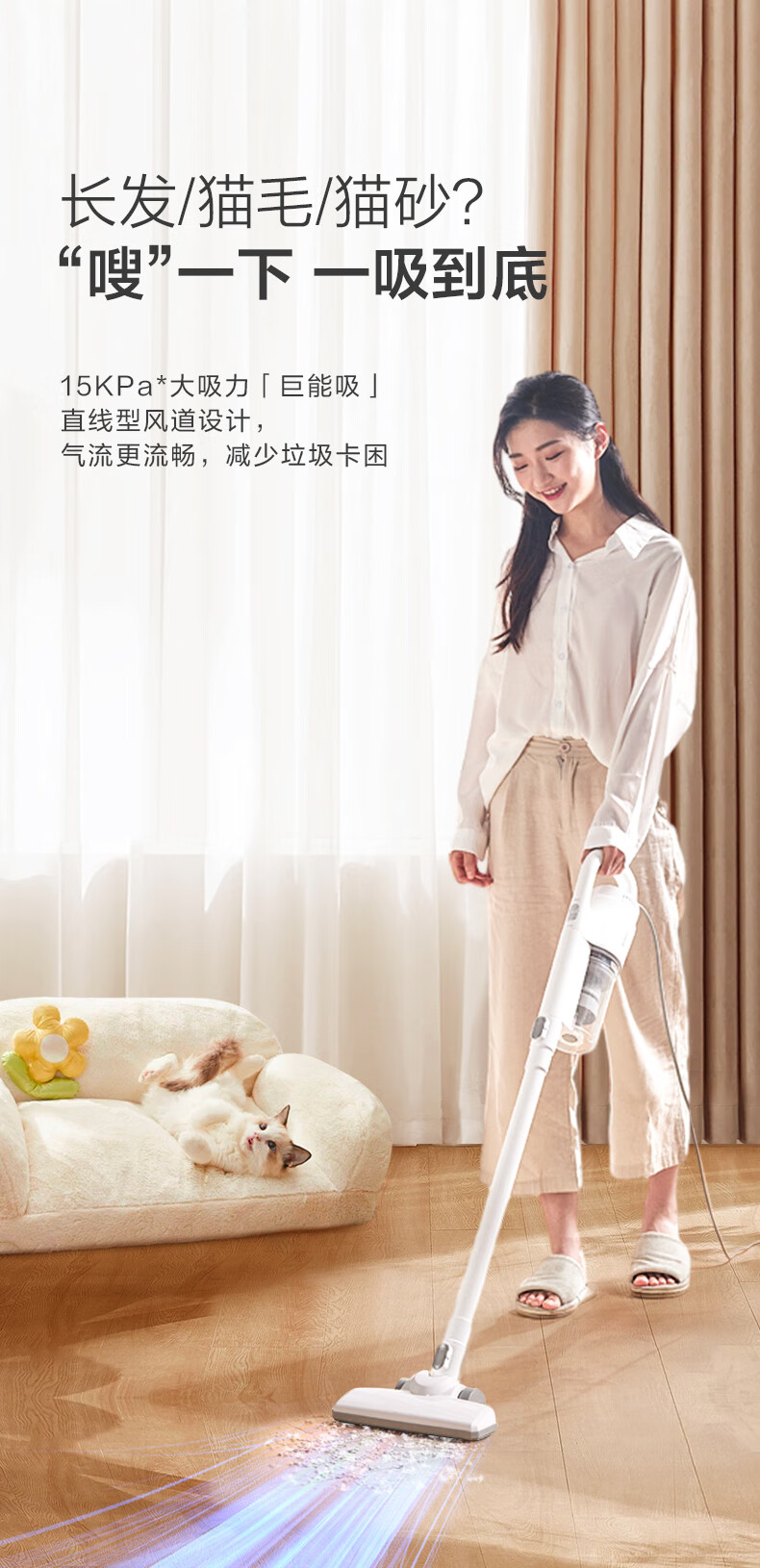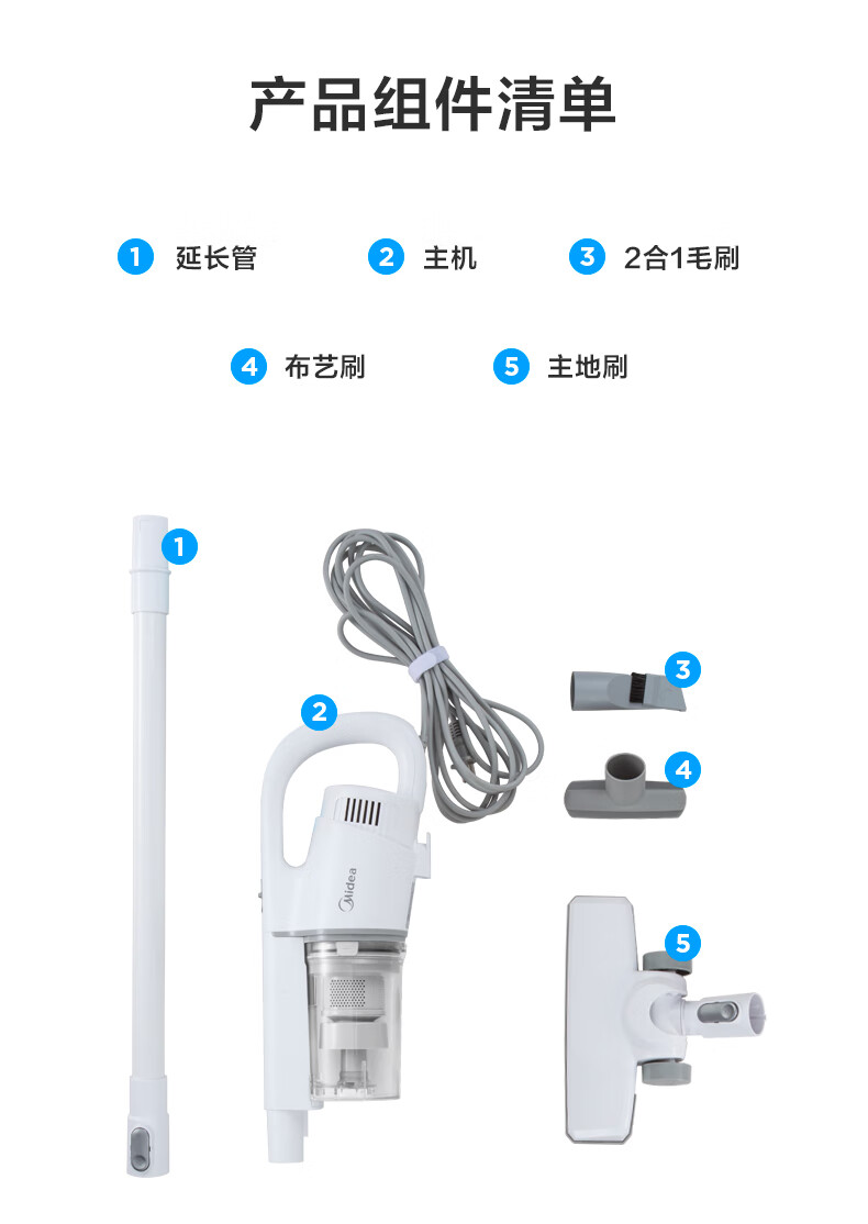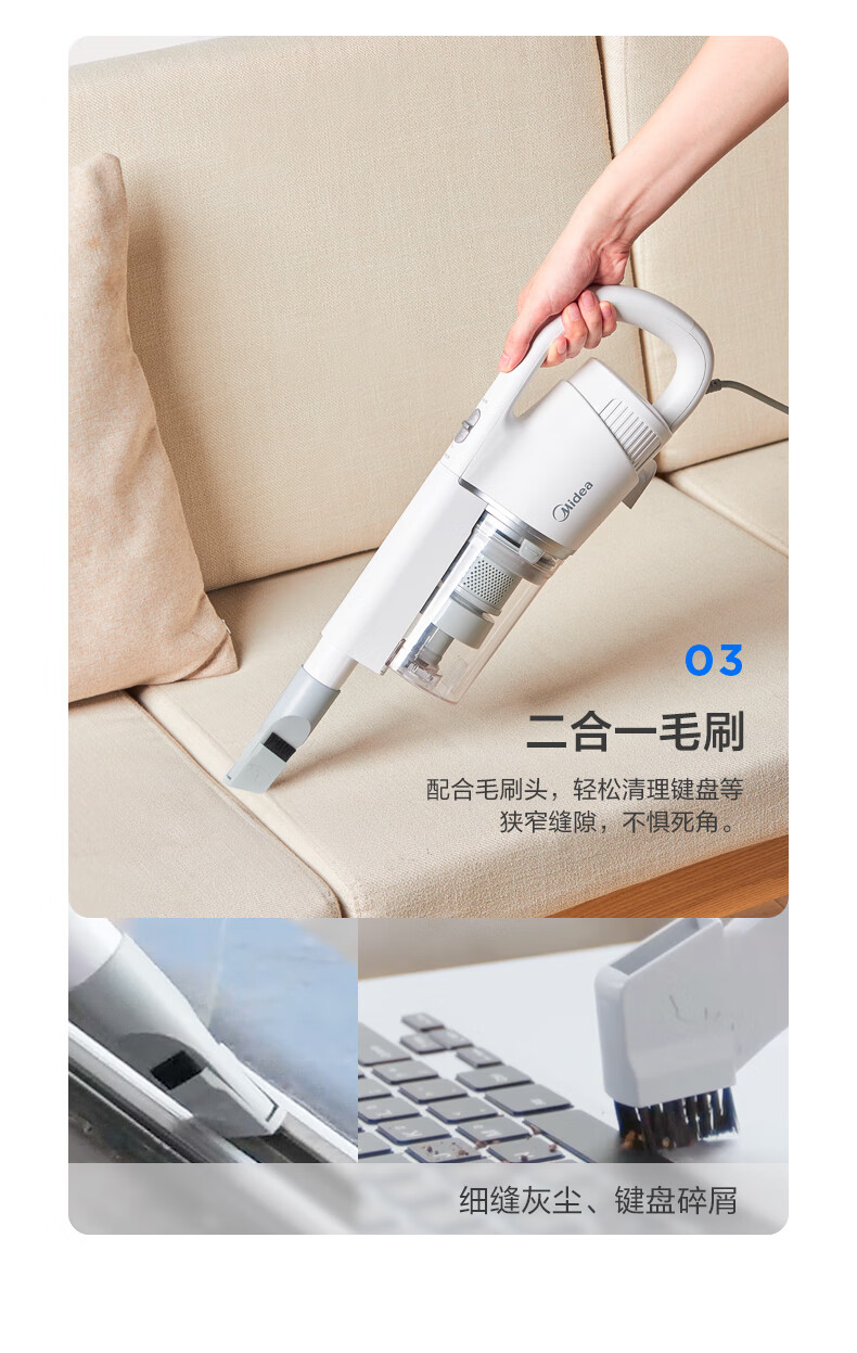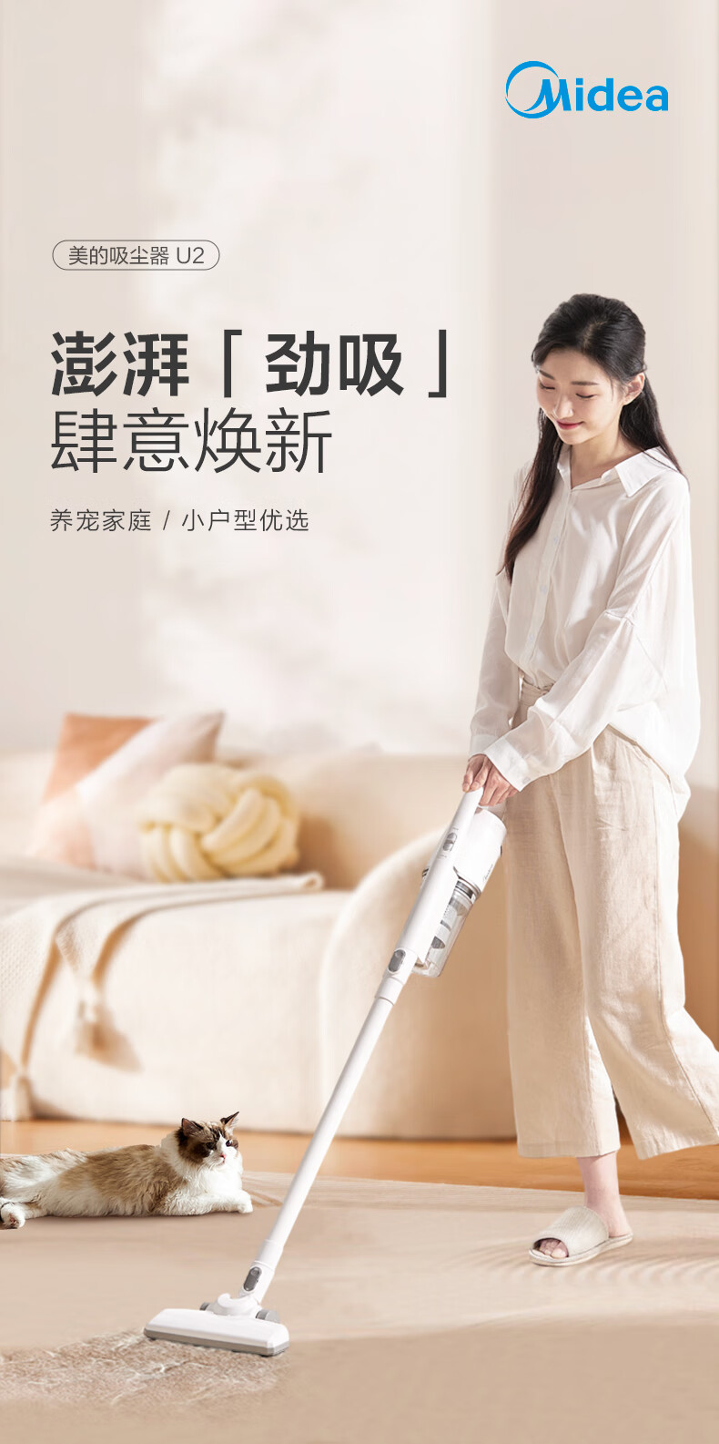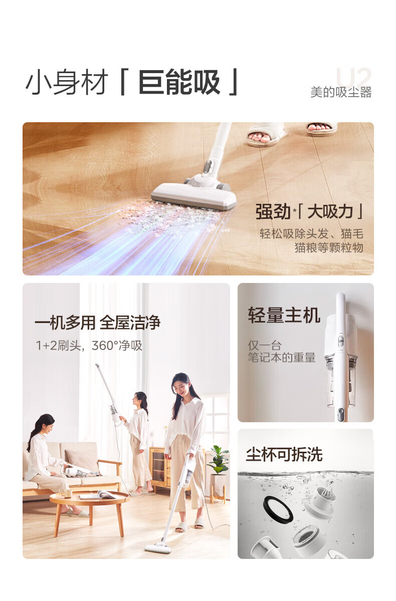 积分免费兑:美的(Midea)吸尘器家用U2 有线手持推杆地毯两用 大吸力吸尘器 大功率轻便清洁机