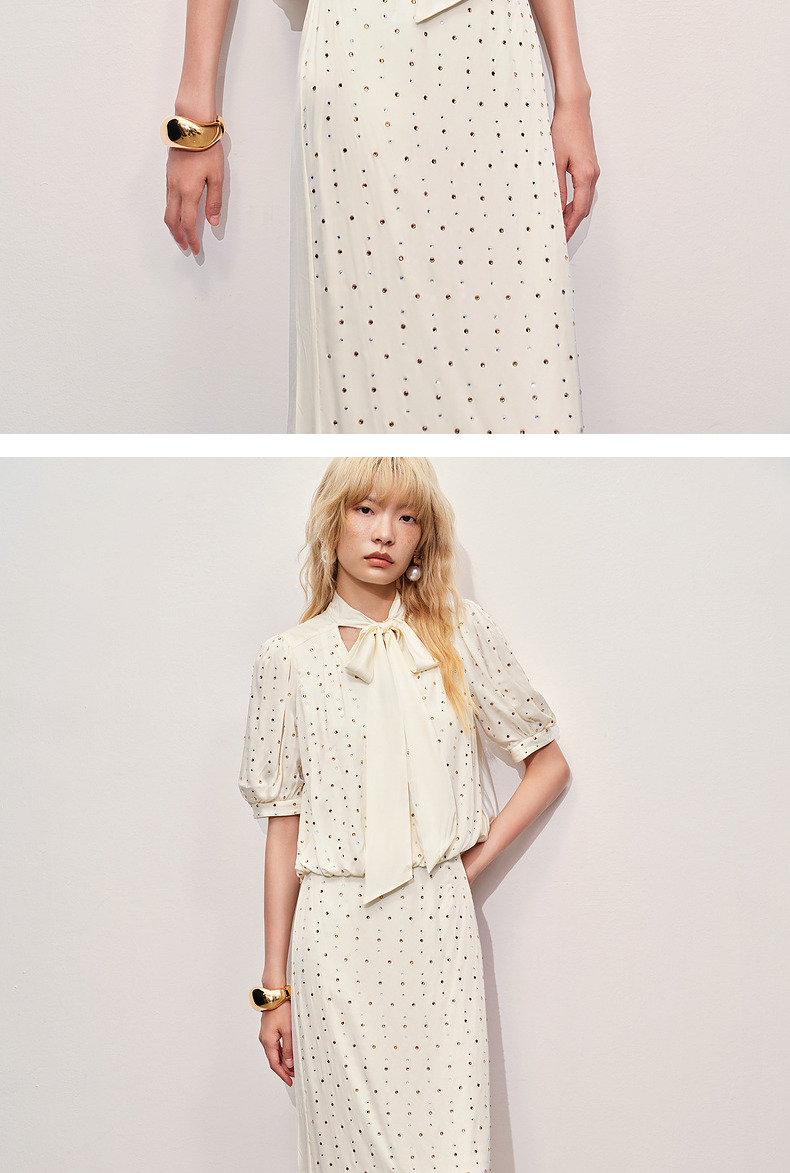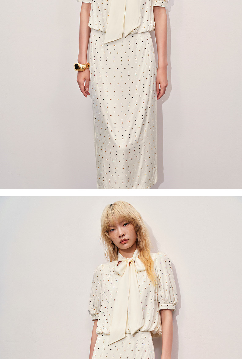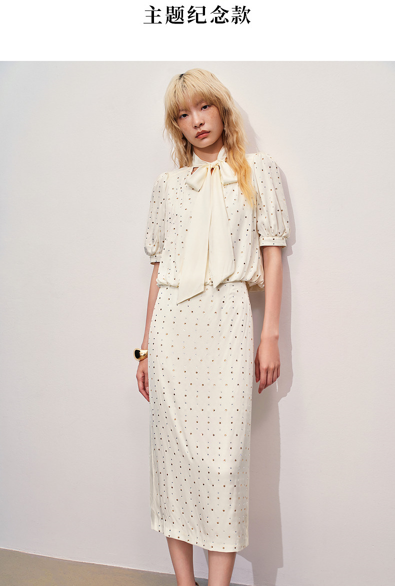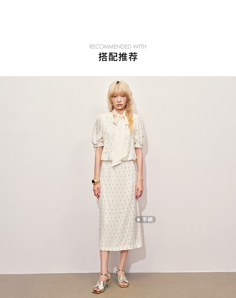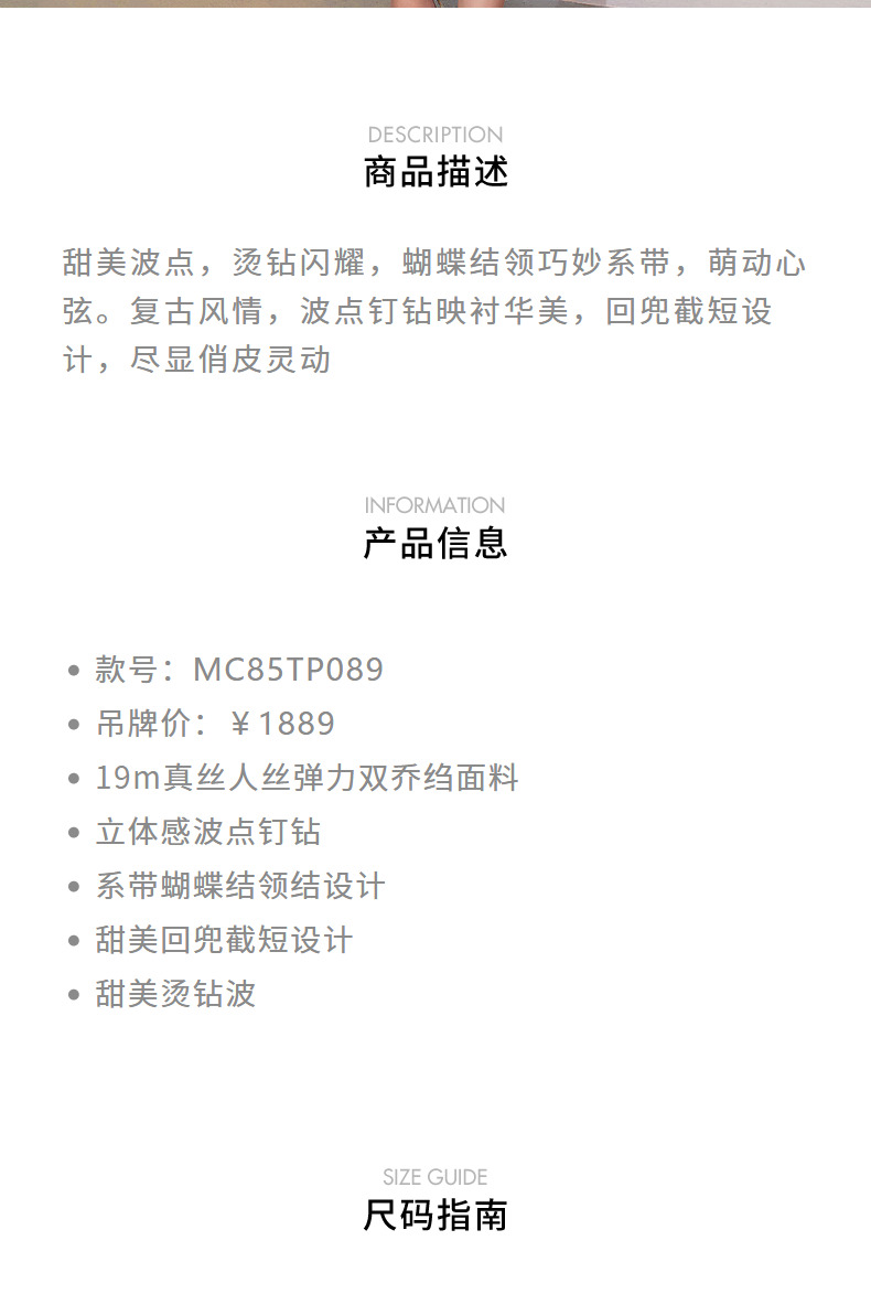 玛克门店发货:MAXRIENY甜美烫钻波点蝴蝶结上衣(货号:MC85TP089)