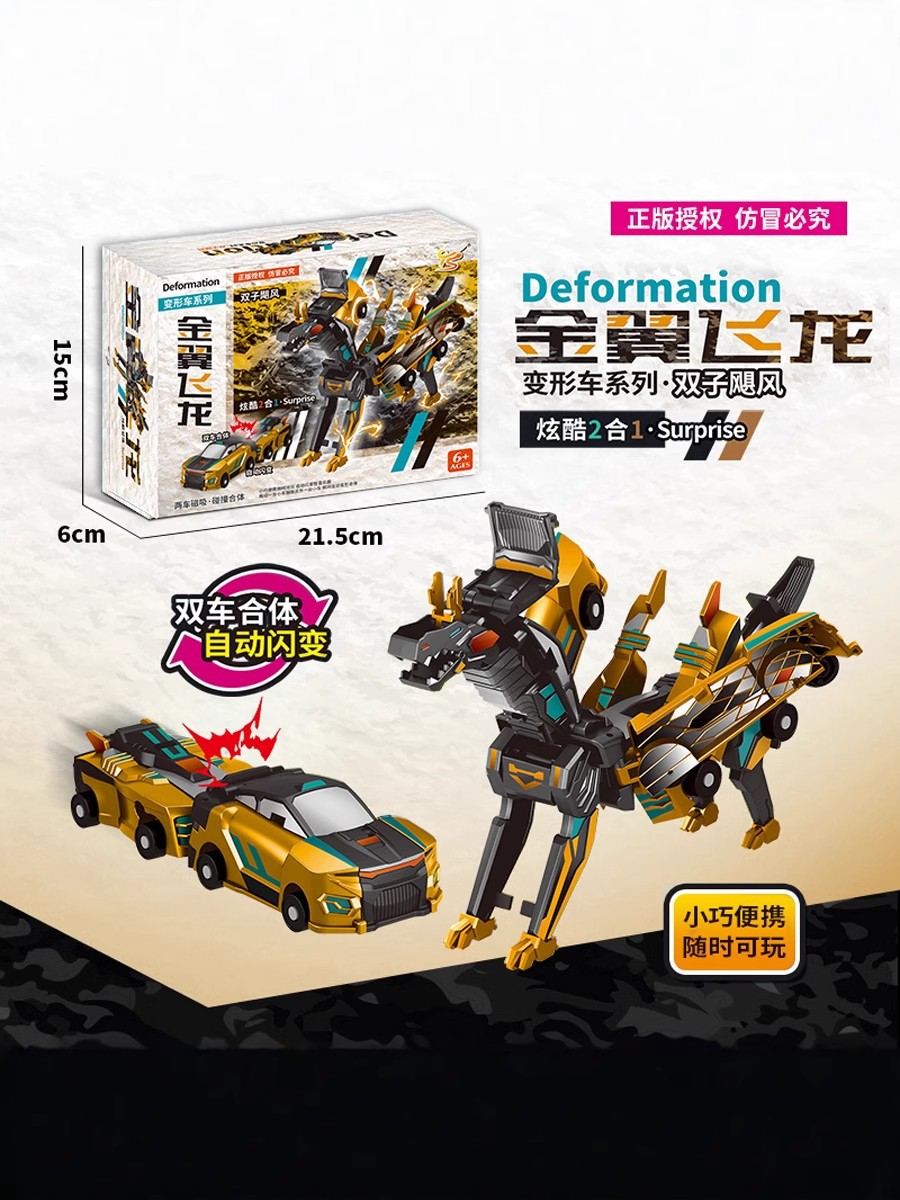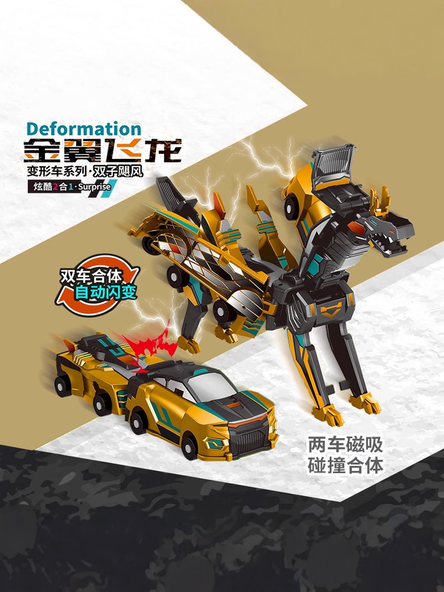 【两车碰撞可合体】咖宝车神双车合体 自动闪变 炫酷二合一变形玩具车 金翼飞龙两车碰撞变形银翼 独角兽变形玩具
