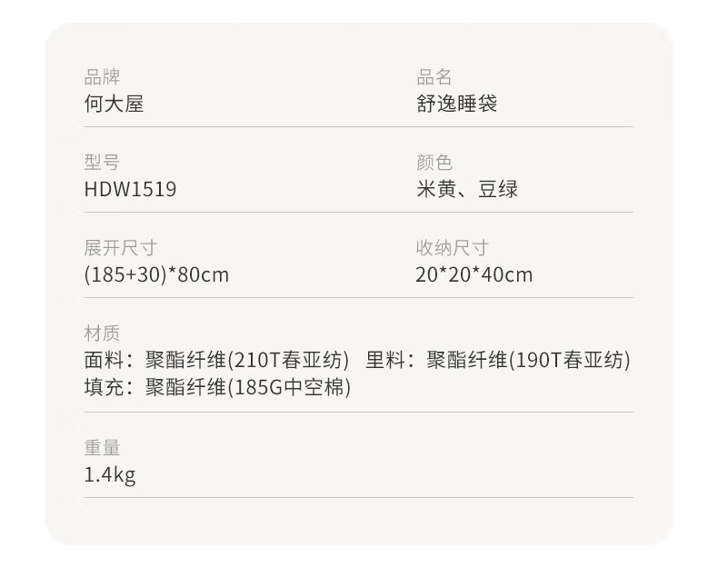 何大屋(Hodtown)睡袋 舒逸睡袋HDW1519豆绿