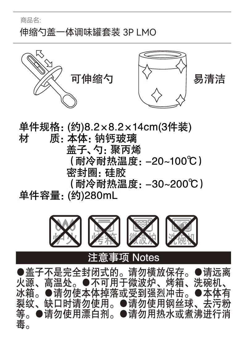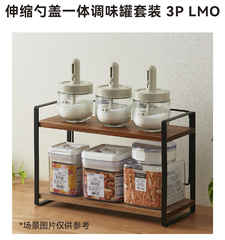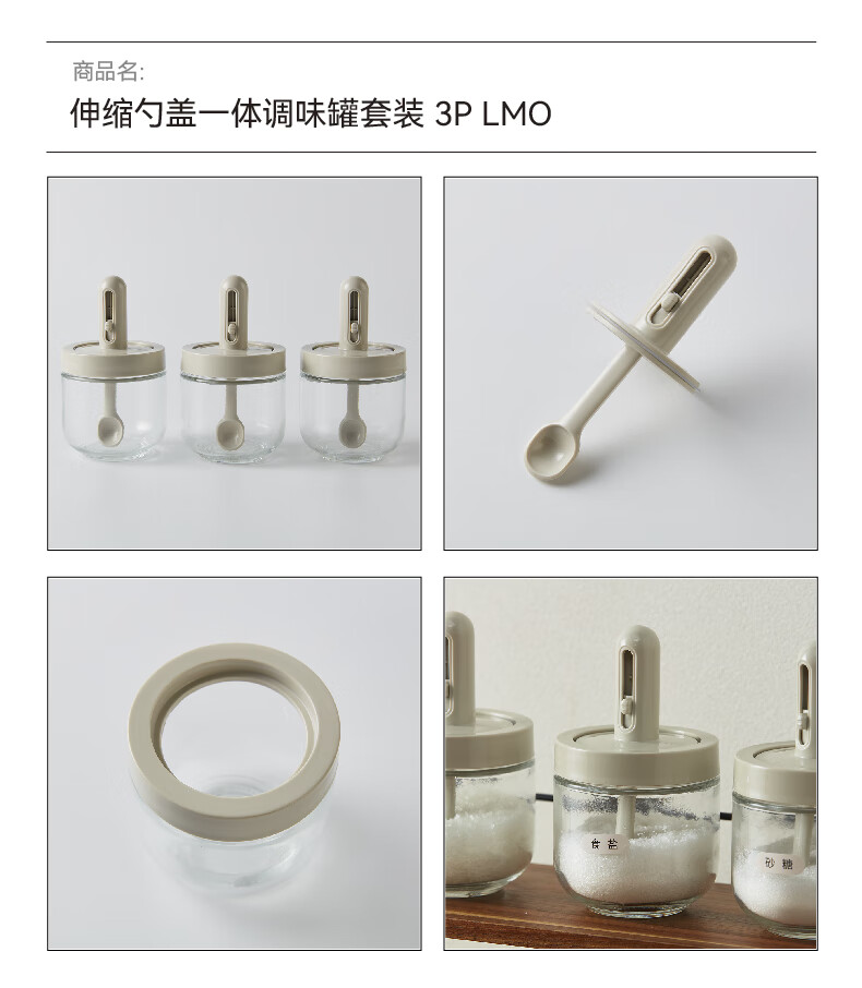 NITORI宜得利家居 厨房玻璃调味瓶伸缩勺盖一体调味罐套装