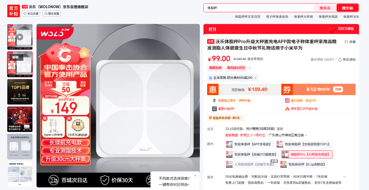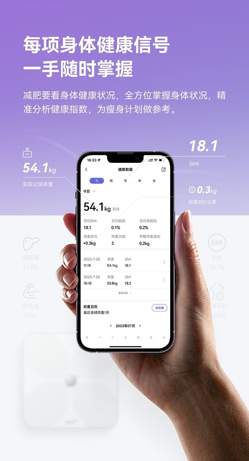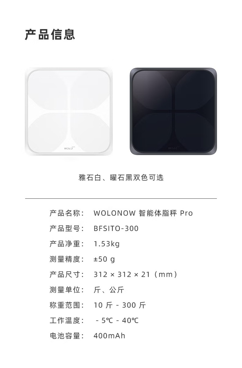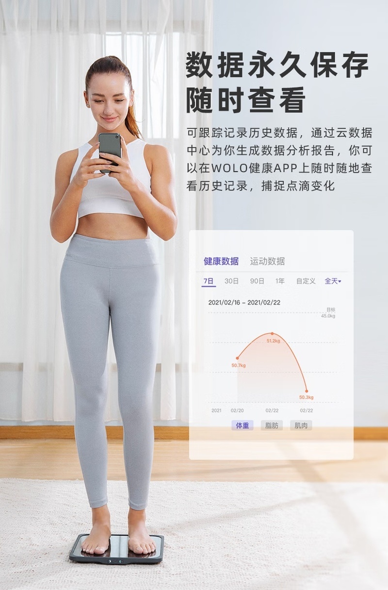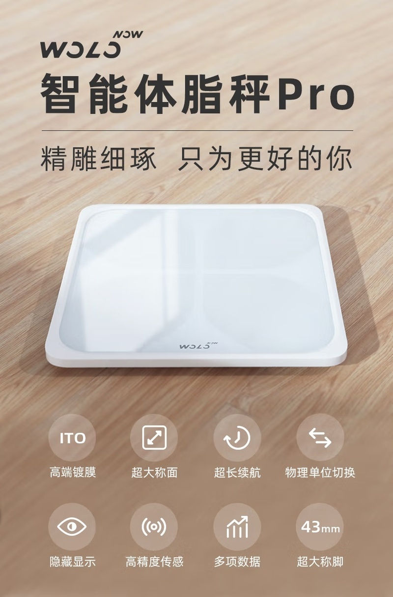【小米有品】WOLO/沃乐 智能体脂秤Pro版 升级大秤面 19项数据测量 BFSITO-300 PRO