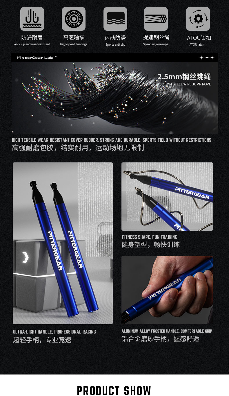 【执炼FitterGear】竞速跳绳钢丝健身减肥专用运动成人FGJYTS