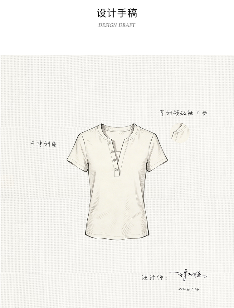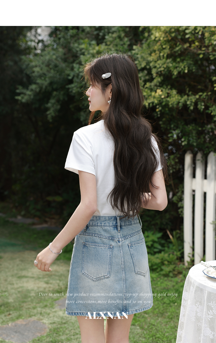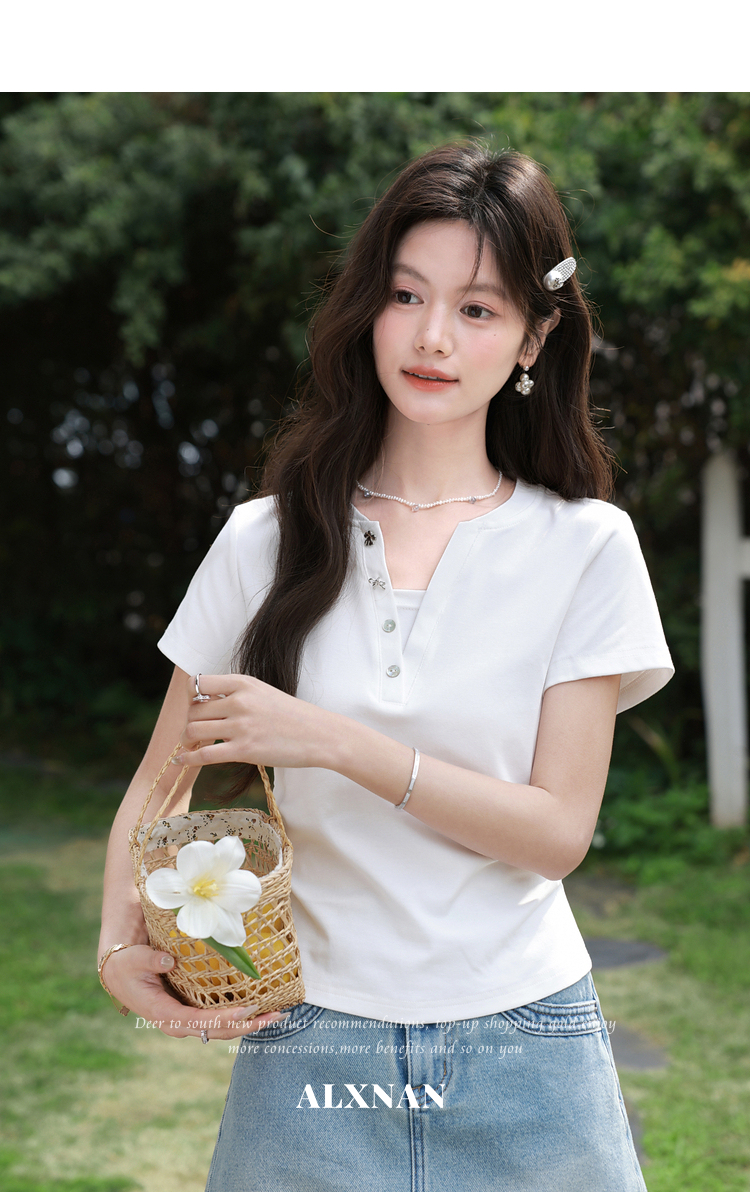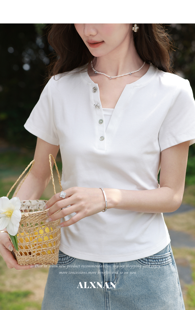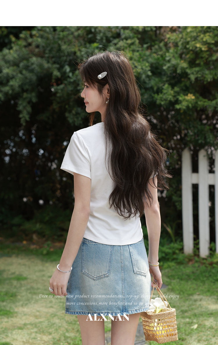 鹿向南「皎洁白月」法式白色短袖设计感T恤女夏新款修身显瘦上衣