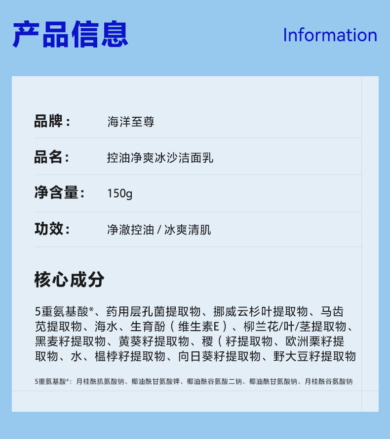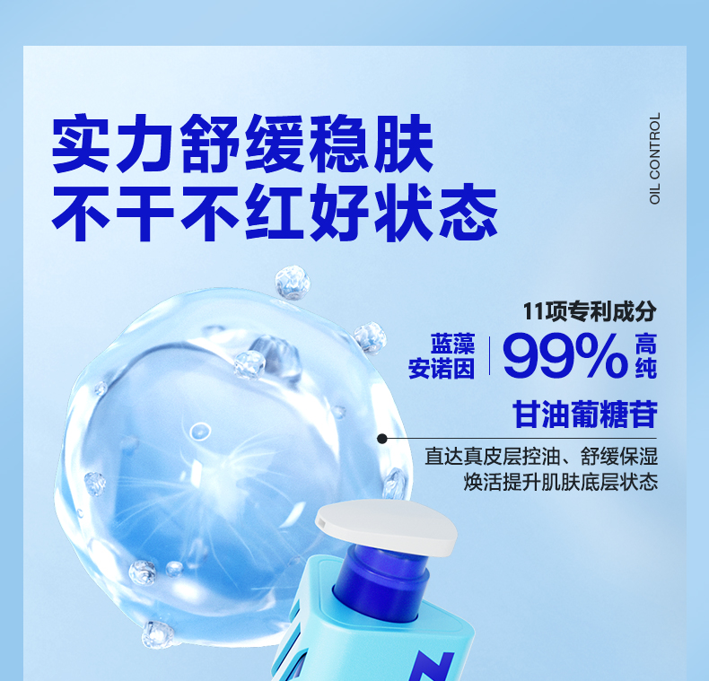 海洋至尊水律长效控油祛痘洁面露2瓶 赠送祛痘精华液3ml*2