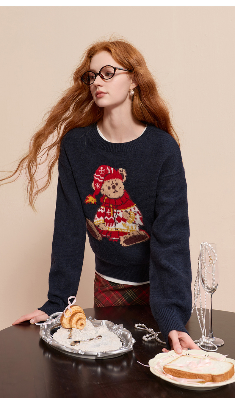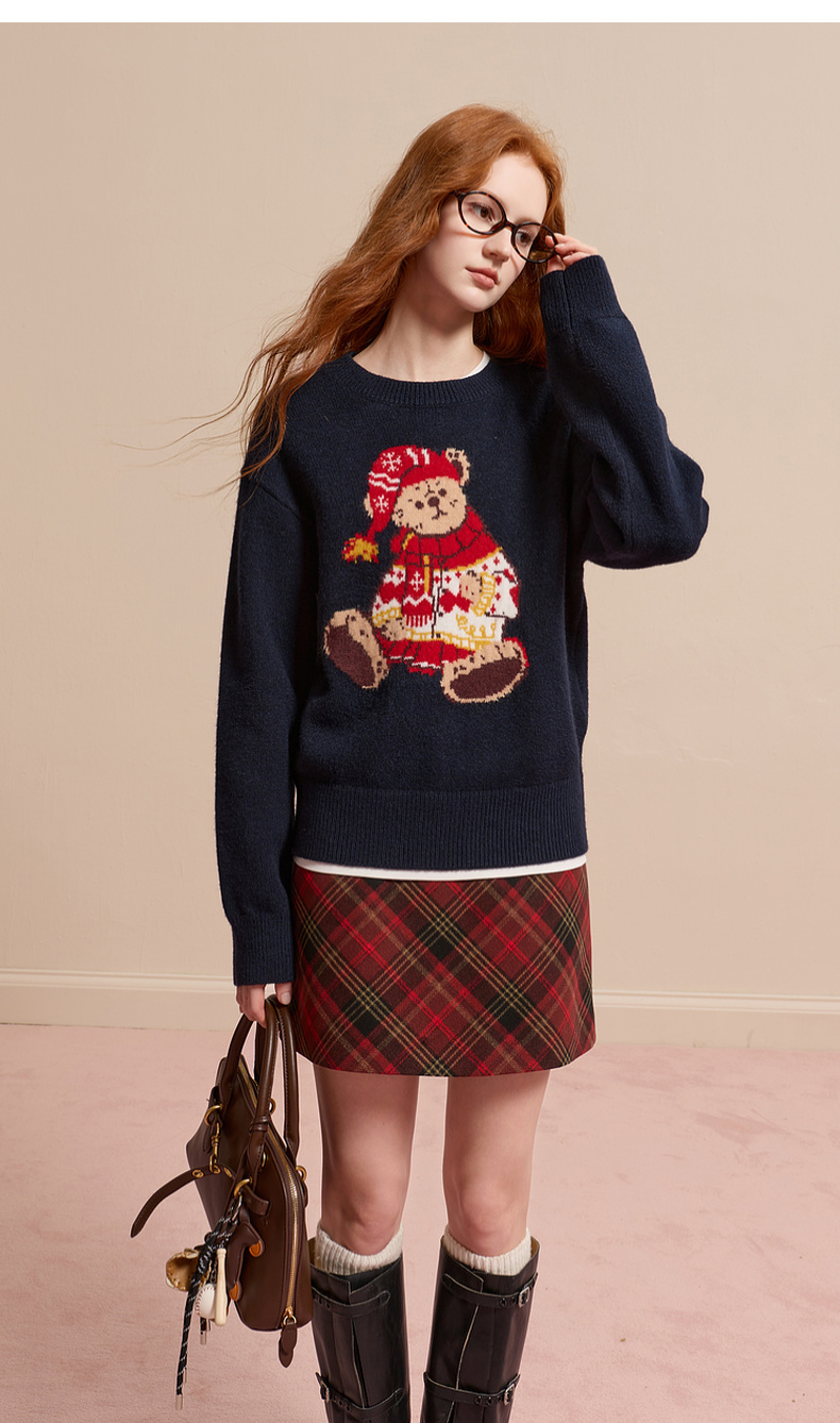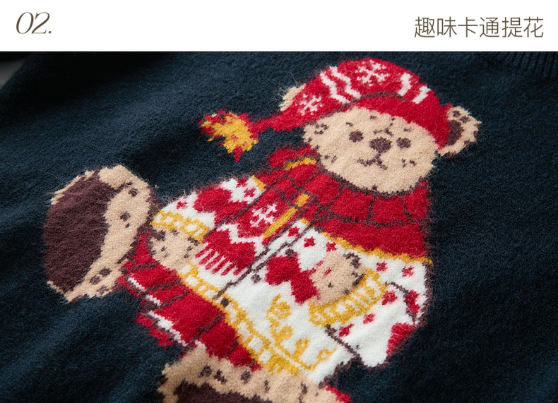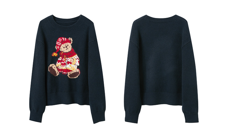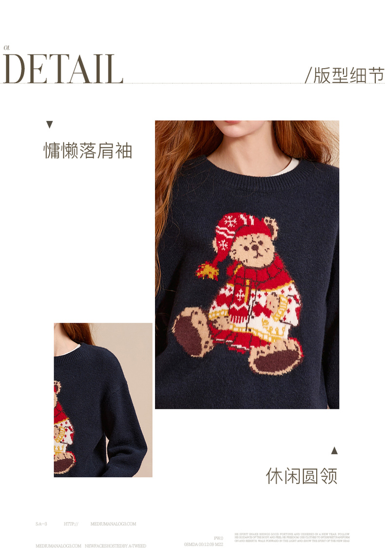 三彩2025冬季新款慵懒宽松圆领提花针织衫长袖套头衫上衣显瘦M