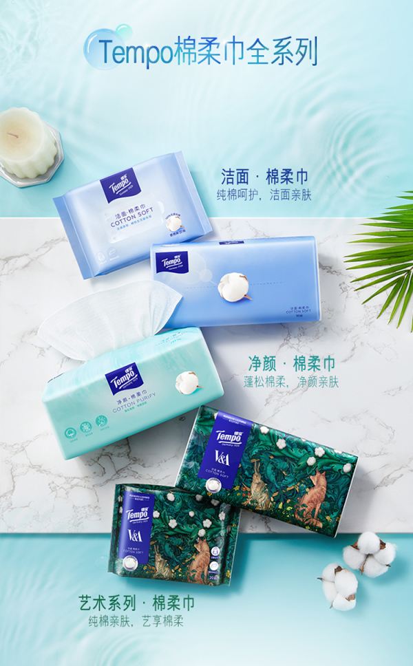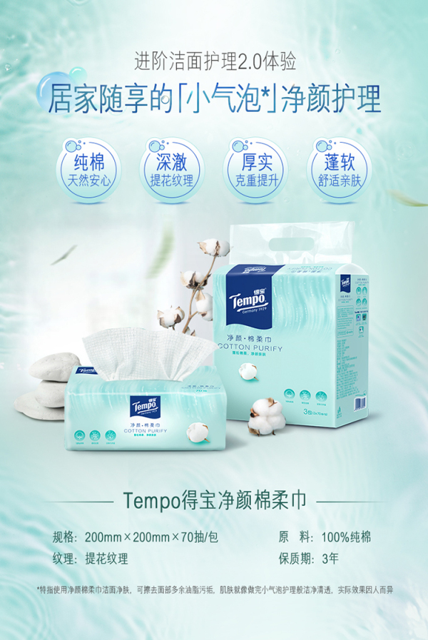 得宝 净颜全棉棉柔巾70抽×3包 抽取式洗脸巾