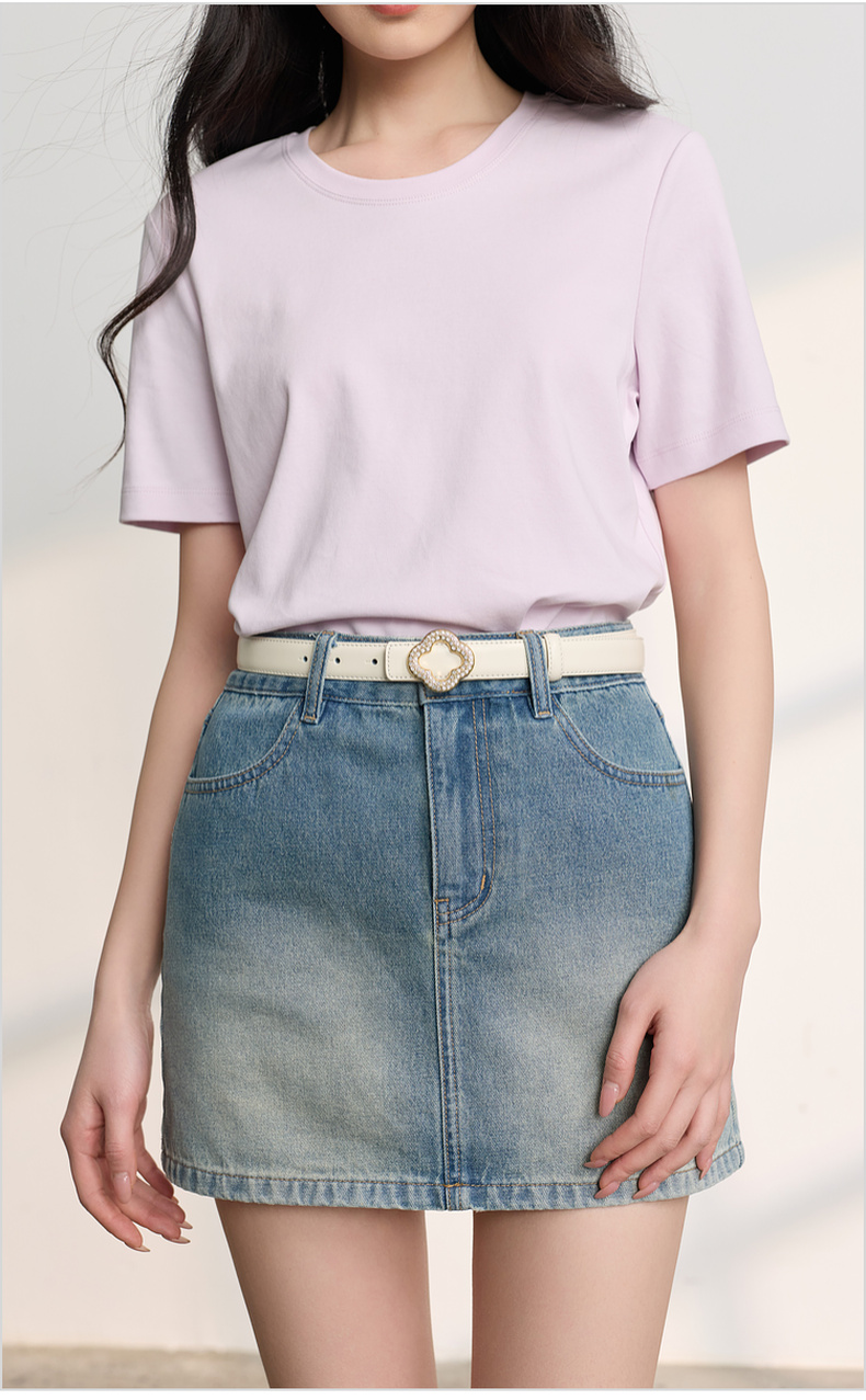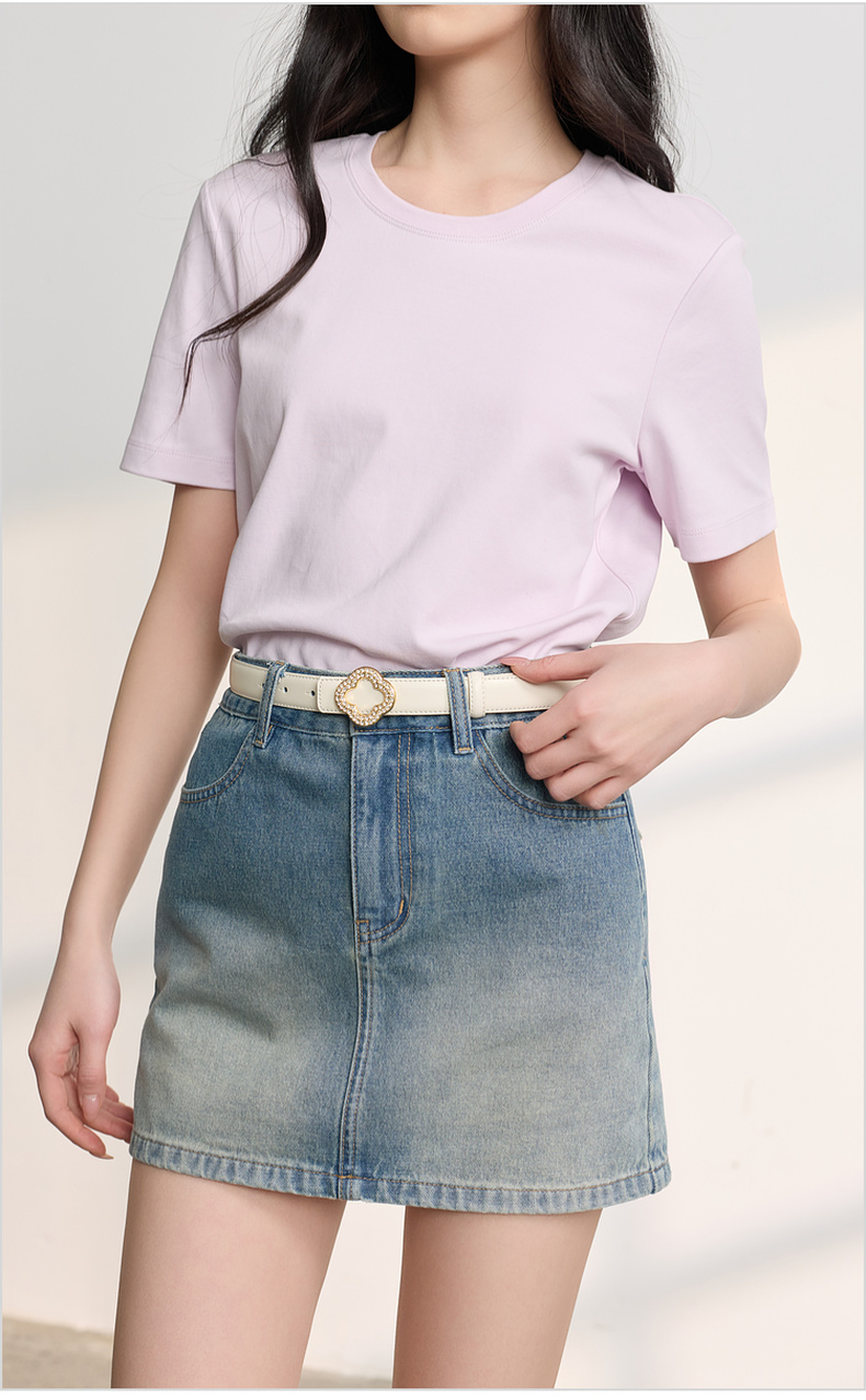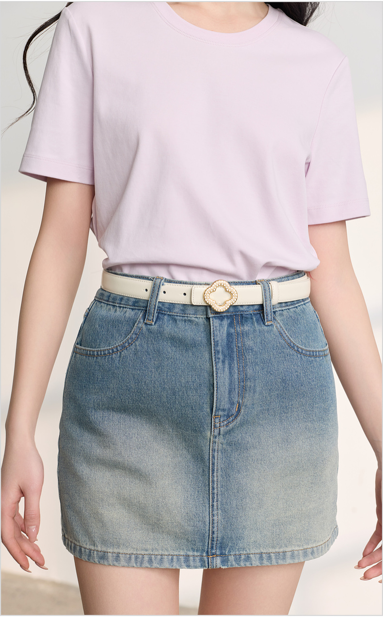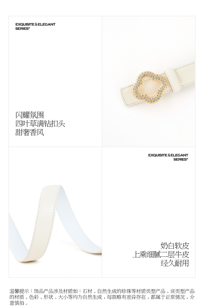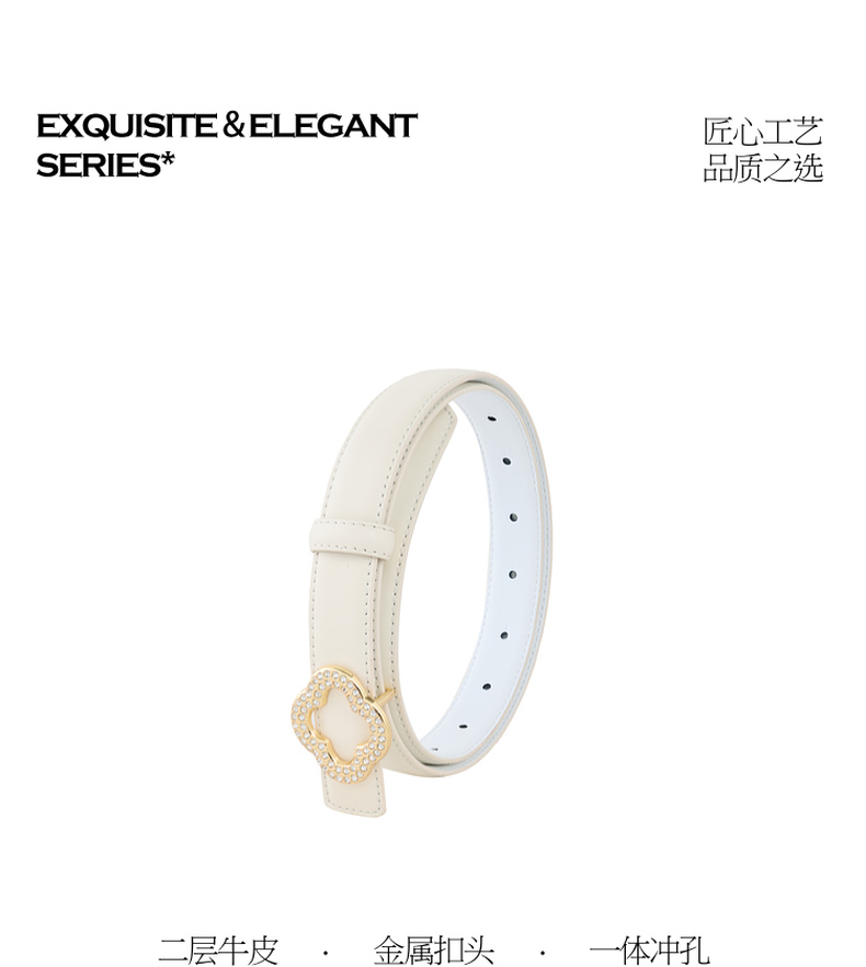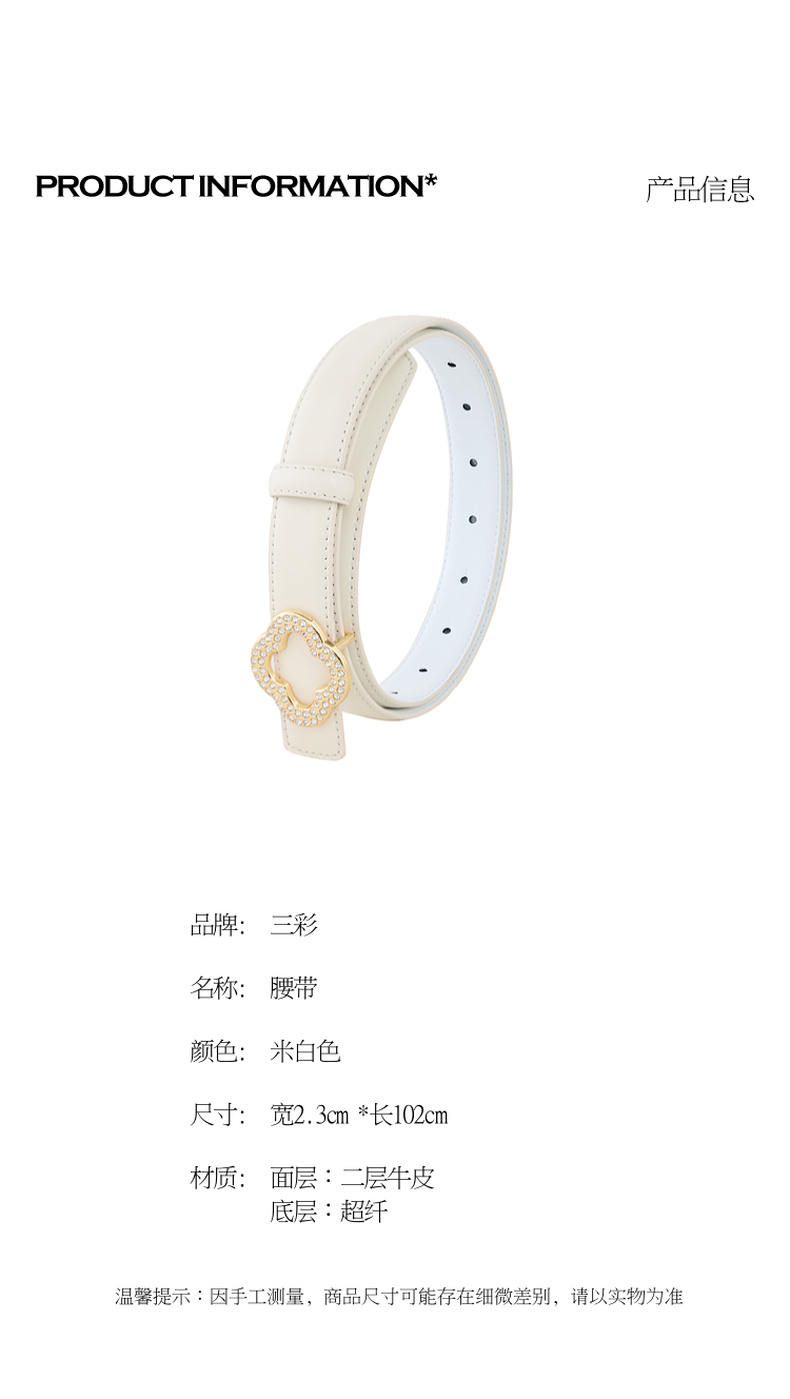 三彩2026新款四叶草满钻扣皮质腰带二层牛皮法式轻奢奶油白香风女