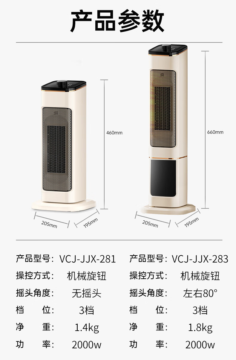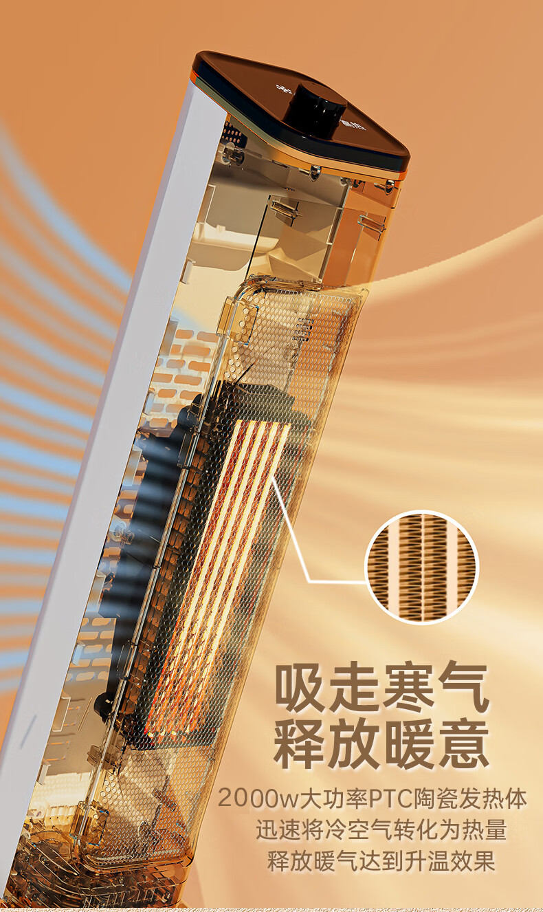 VCJ【德国品牌】取暖器家用电暖器电暖气塔式立式摇头暖风机小太阳全屋电暖气