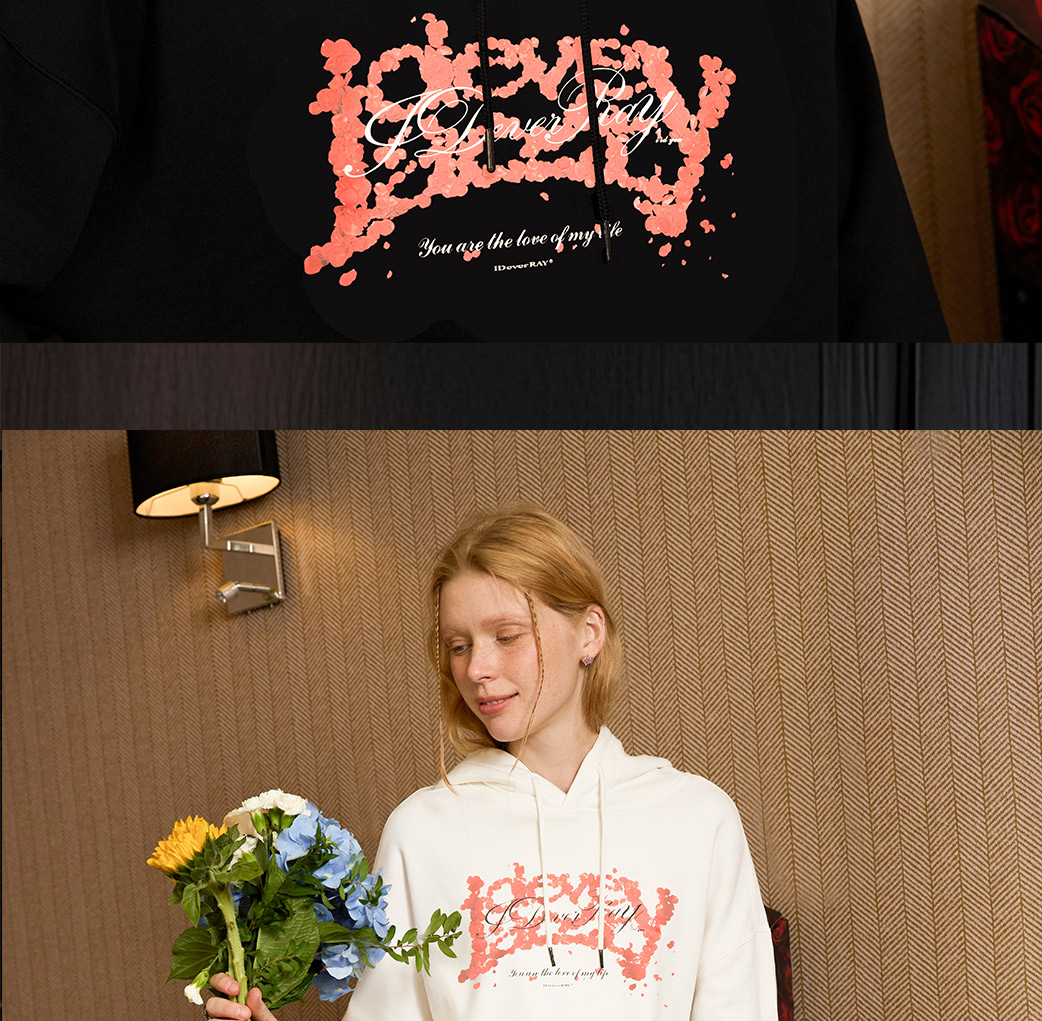IDEVERRAY早秋新款花瓣logo宽松连帽卫衣男生上衣女情侣装帽衫薄