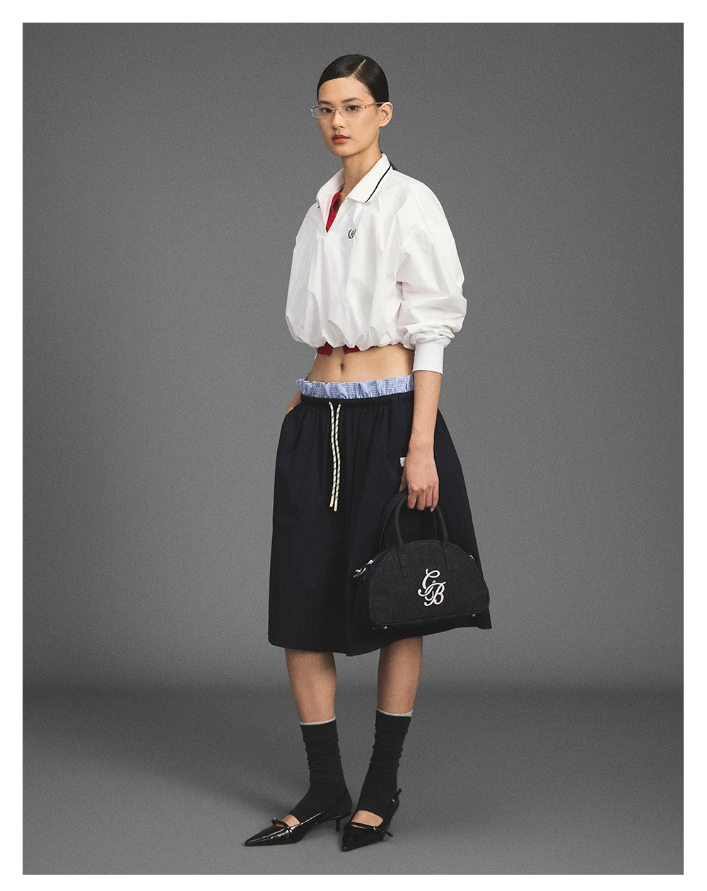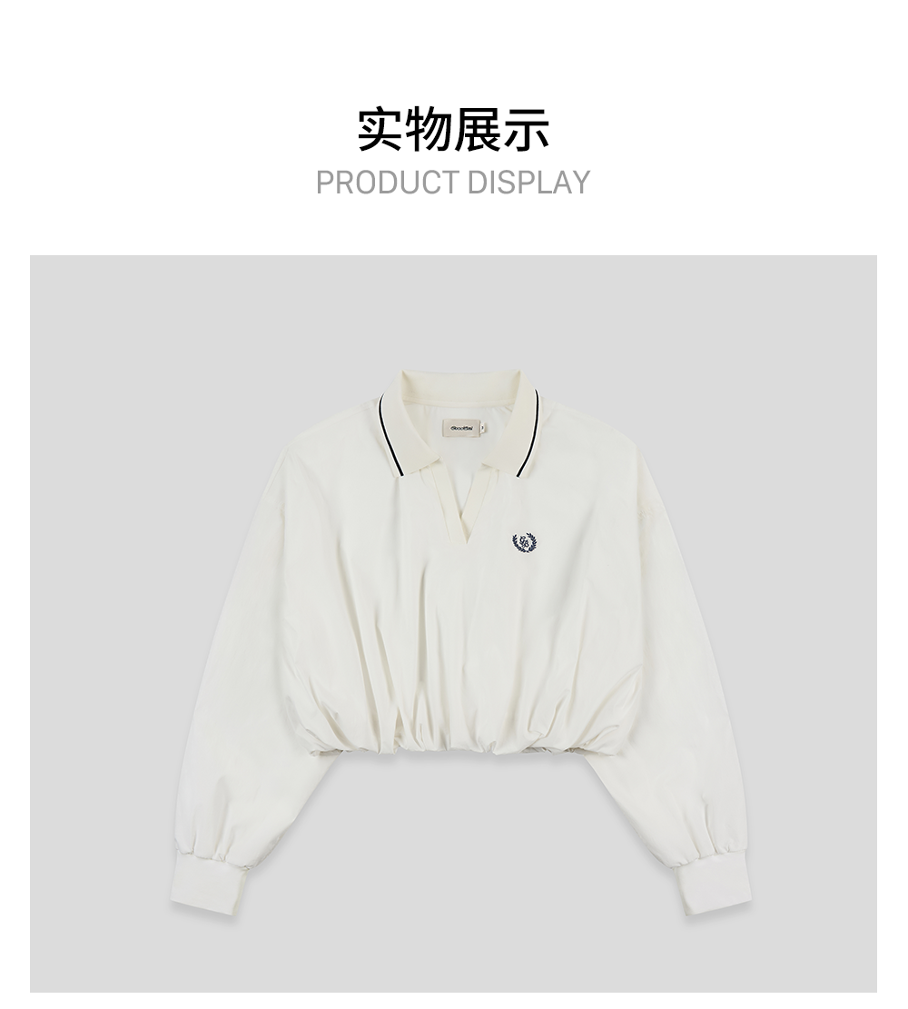 GOODBAI新款刺绣logo翻领短款收腰长袖衬衫女