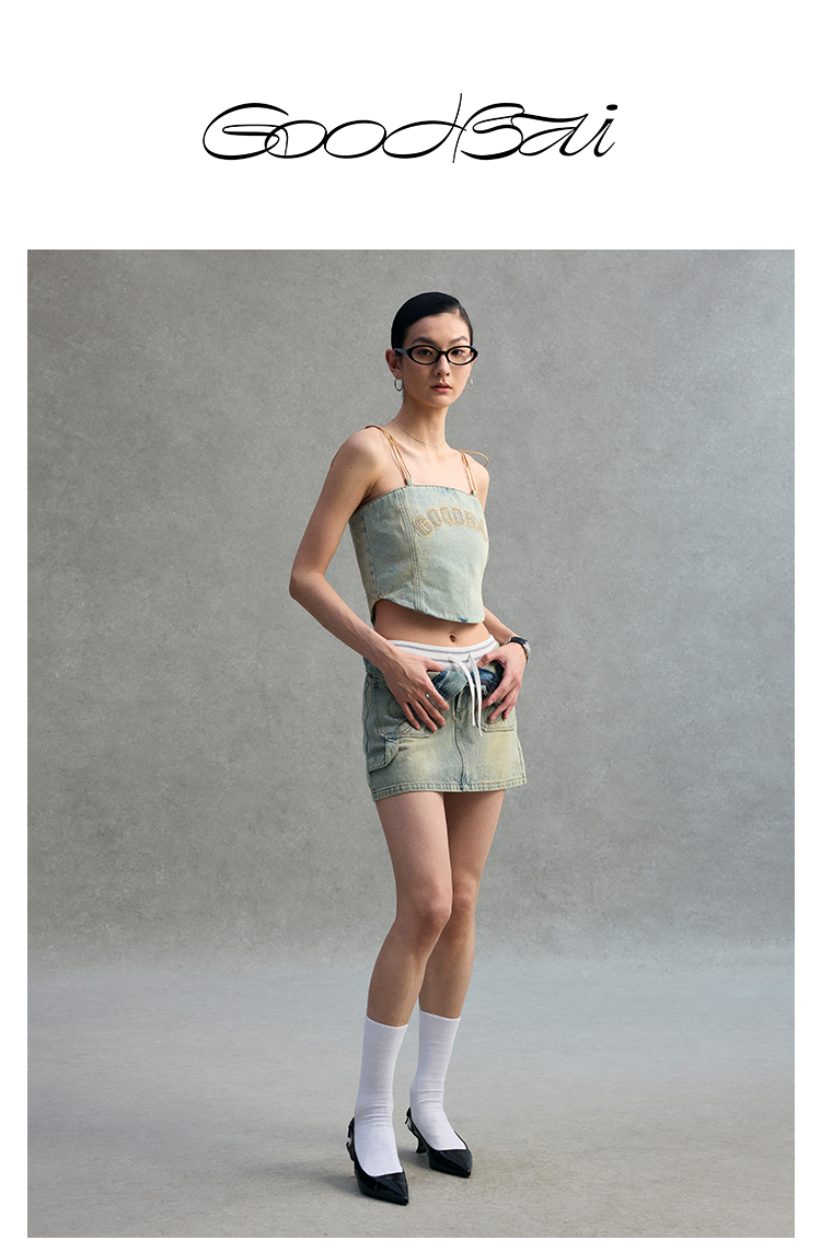 GOODBAI 23编号logo标前片口袋牛仔半身短裙