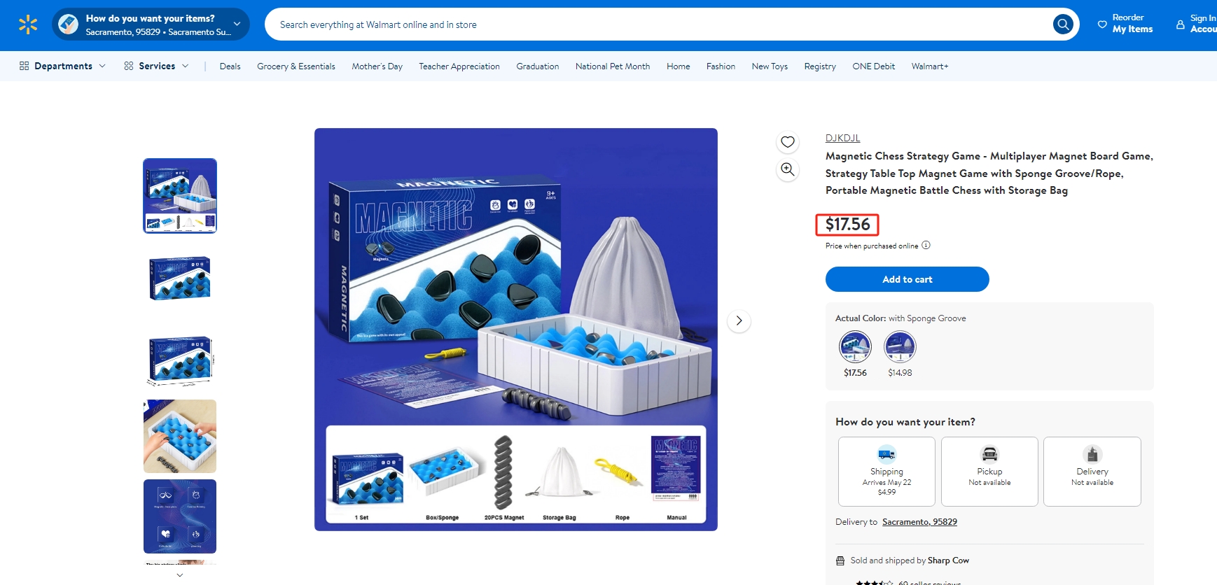 【亚马逊同款20枚棋子售价17.5美金约人民币126元,我们的套装是40枚棋子】