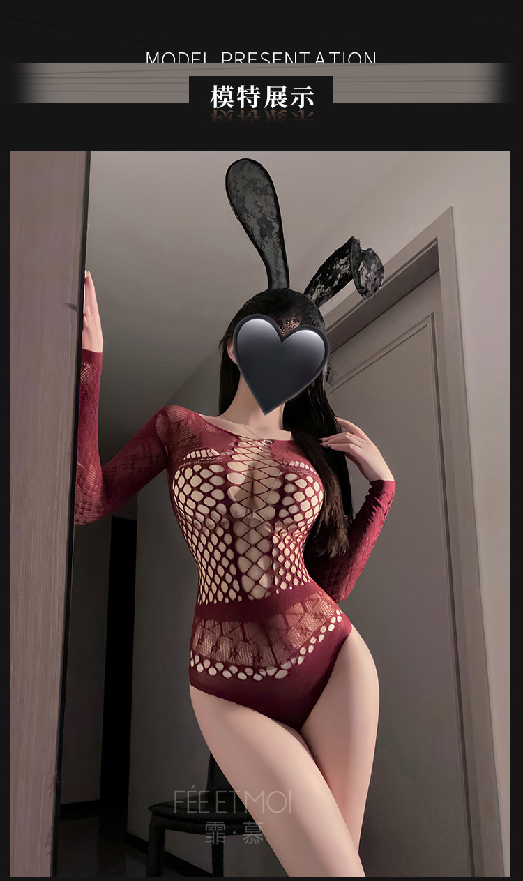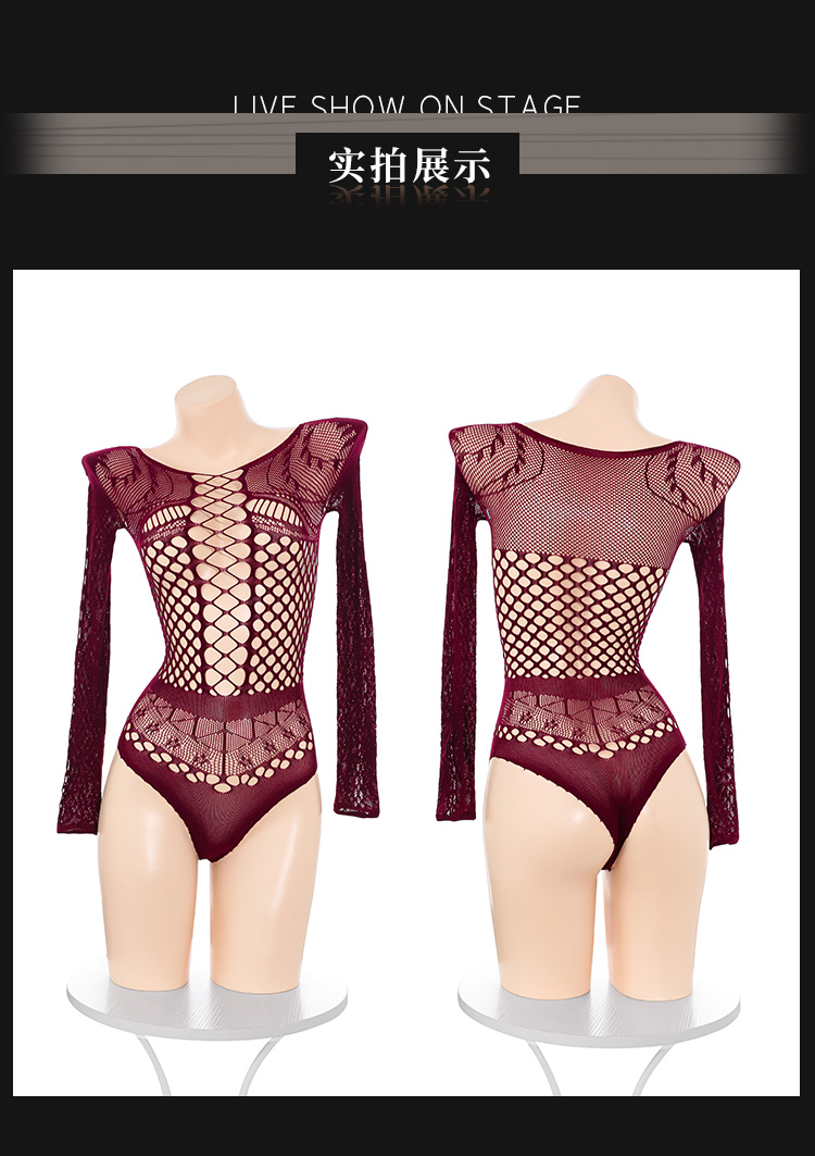 【情趣内衣】霏慕 辣妹风镂空提花连体网衣7565