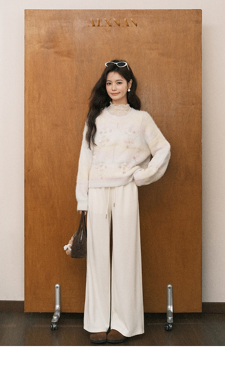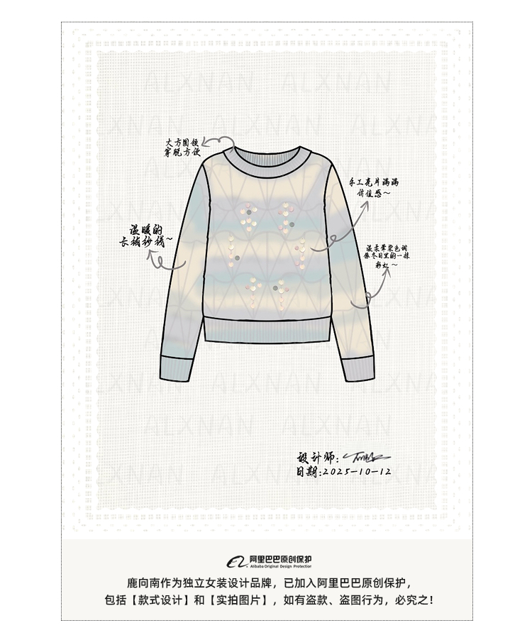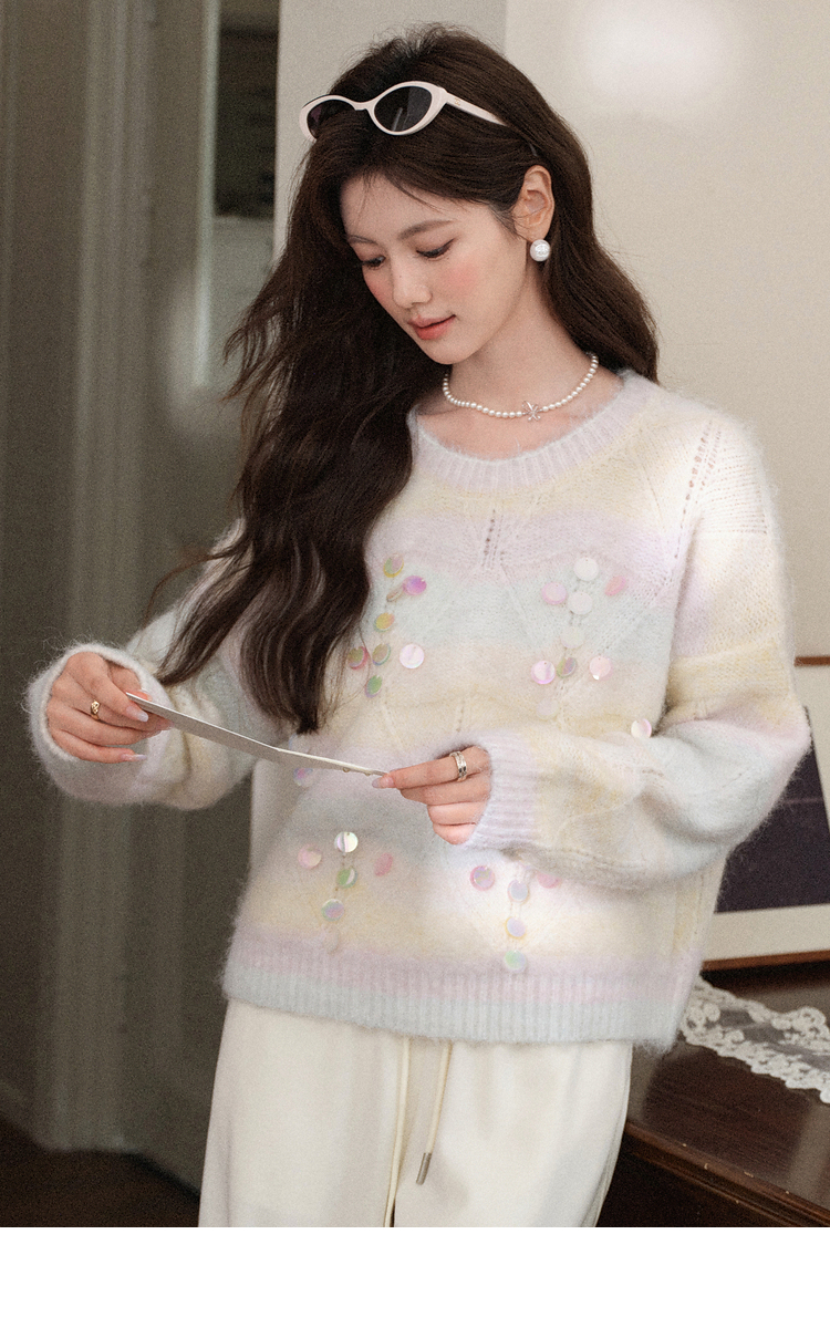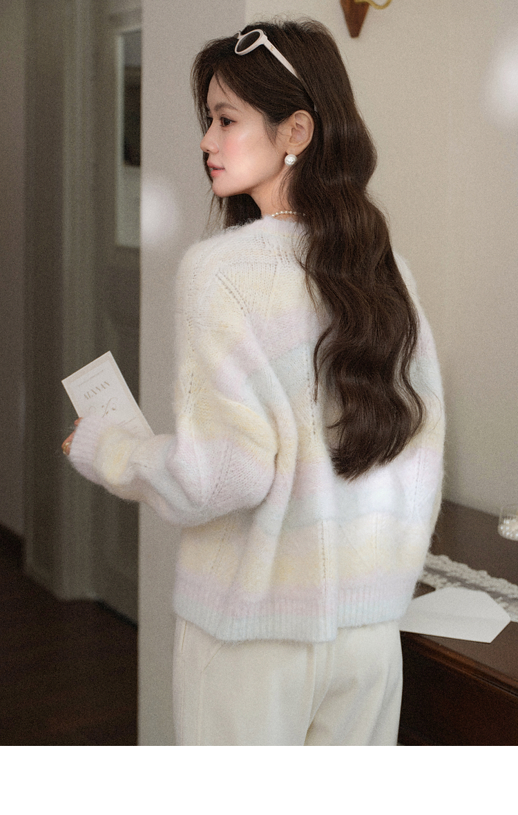 鹿向南「鎏光梦境」彩虹条纹毛衣女秋冬温柔风设计感宽松长袖上衣