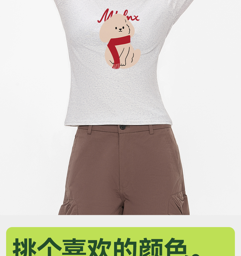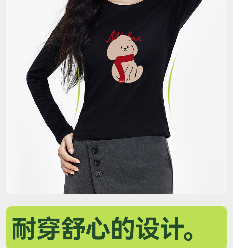 「棉的美学」甜辣风显瘦秋季长袖女圆领T恤小狗印花可爱软糯打底衫
