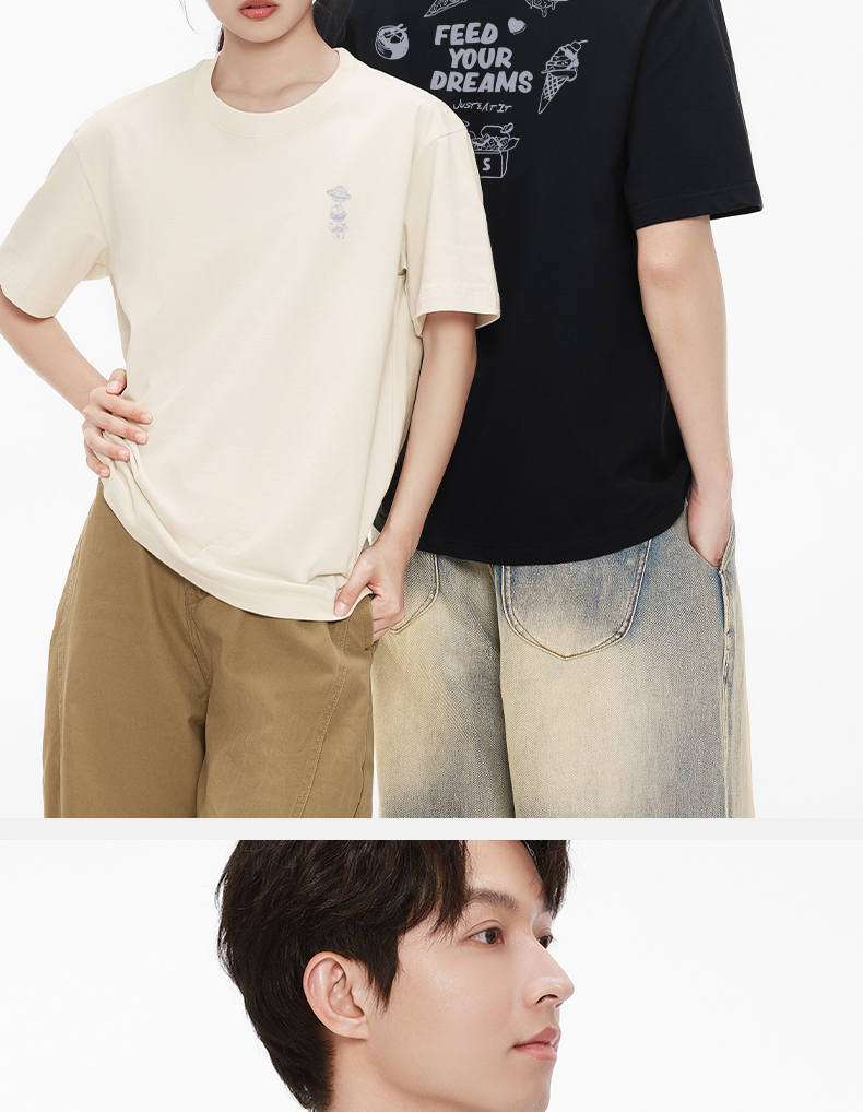 「棉的美学」白色短袖t恤女纯棉2025新款夏季卡通印花宽松上衣潮
