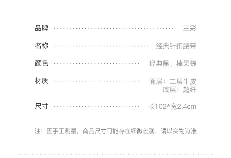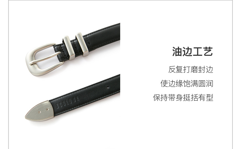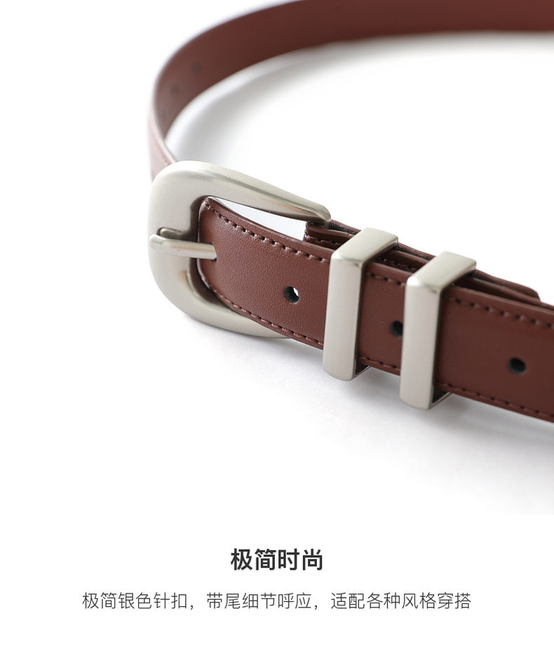 三彩2025新款窄版皮腰带利落简约银色针扣皮带二层牛皮时尚女百搭