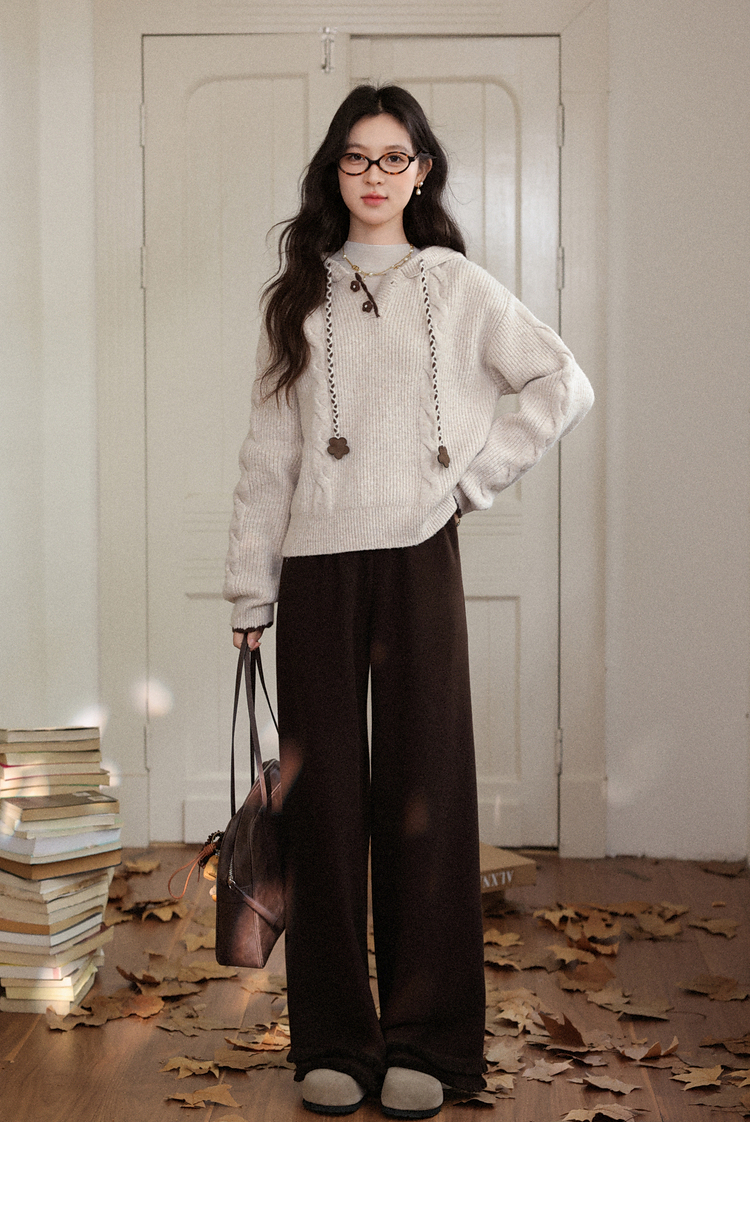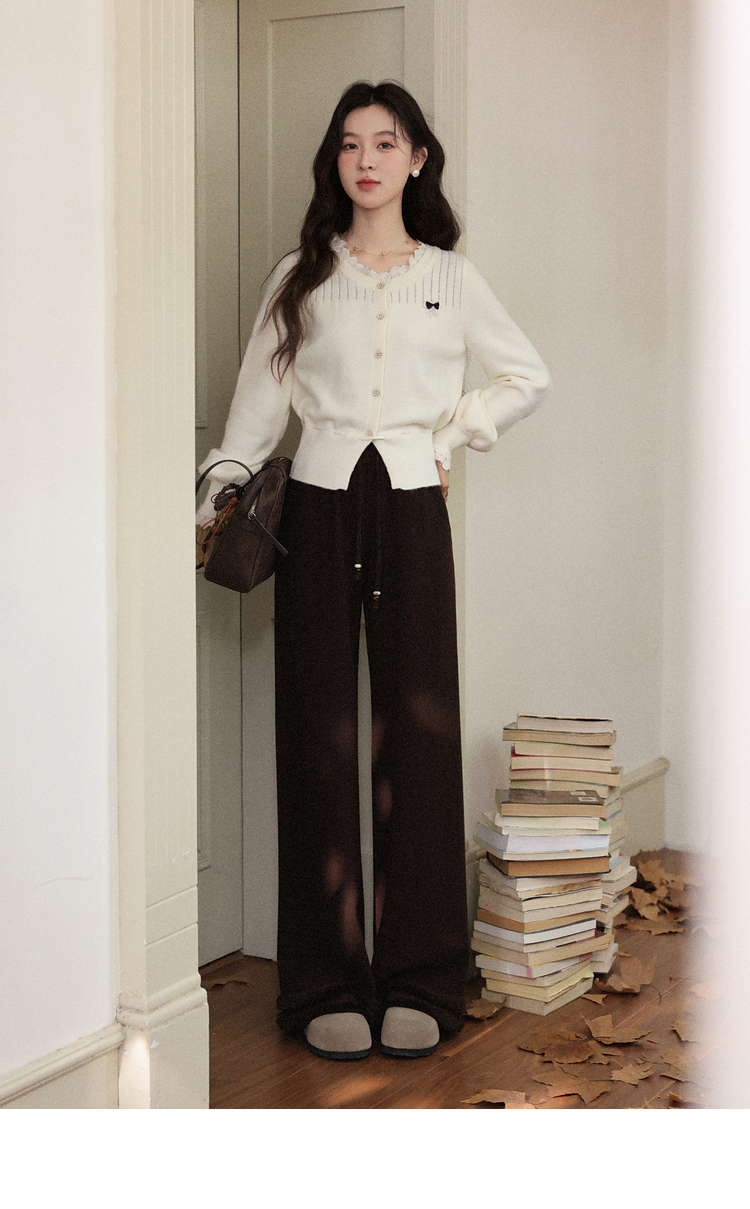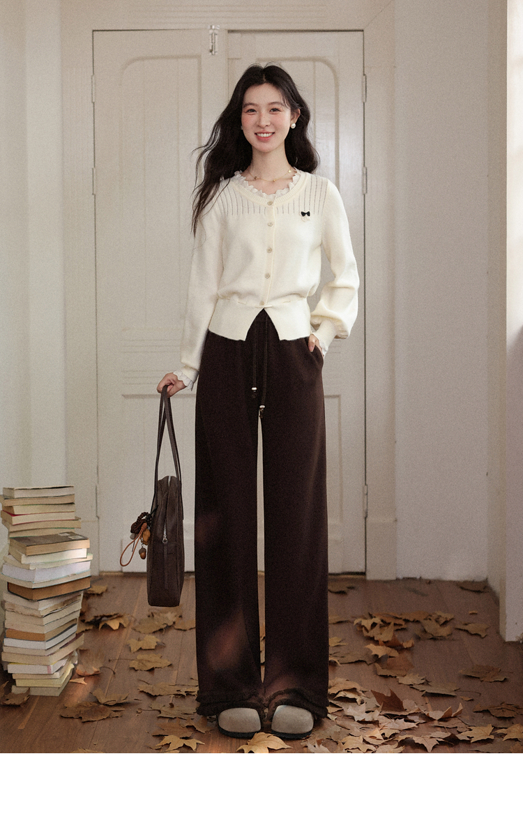 鹿向南「瘦瘦裤」慵懒风咖色高腰休闲裤女秋季直筒宽松显瘦长裤子