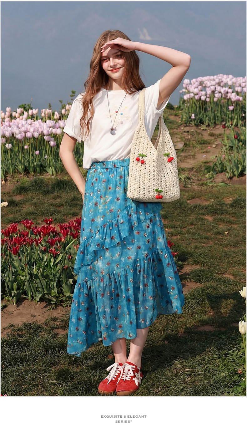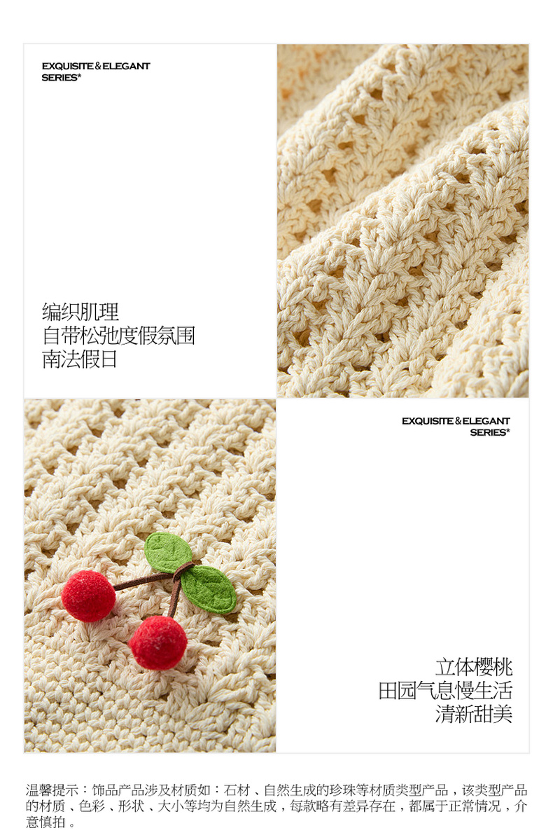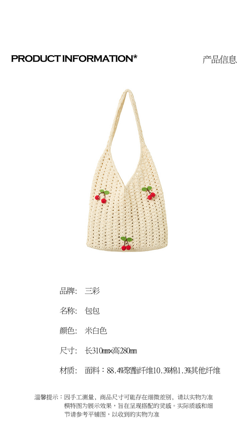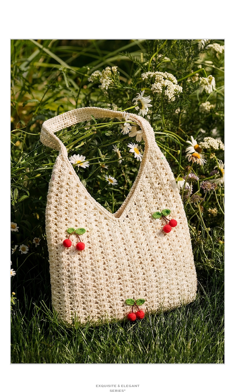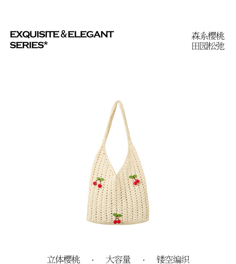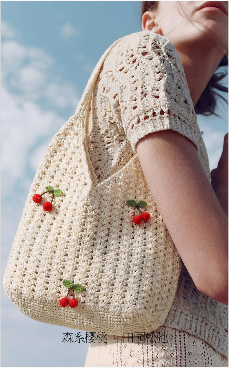 三彩2026新款单肩手提大容量包包通勤小众编织樱桃田园森系甜美女