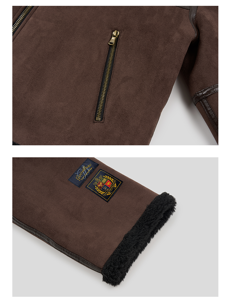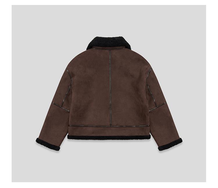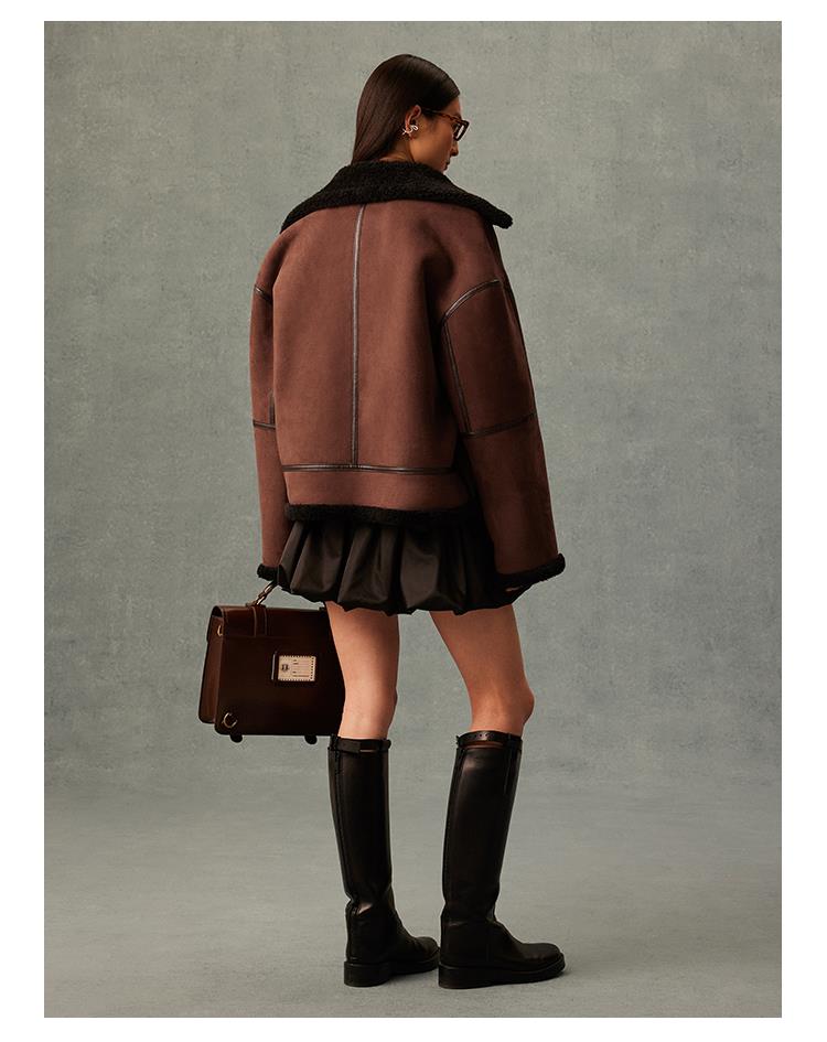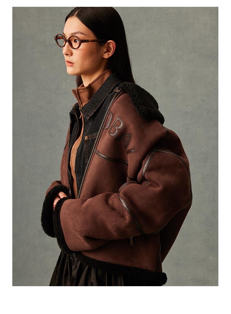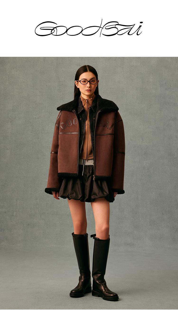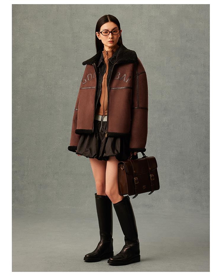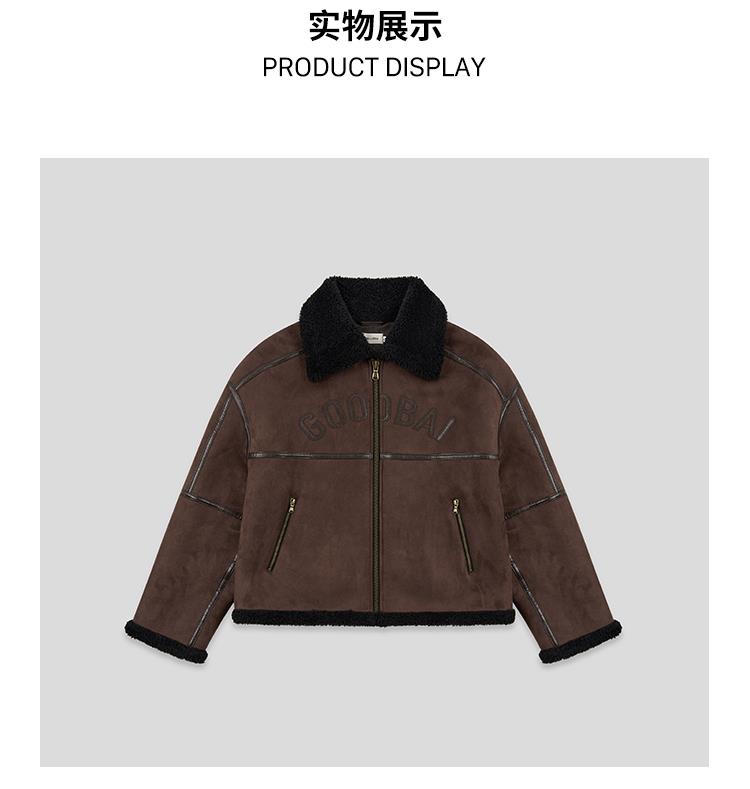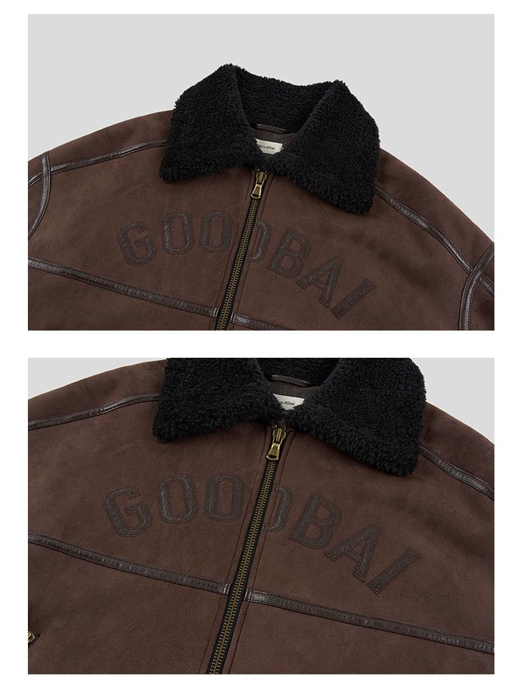 GOODBAI logo贴布绣带毛翻领oversize加厚外套