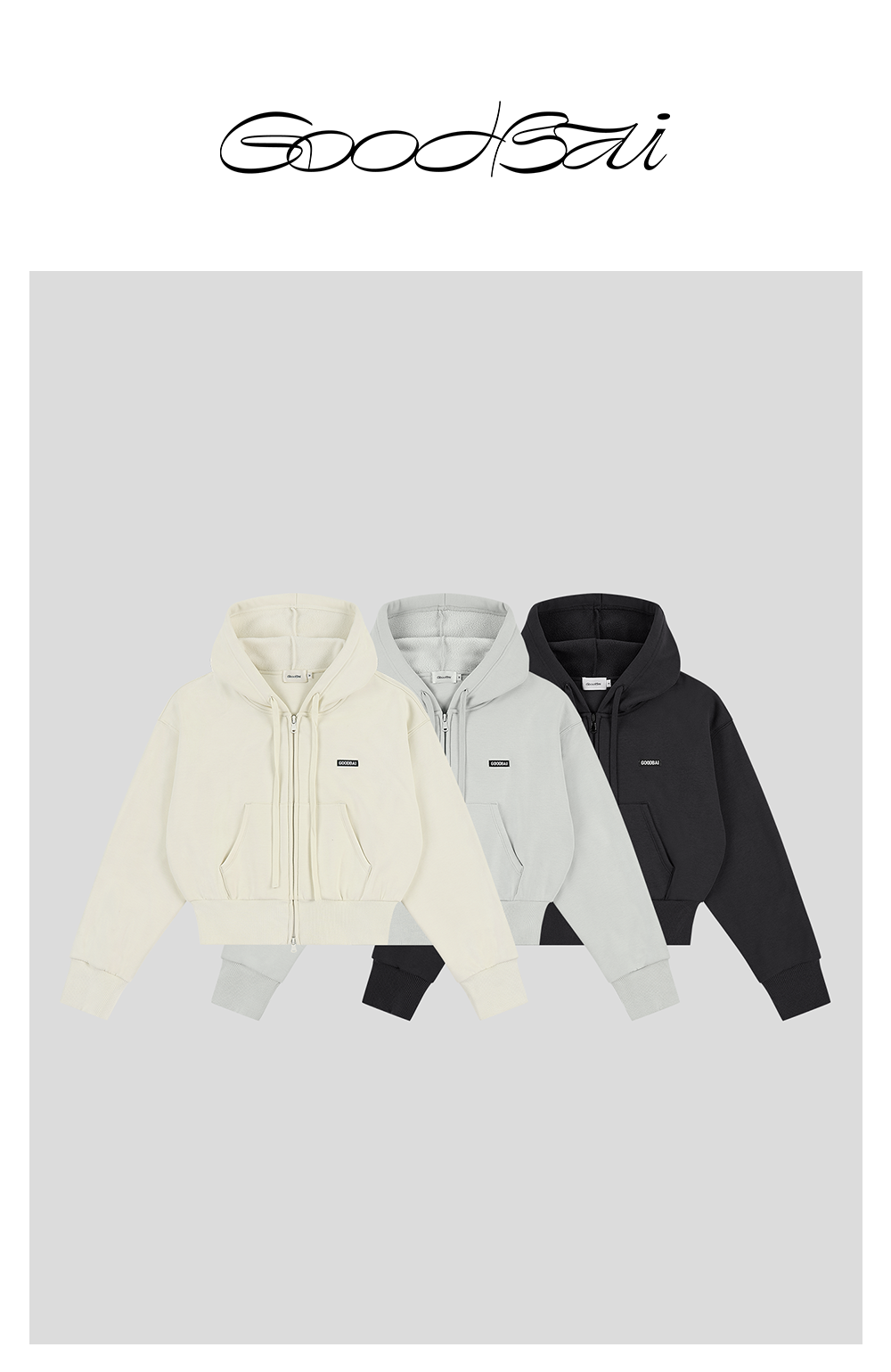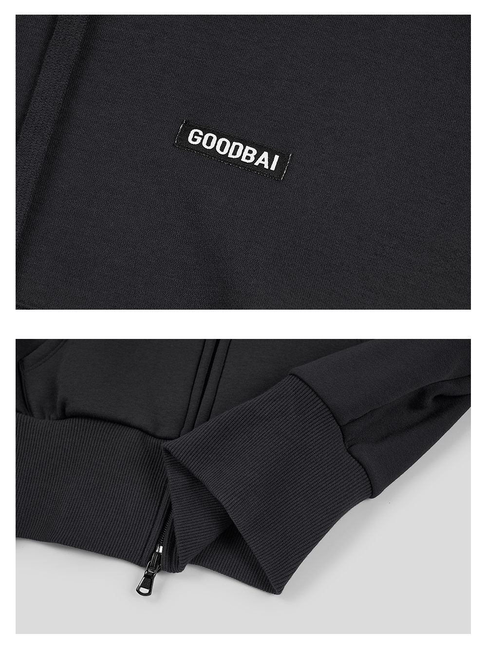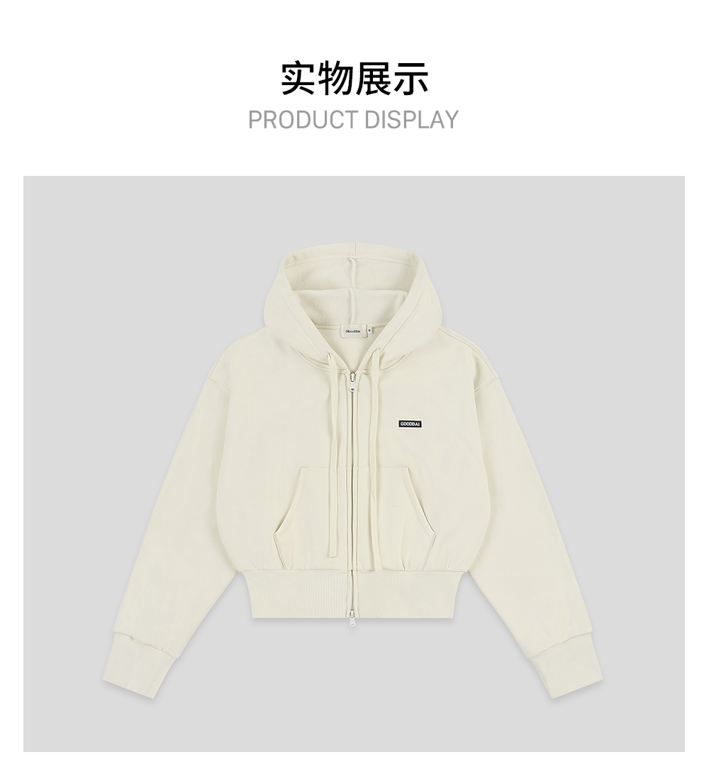 GOODBAI logo织唛连帽抽绳收腰拉链长袖卫衣