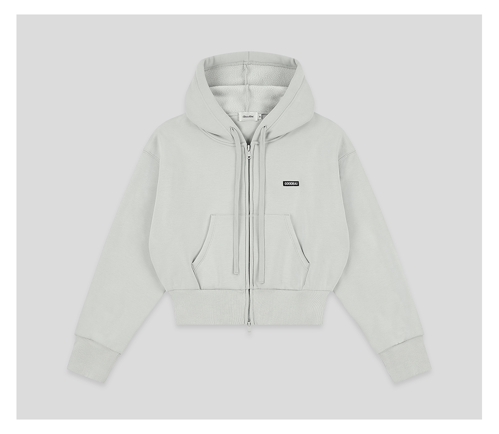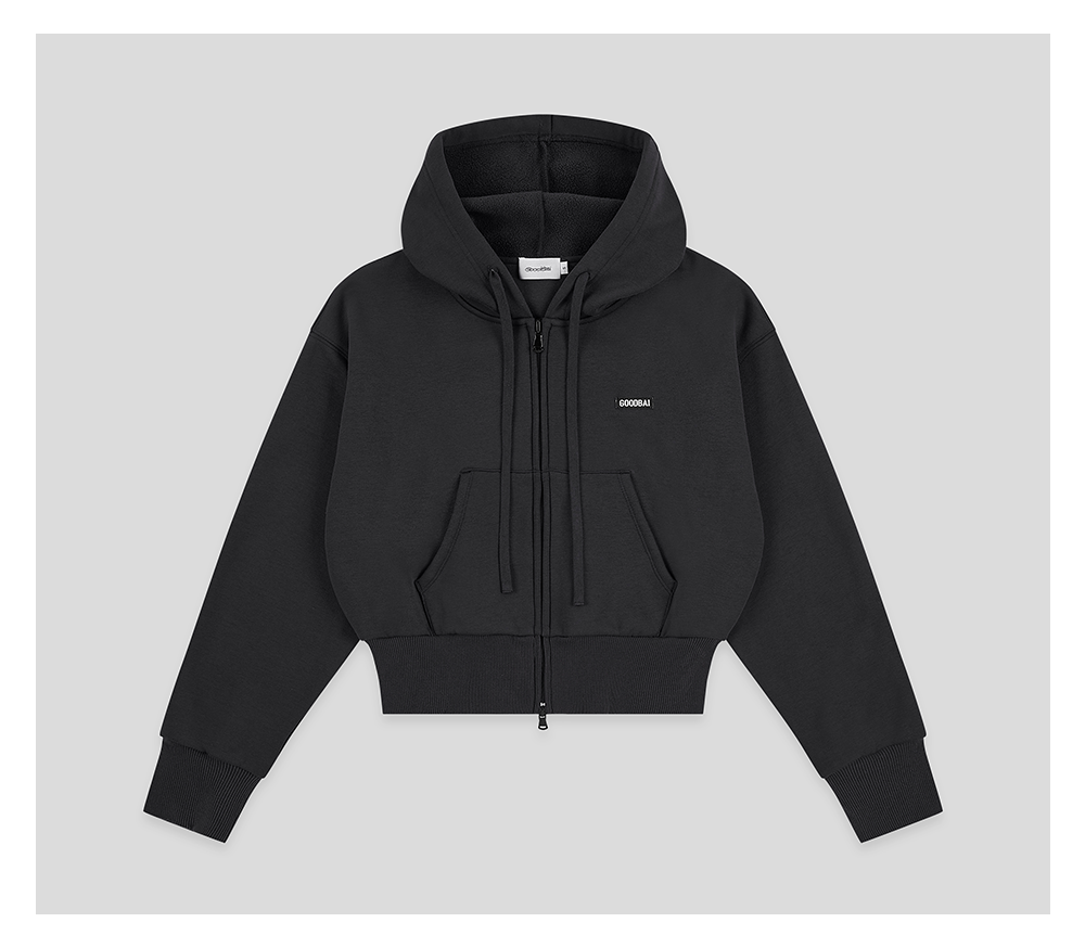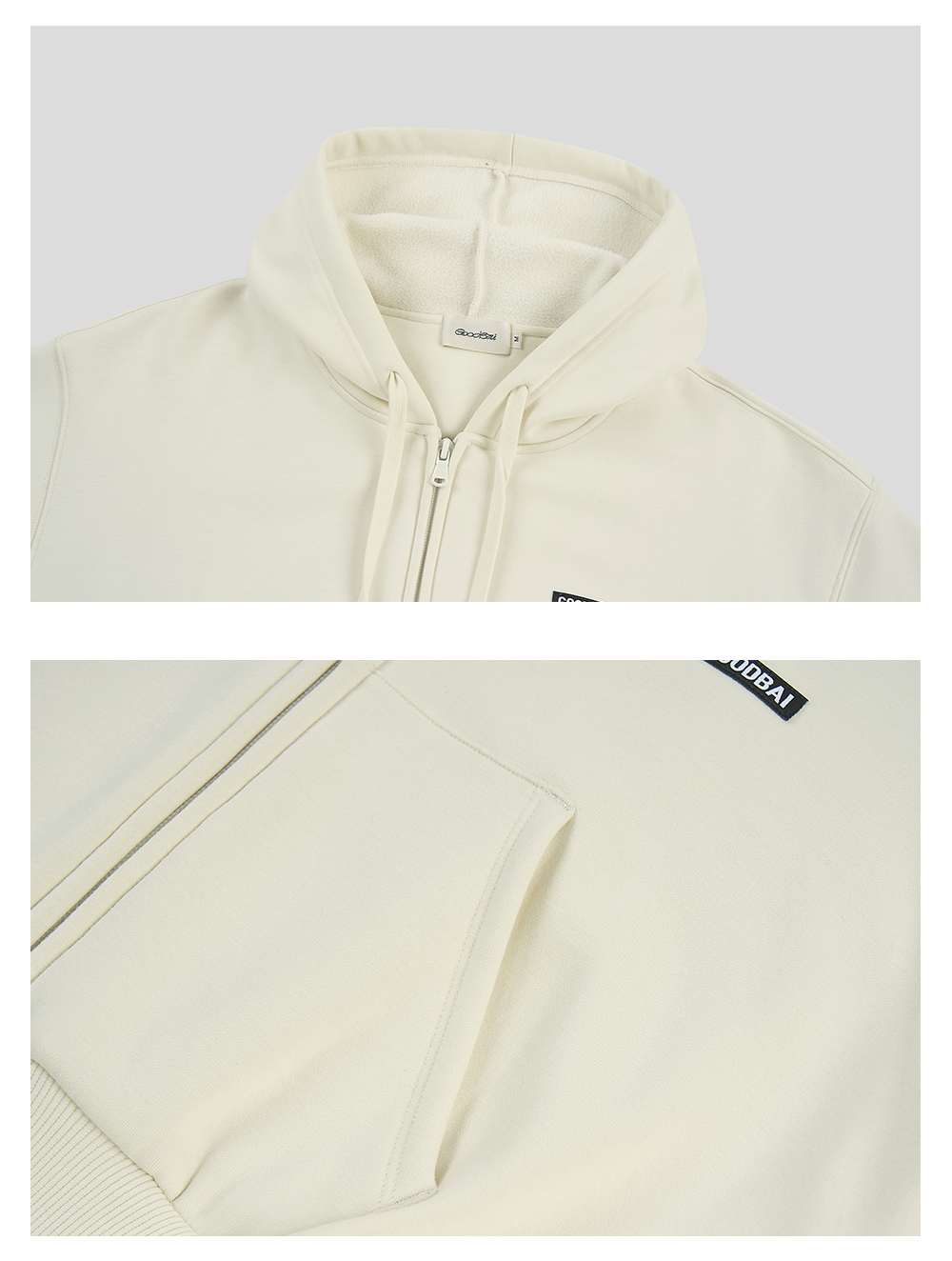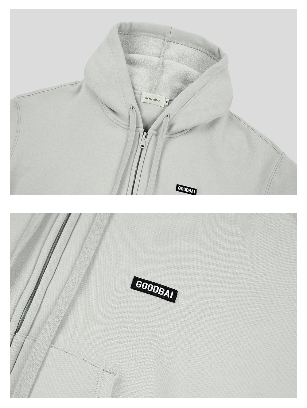 GOODBAI logo织唛连帽抽绳收腰拉链长袖卫衣