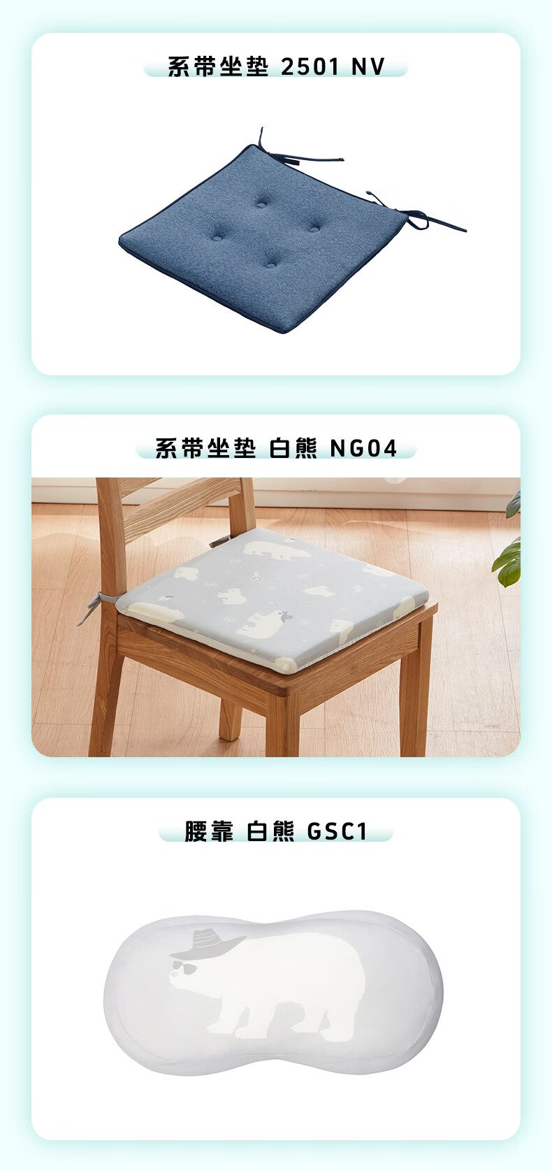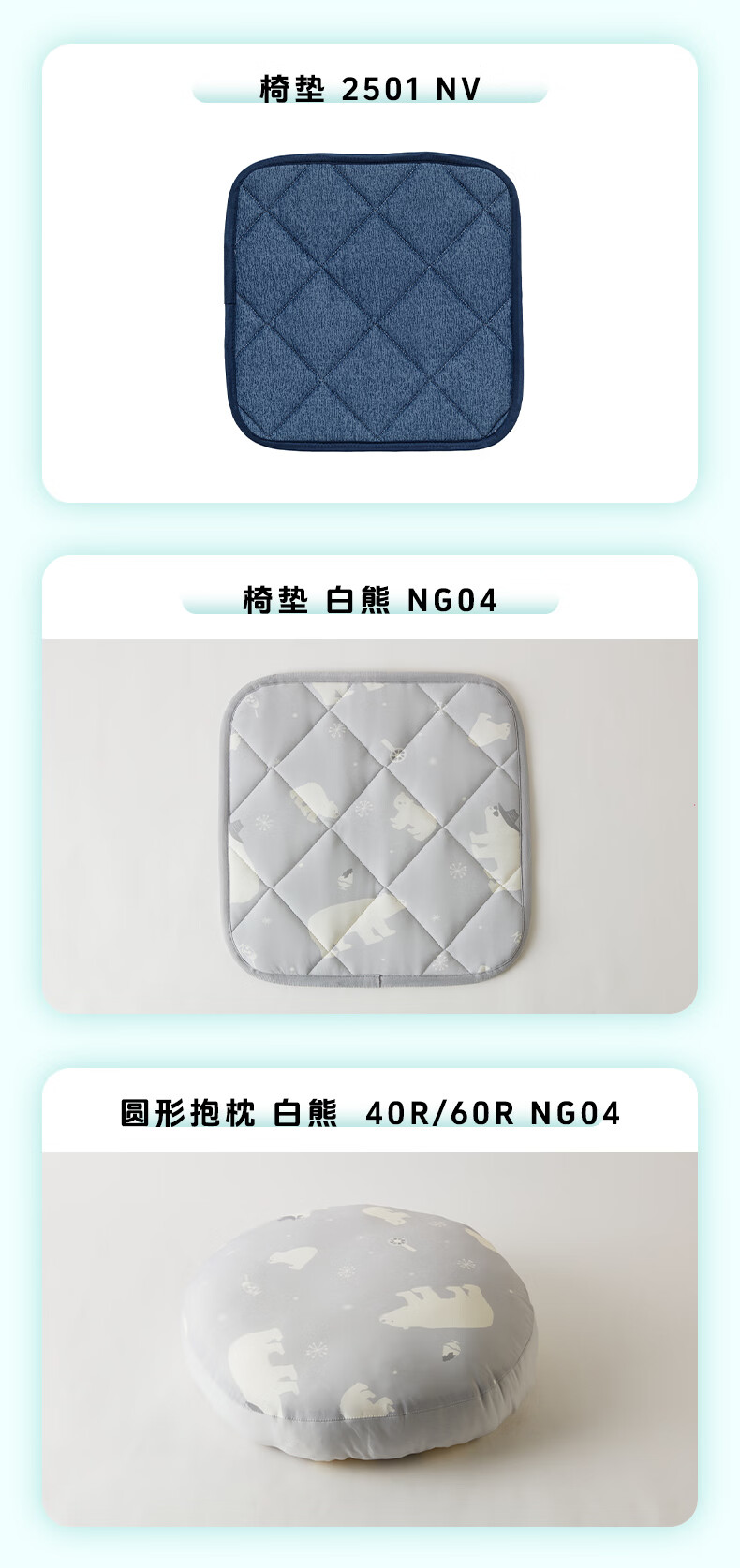 强冷感系带坐垫 /椅垫/长坐垫/带枕头午睡垫/圆形抱枕/腰靠 蓝色/白熊