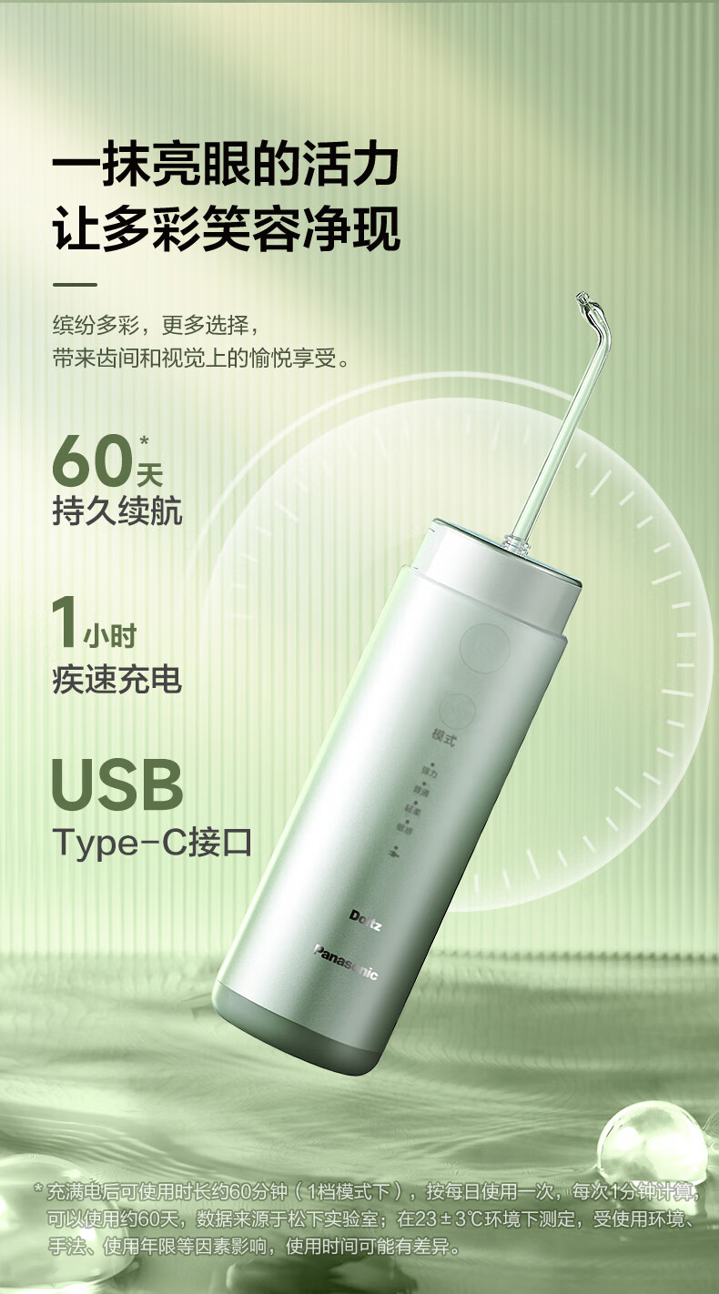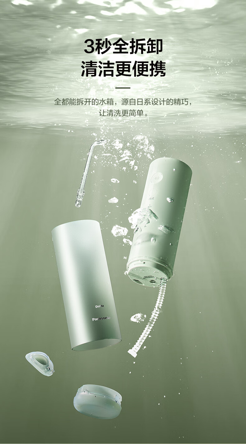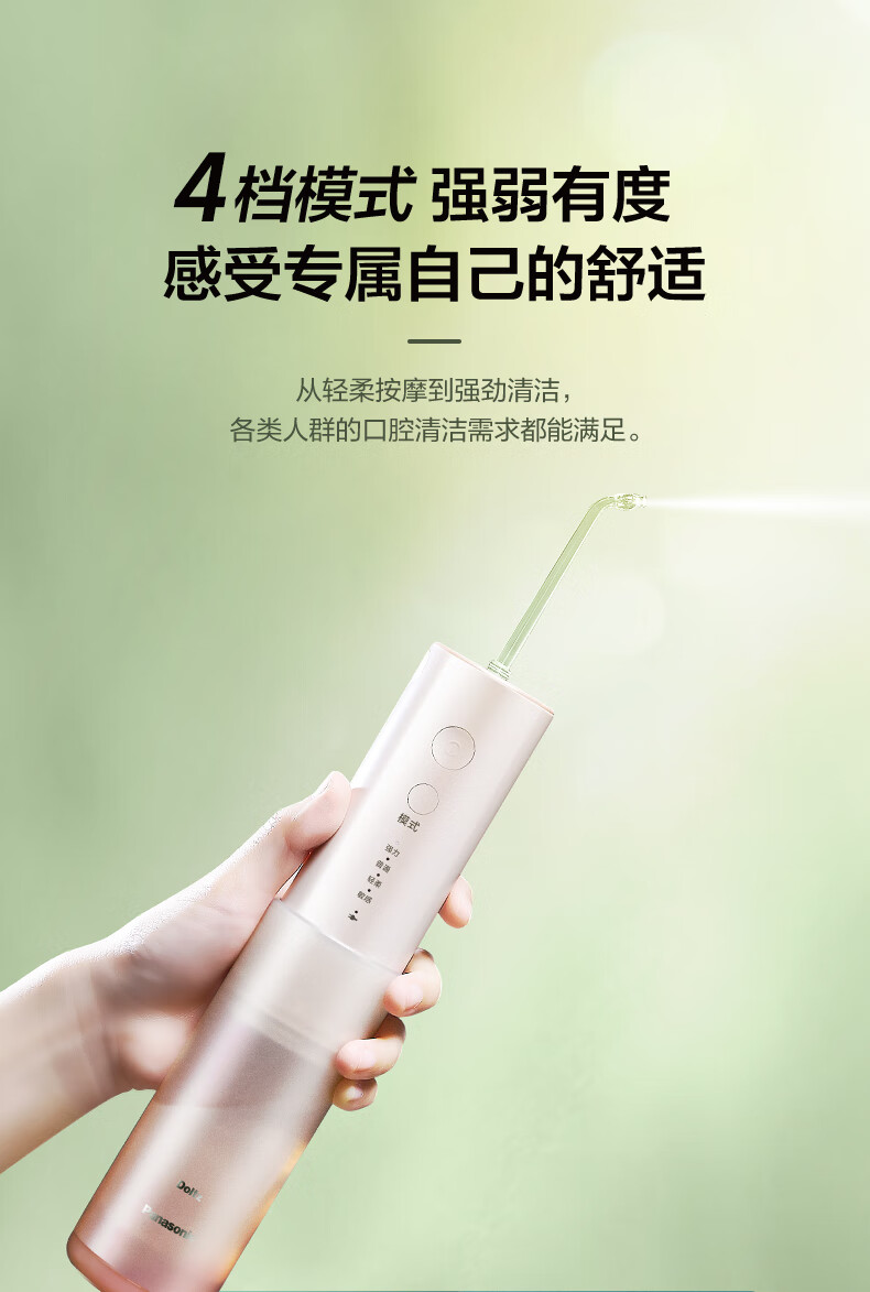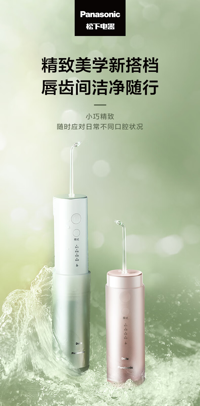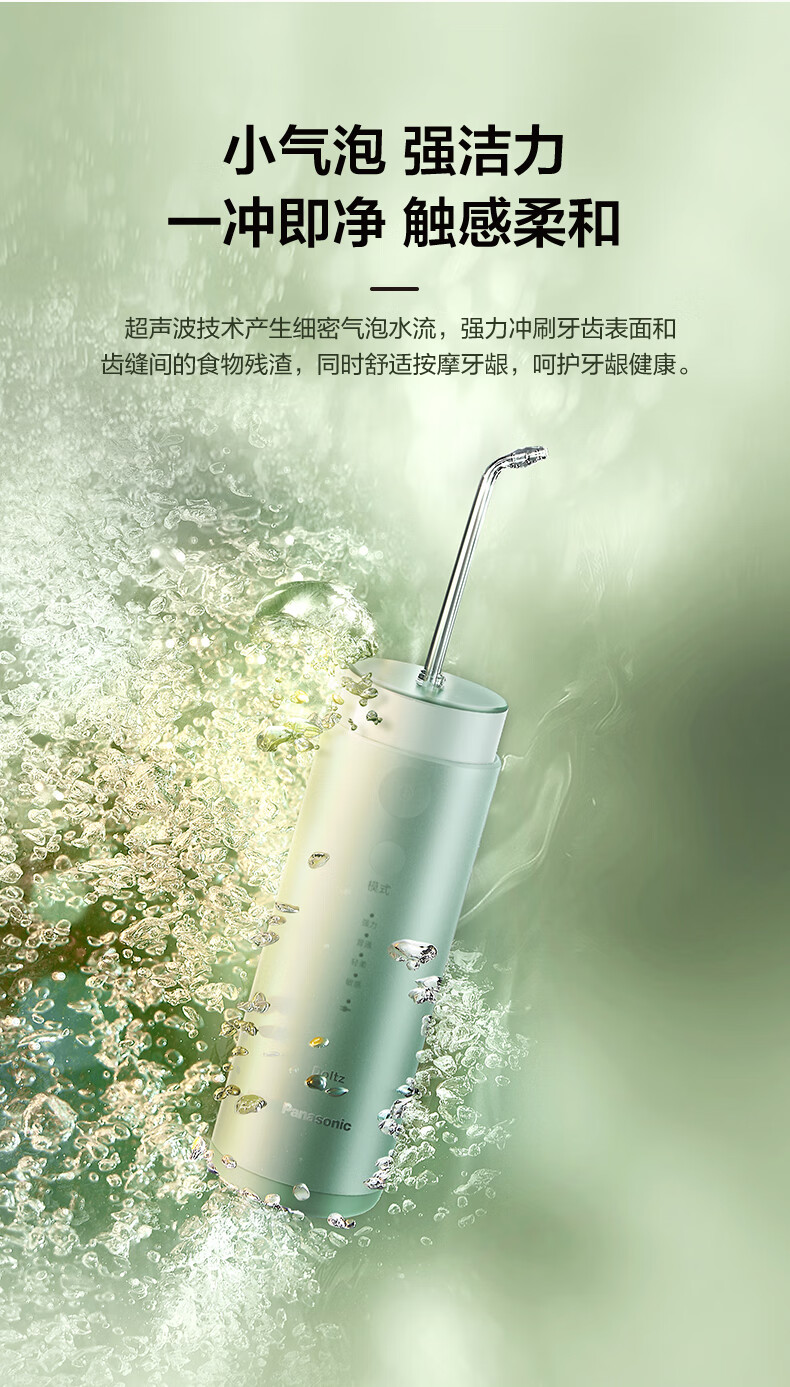 松下(Panasonic)冲牙器洗牙器水牙线超声波洁牙器小巧便携式牙齿冲洗器生日礼物送男友送女友DJ43绿粉_qb