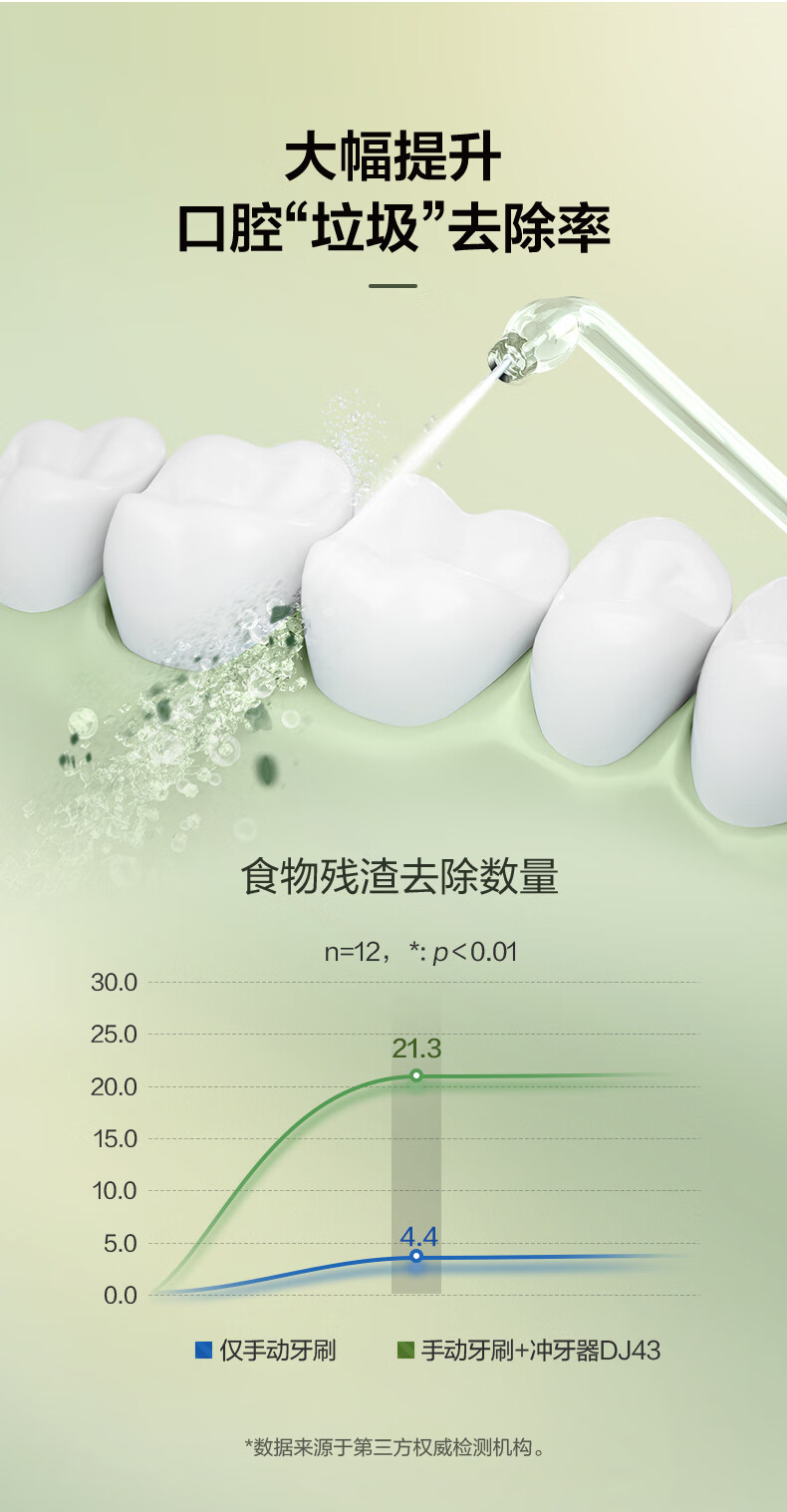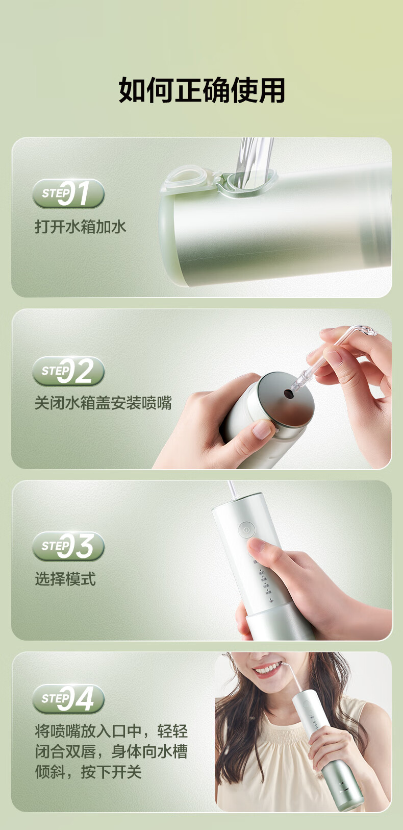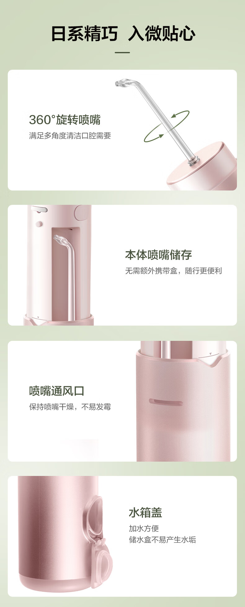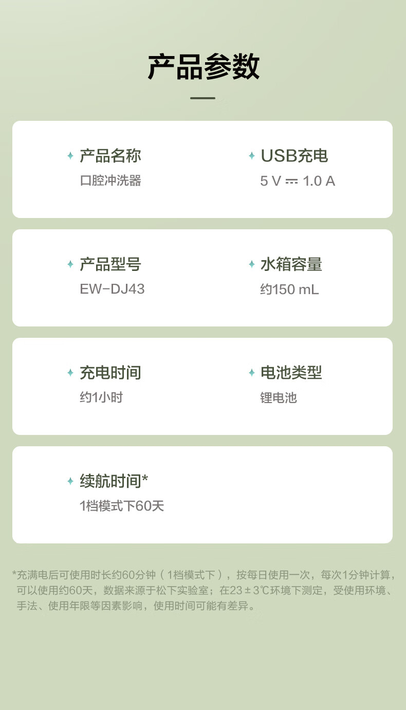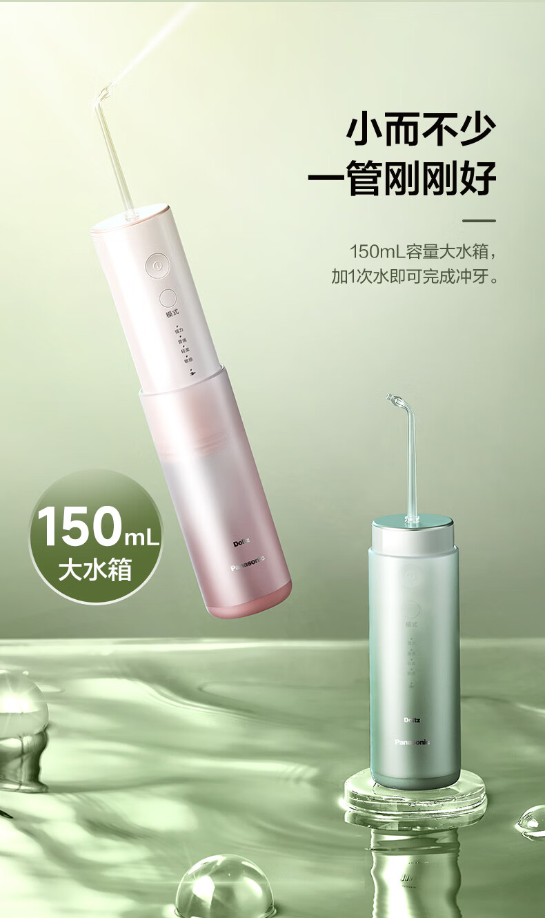 松下(Panasonic)冲牙器洗牙器水牙线超声波洁牙器小巧便携式牙齿冲洗器生日礼物送男友送女友DJ43绿粉_qb