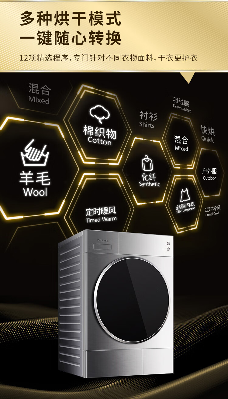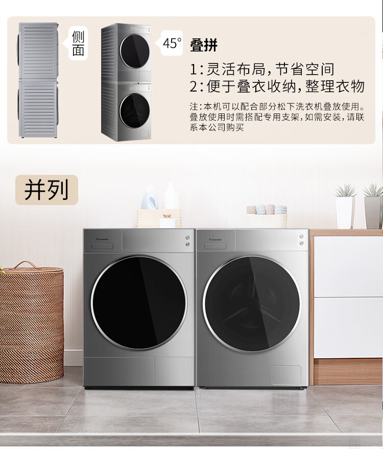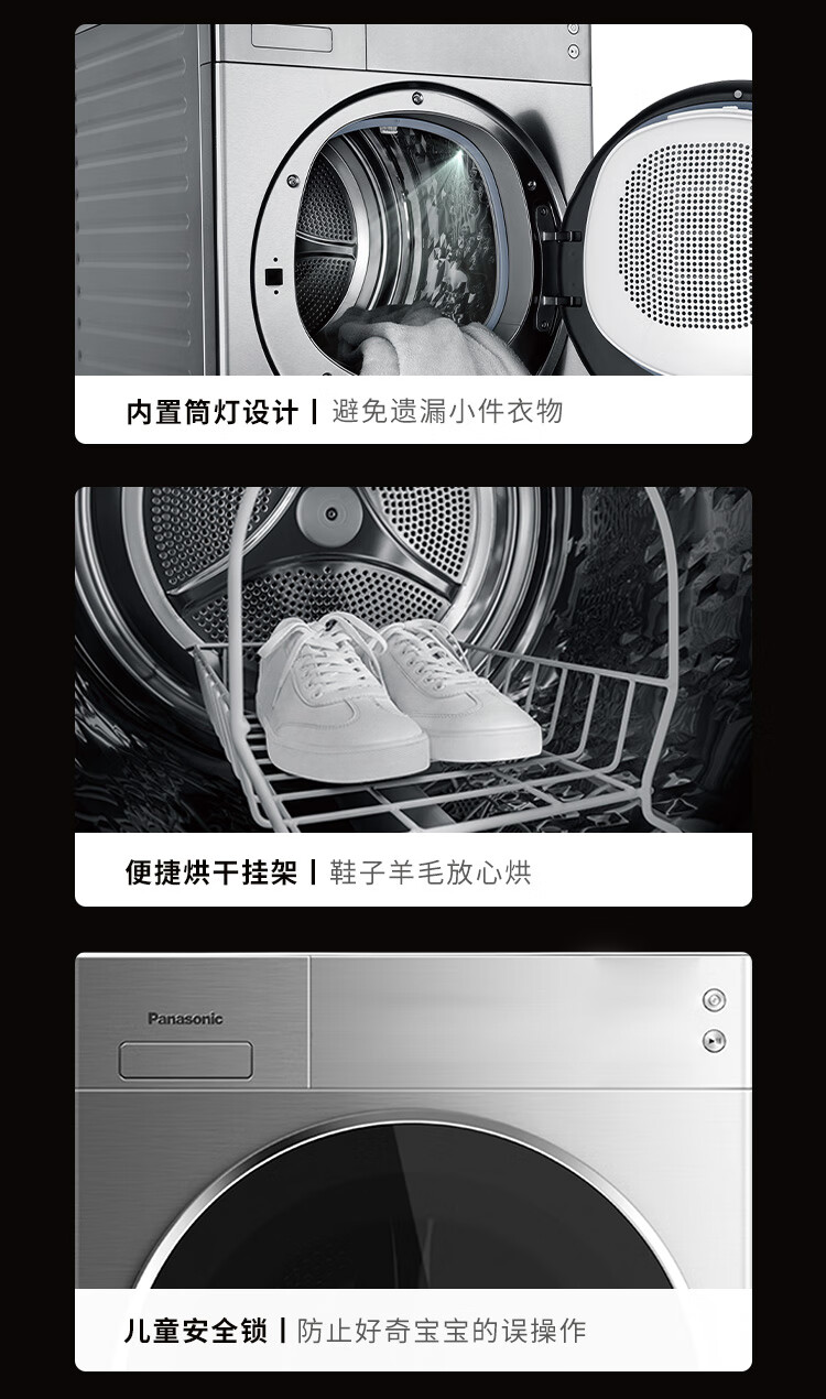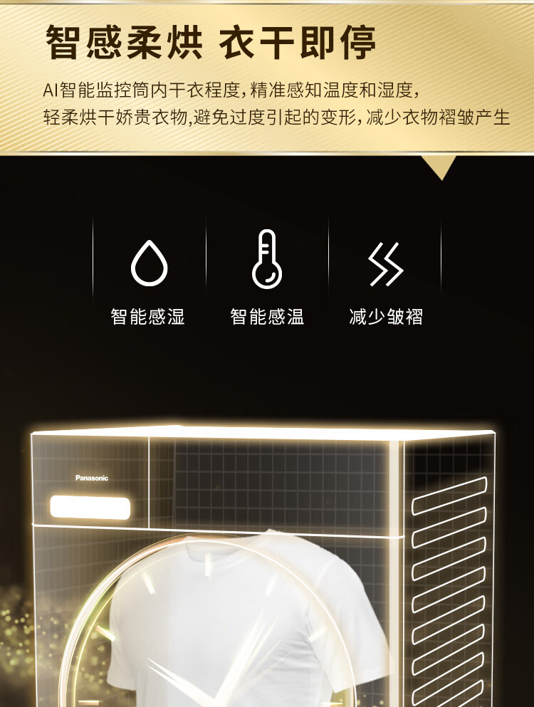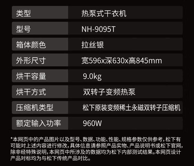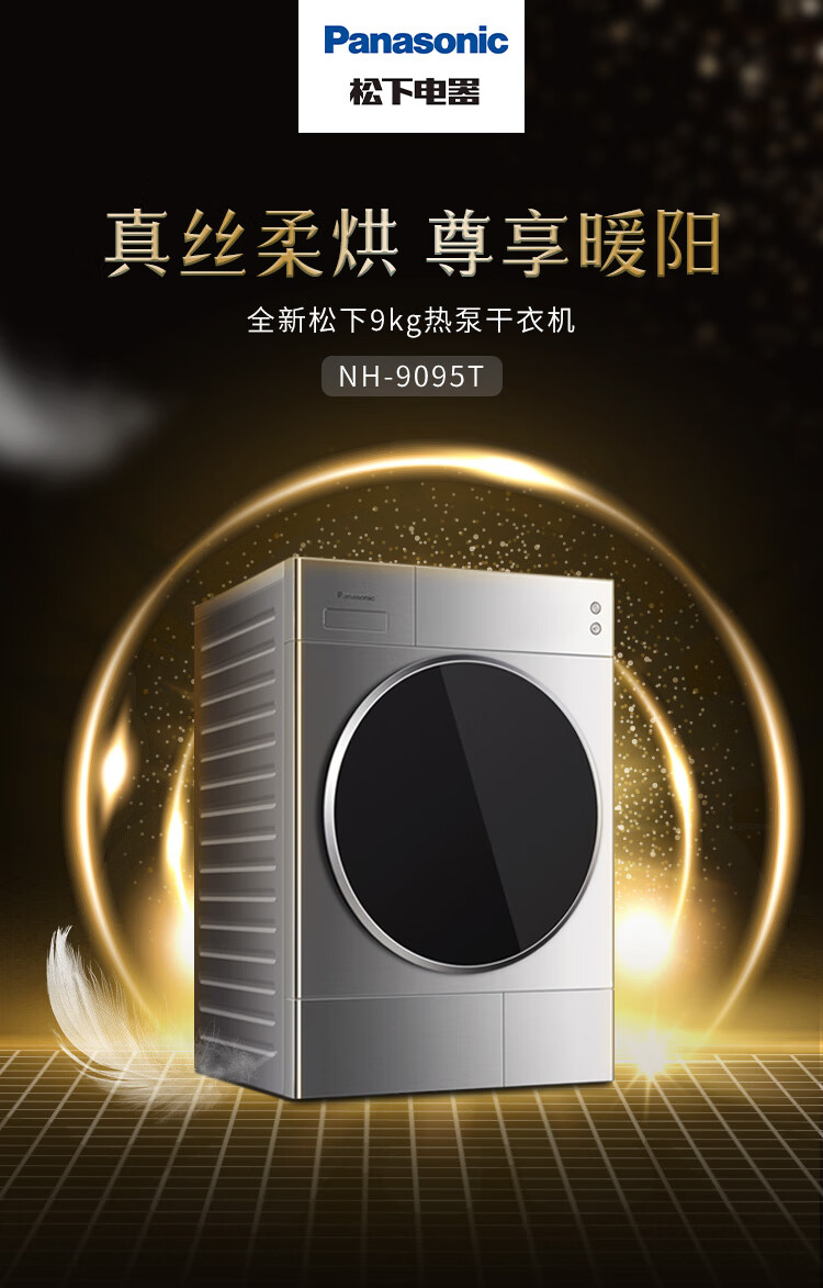 松下(Panasonic)烘干机9公斤热泵干衣机 低温烘干 节能大容量 原装双转子压缩机 即干即穿 NH-9095D[9KG热泵干衣机]