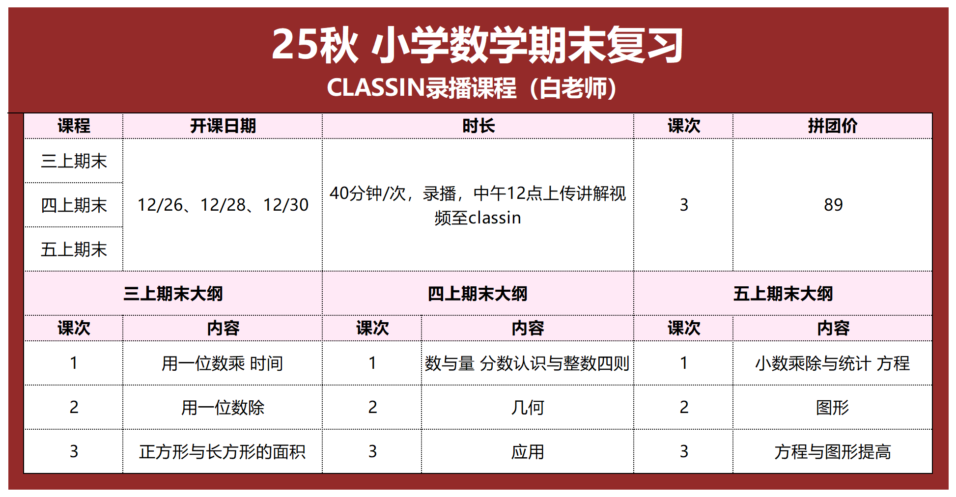 录播课,老师会在12月26日、12月28日、12月30日 中午12点左右上传录播讲解视频,视频时长40分钟,学生可自行安排时间上classin观看并做题。