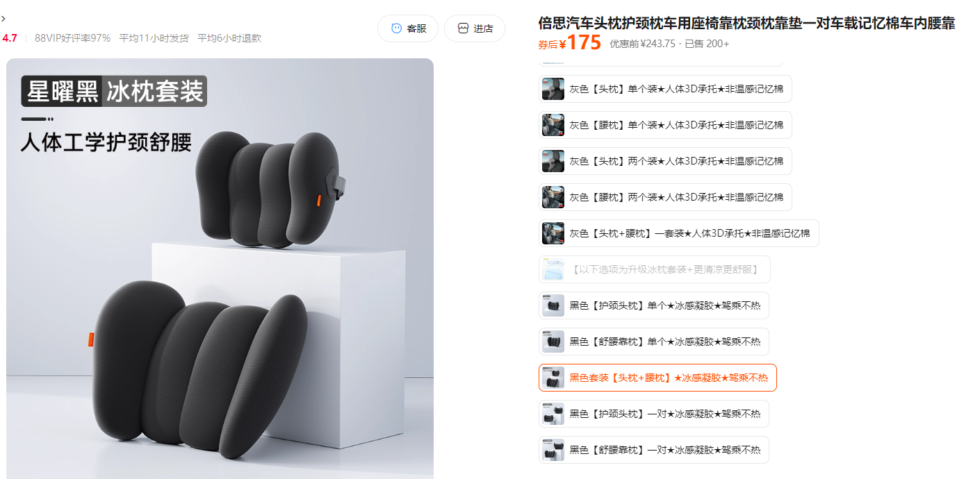 倍思 BASEUS悬浮仓 腰枕+头枕冰枕套装 缓慢回弹太空记忆棉