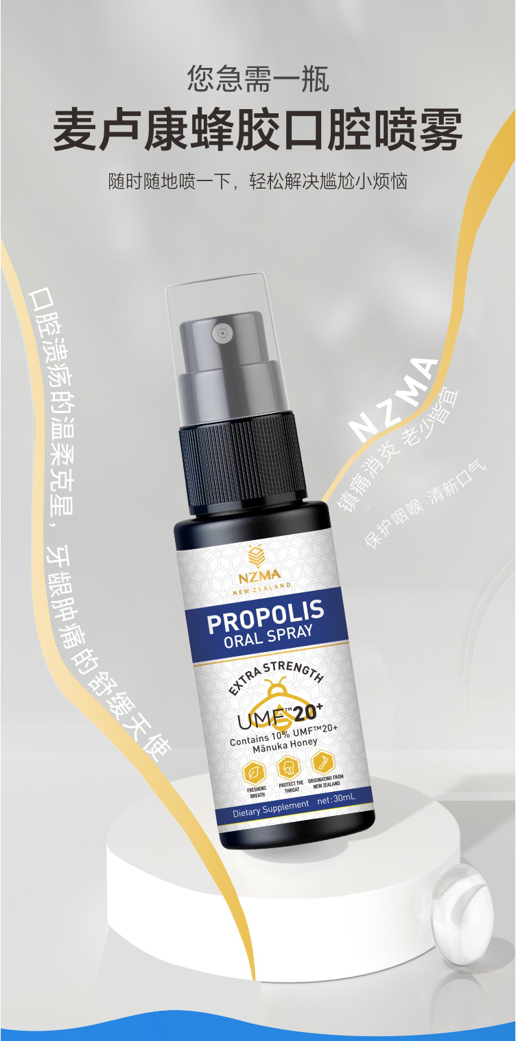 【天然蜂胶】麦卢康 麦卢卡口喷 30ml/瓶 精巧瓶身便携耐用