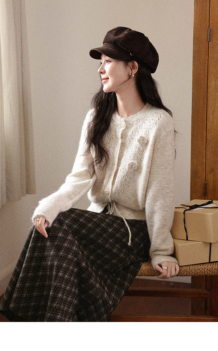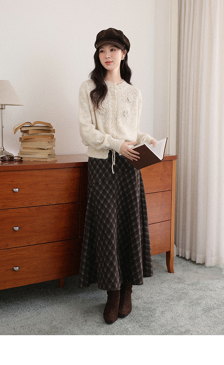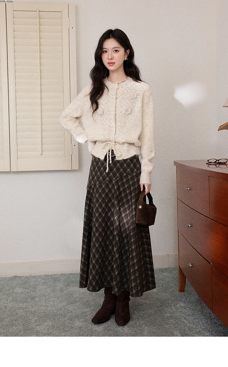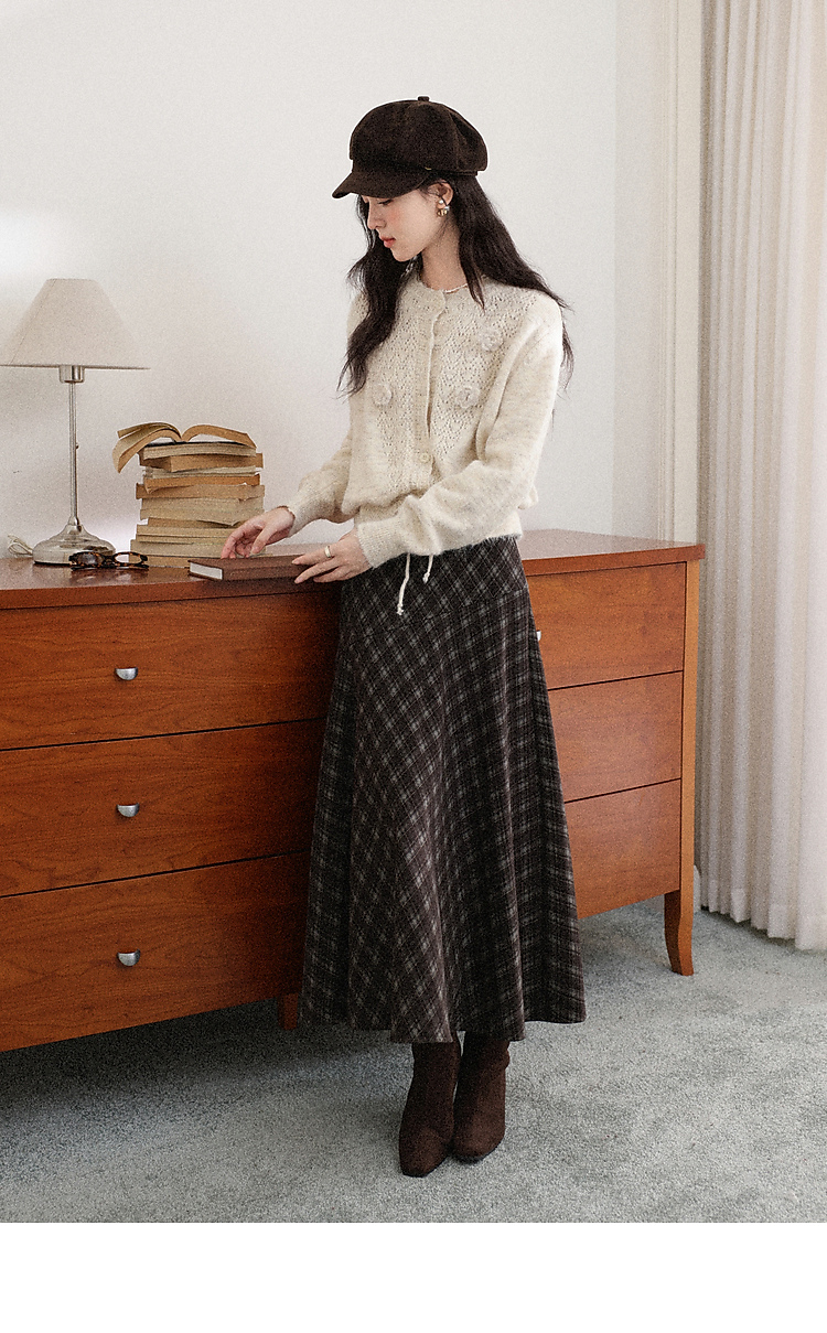 鹿向南「巴尔罗岛」咖色复古格纹a字半身裙女秋冬小个子高腰长裙