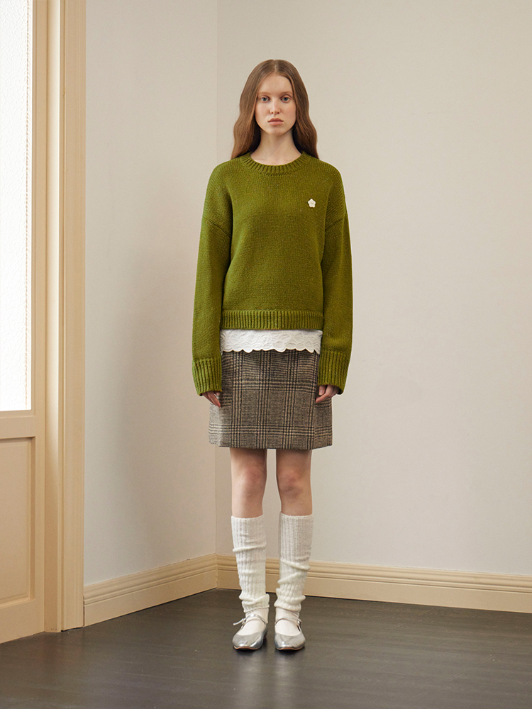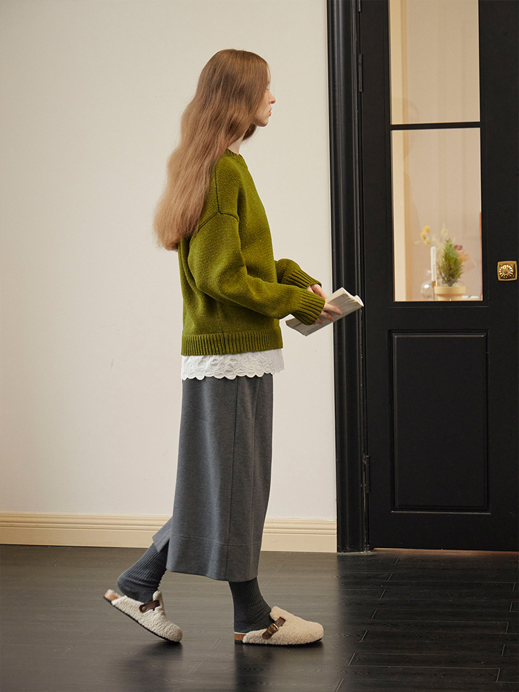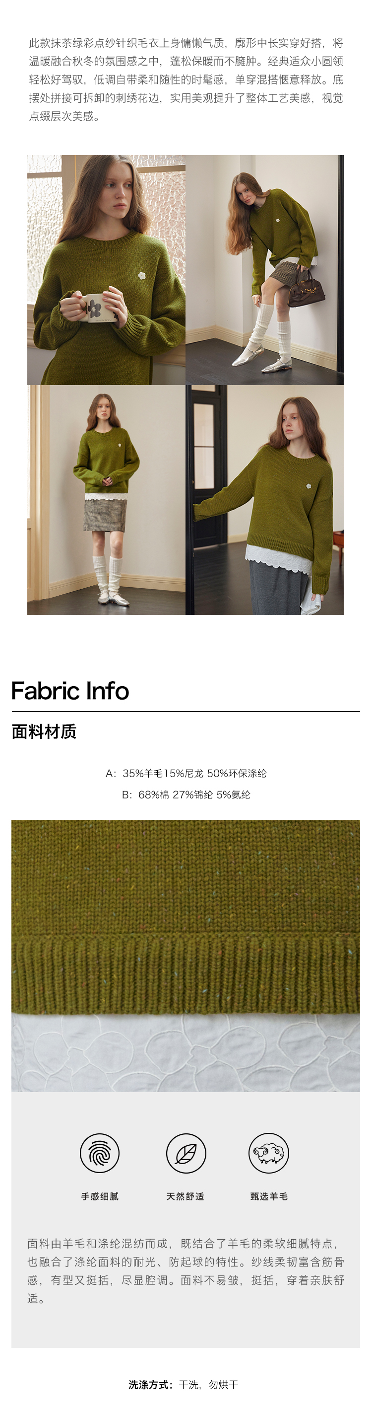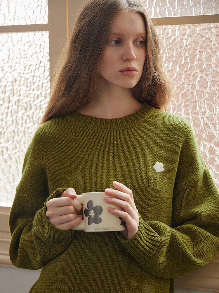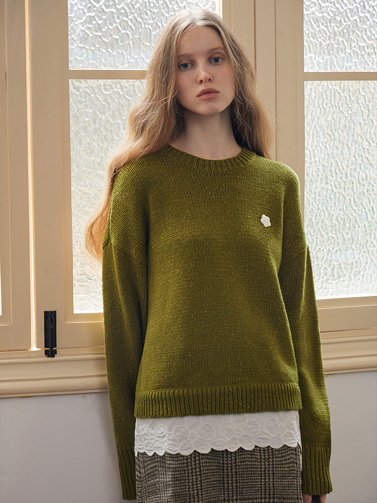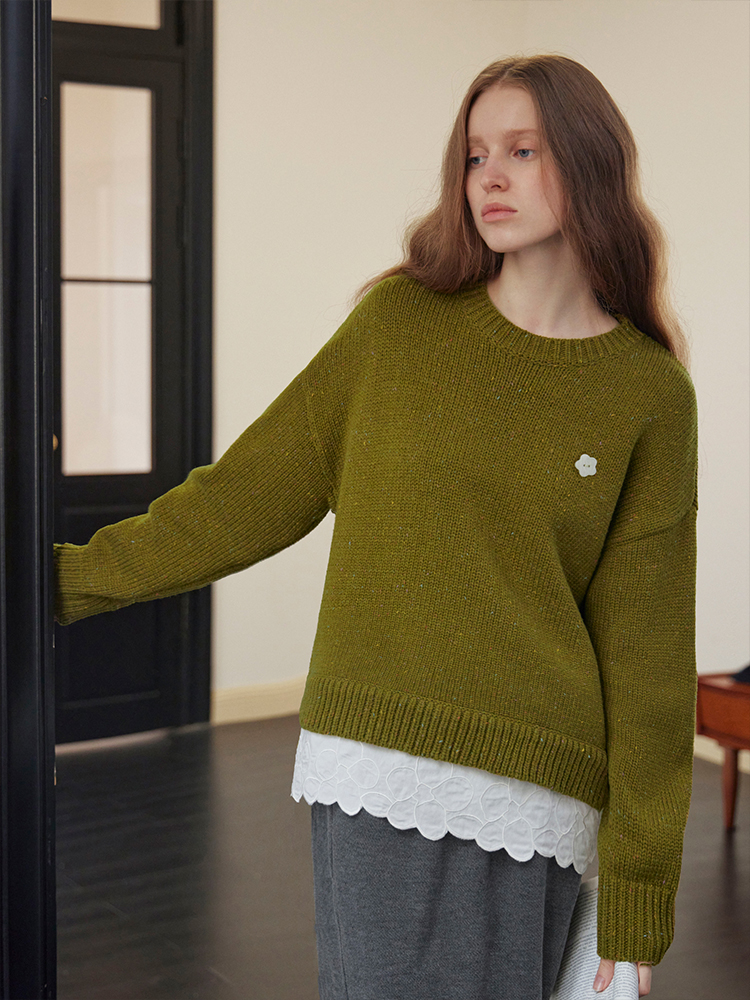 ForPoem 现货 24/FW原创设计羊毛彩点花纱宽松可拆卸刺绣花边拼接毛衣