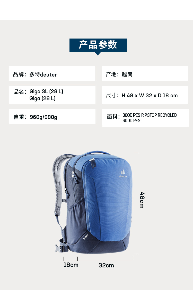 德国多特Deuter进口GIGA奇特防水商务电脑通勤包多功能校园背包
