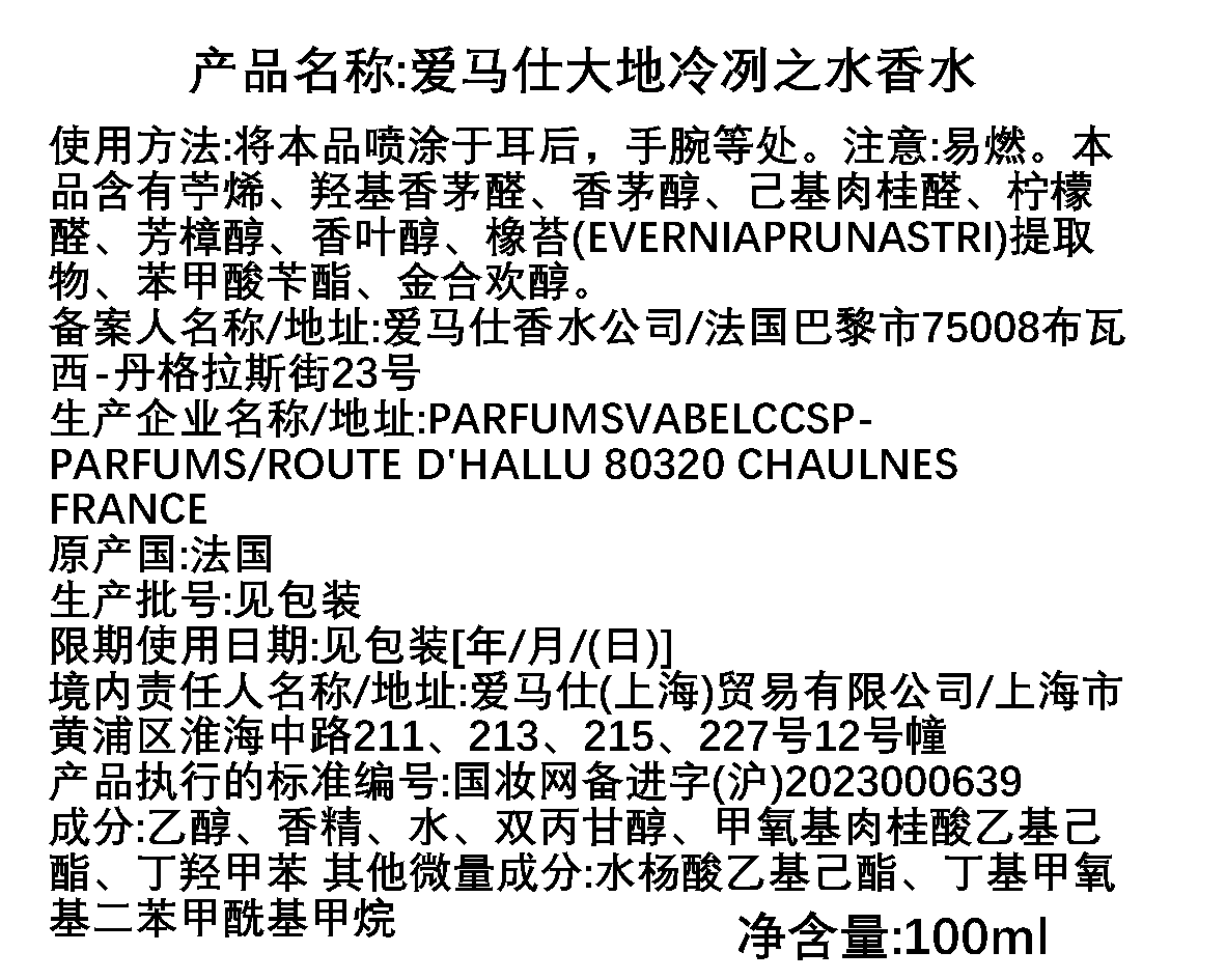 Hermes爱马仕 大地泠洌之水/霜冻大地香水
