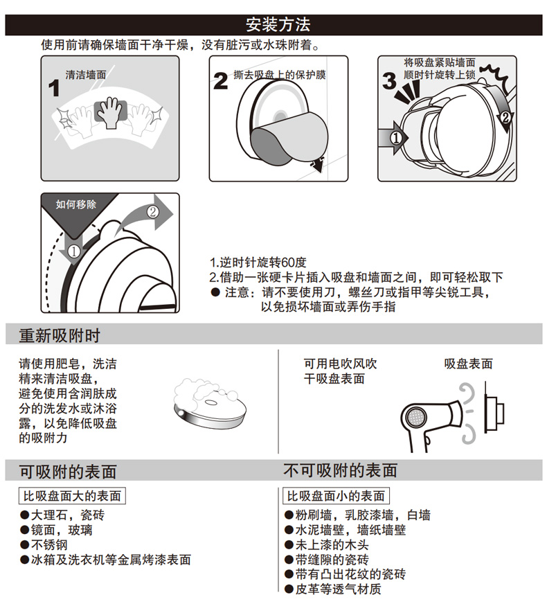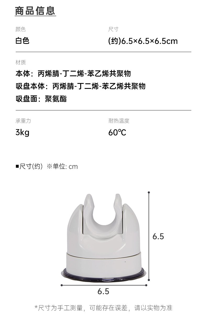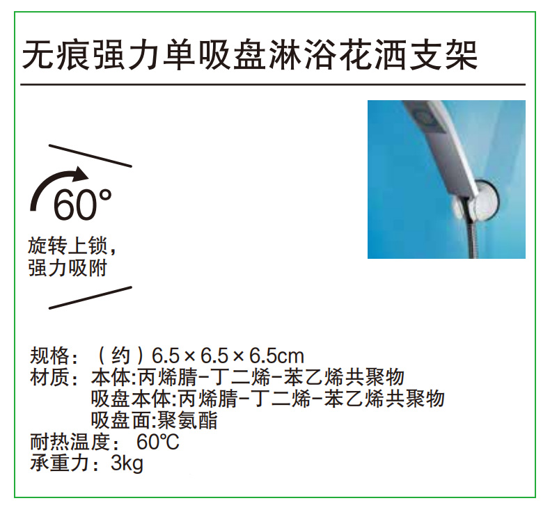 无痕强力单吸盘淋浴花洒支架SHT60-WH60