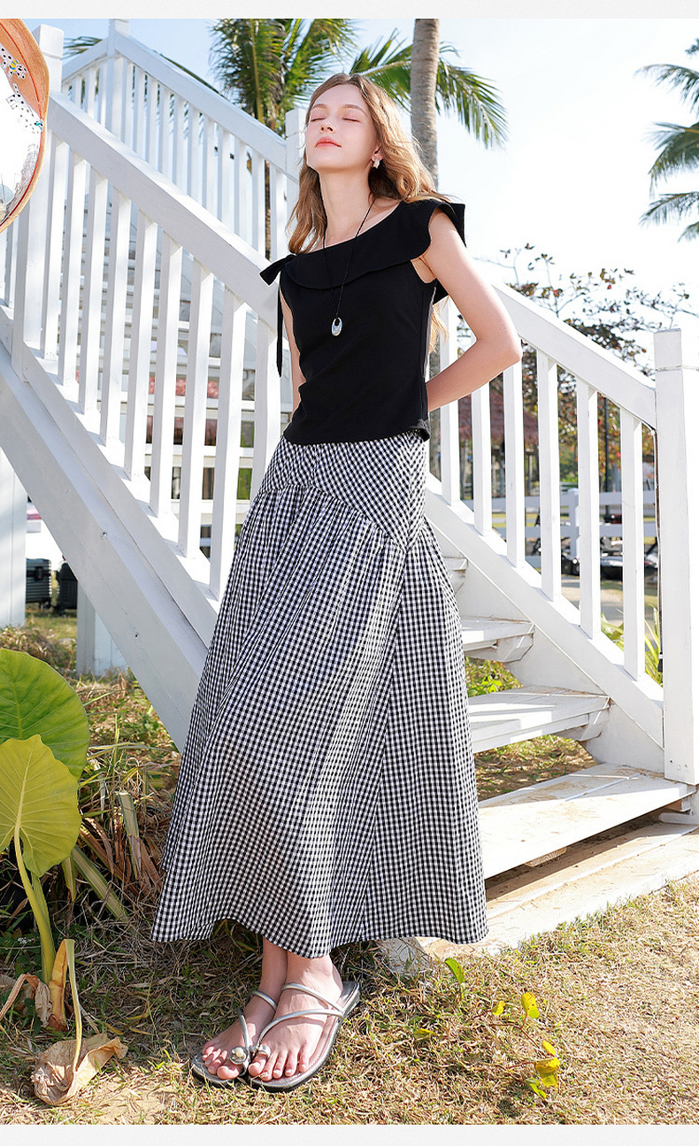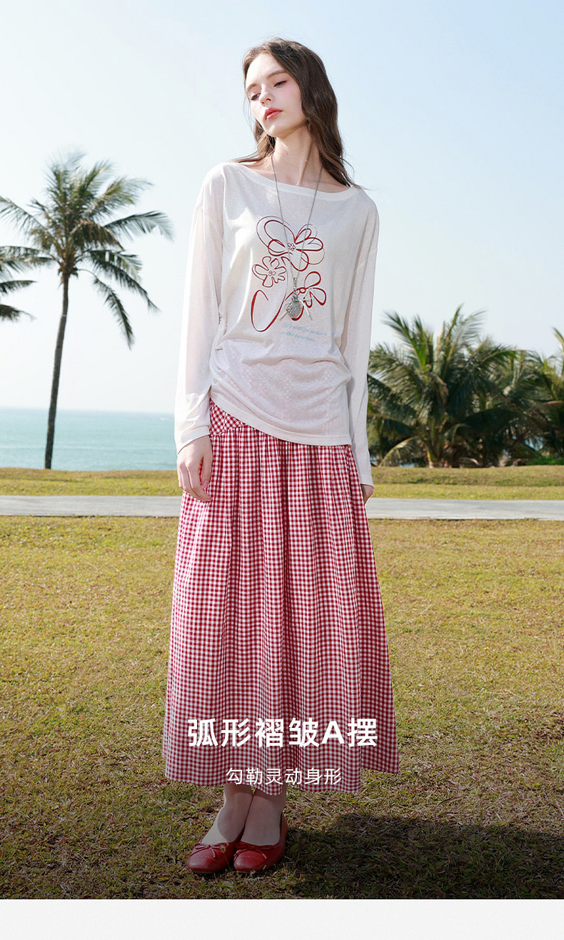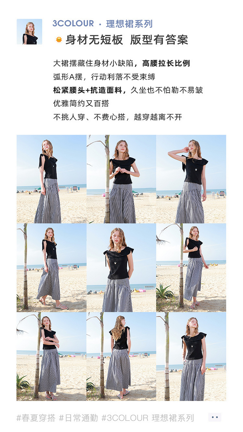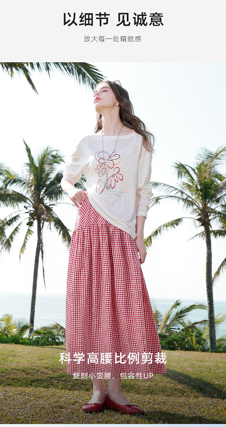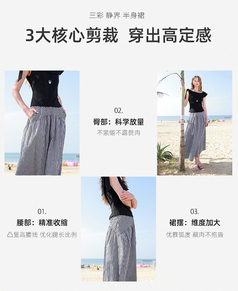 【100棉】三彩2026春季新款高腰半身裙格纹A字裙设计感长裙显瘦M